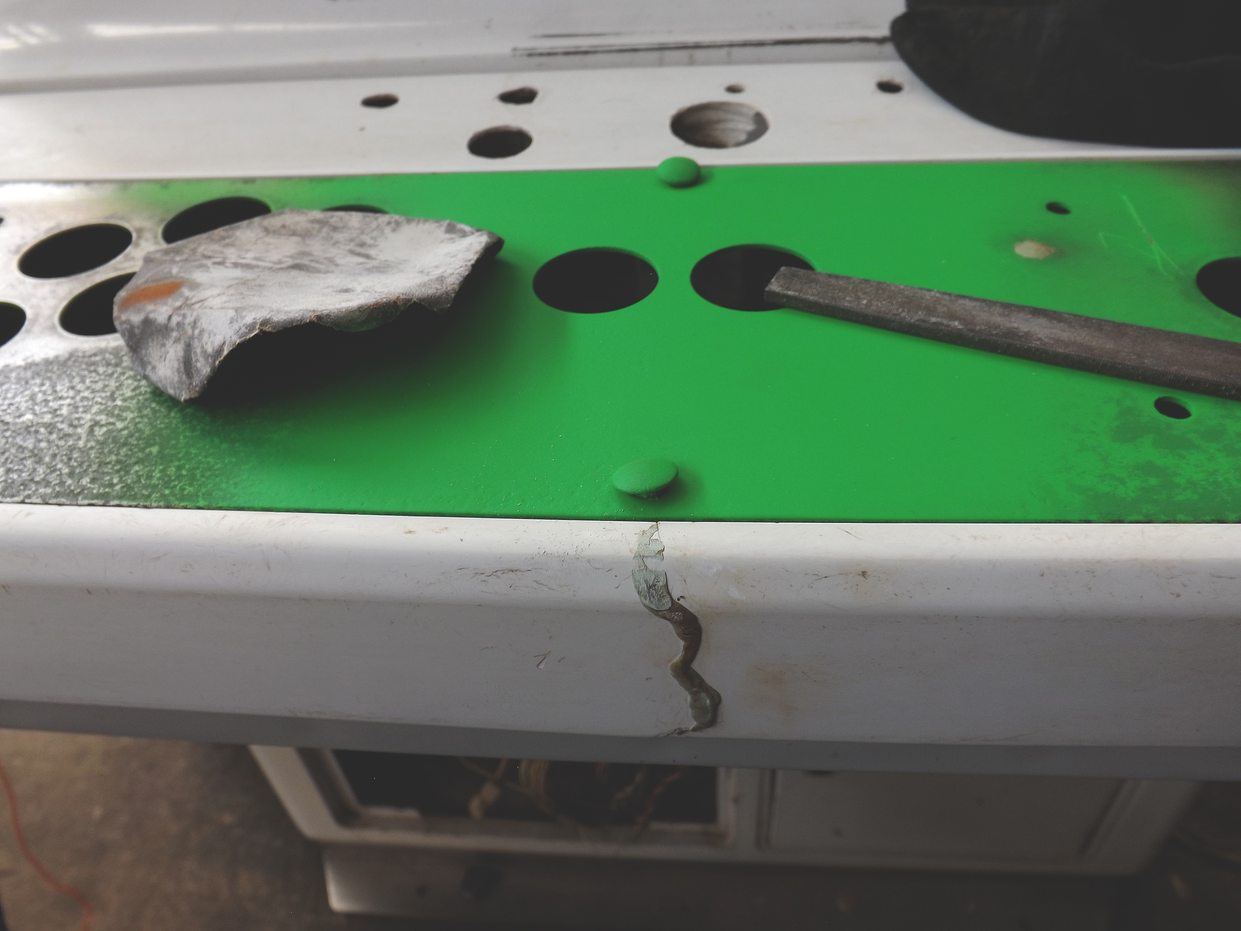 La imagen del monitor era la misma, pero seguramente tiene menor desgaste y se alarga la vida limpiándolo, y use pinturas 360, que son especiales para graffitti tienen mayor pigmentación el tablero lo pinte por completo, lije y retoque algunas partes ya que el esmalte del gabinete esta en muy buena condición.