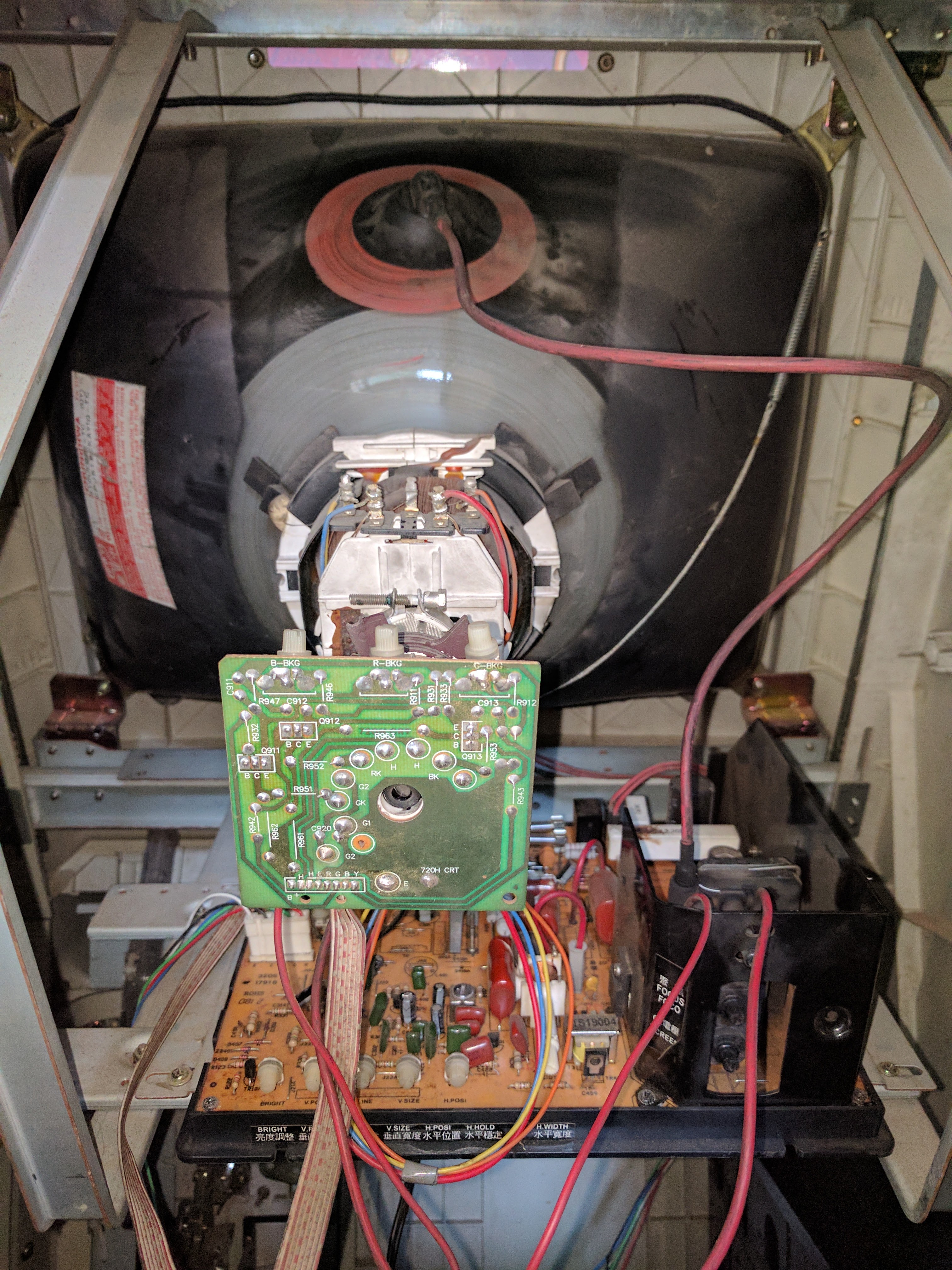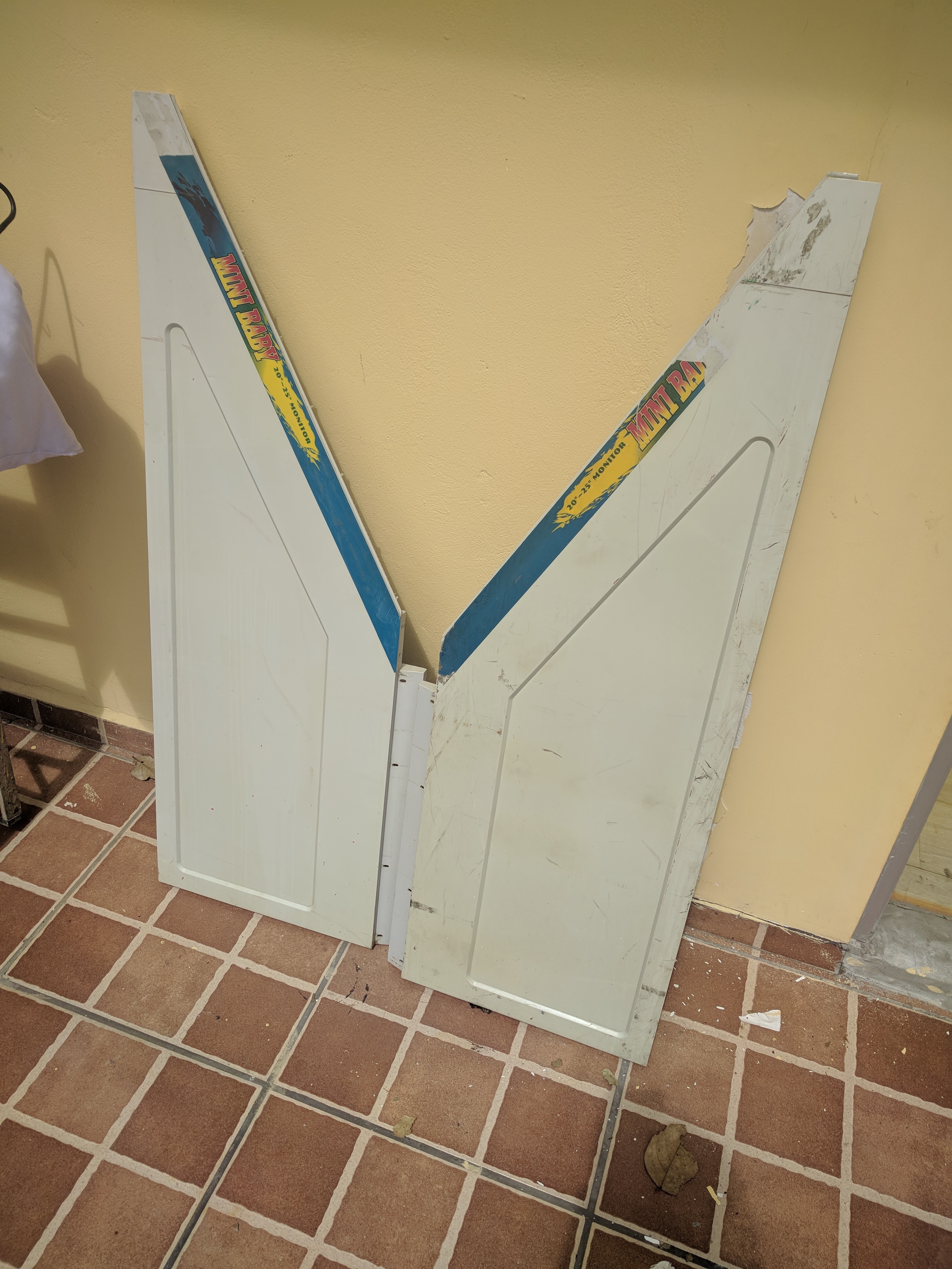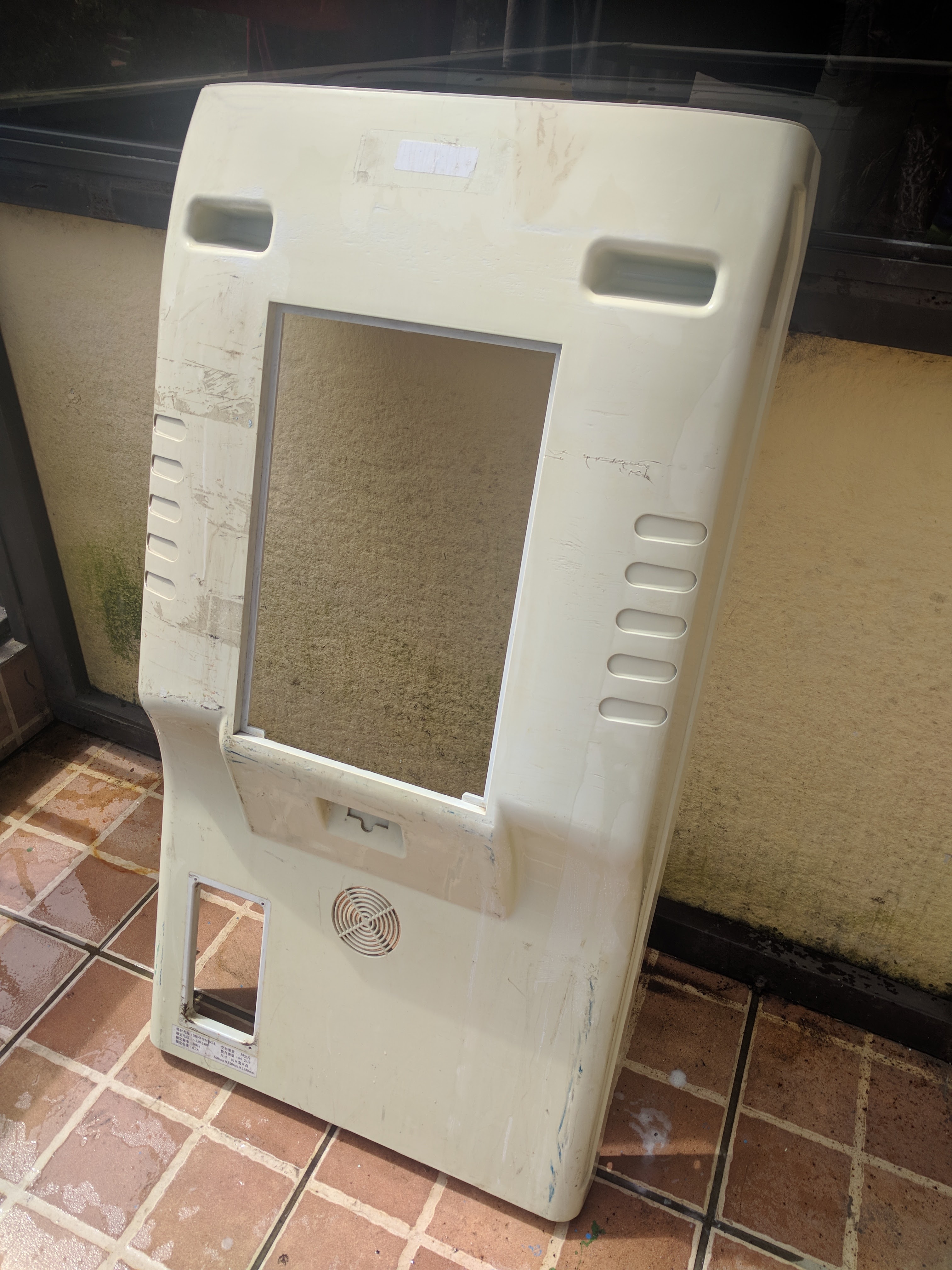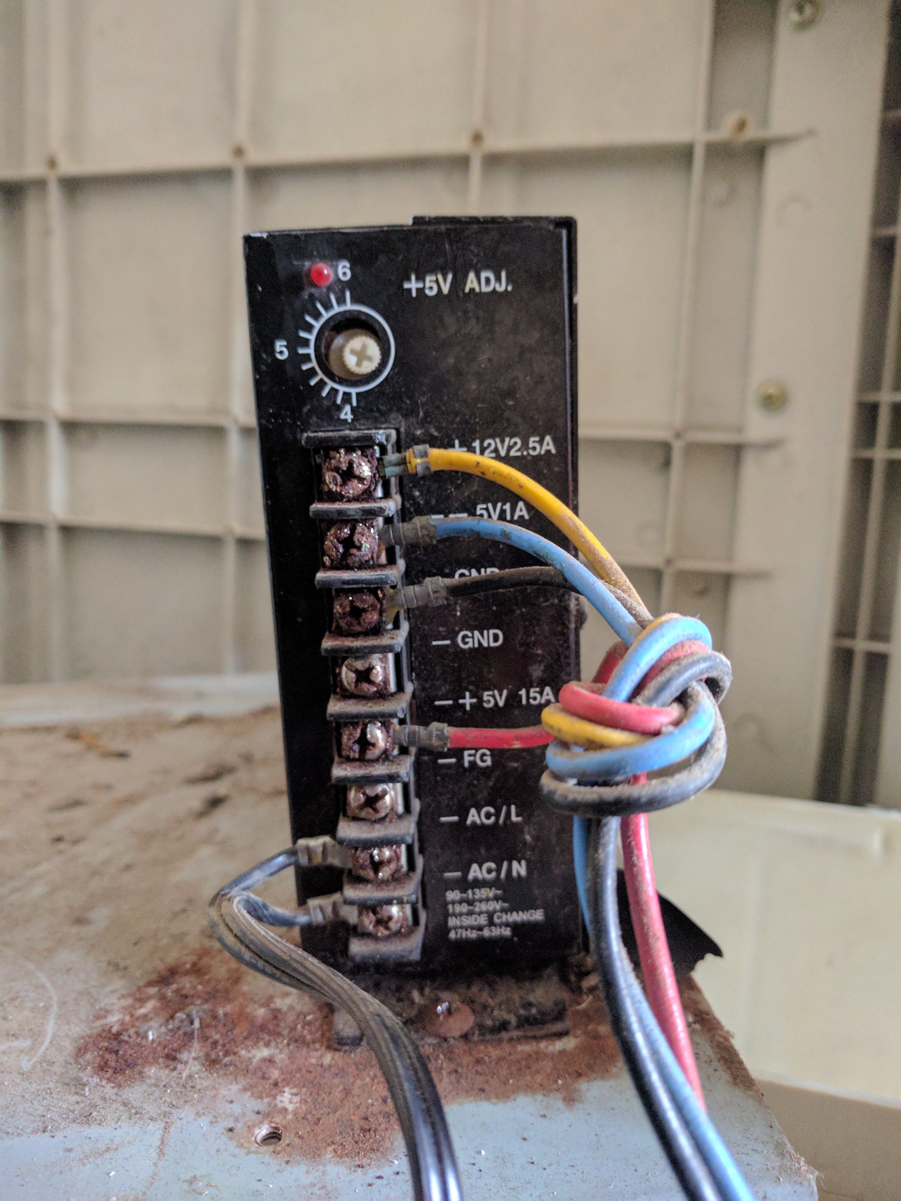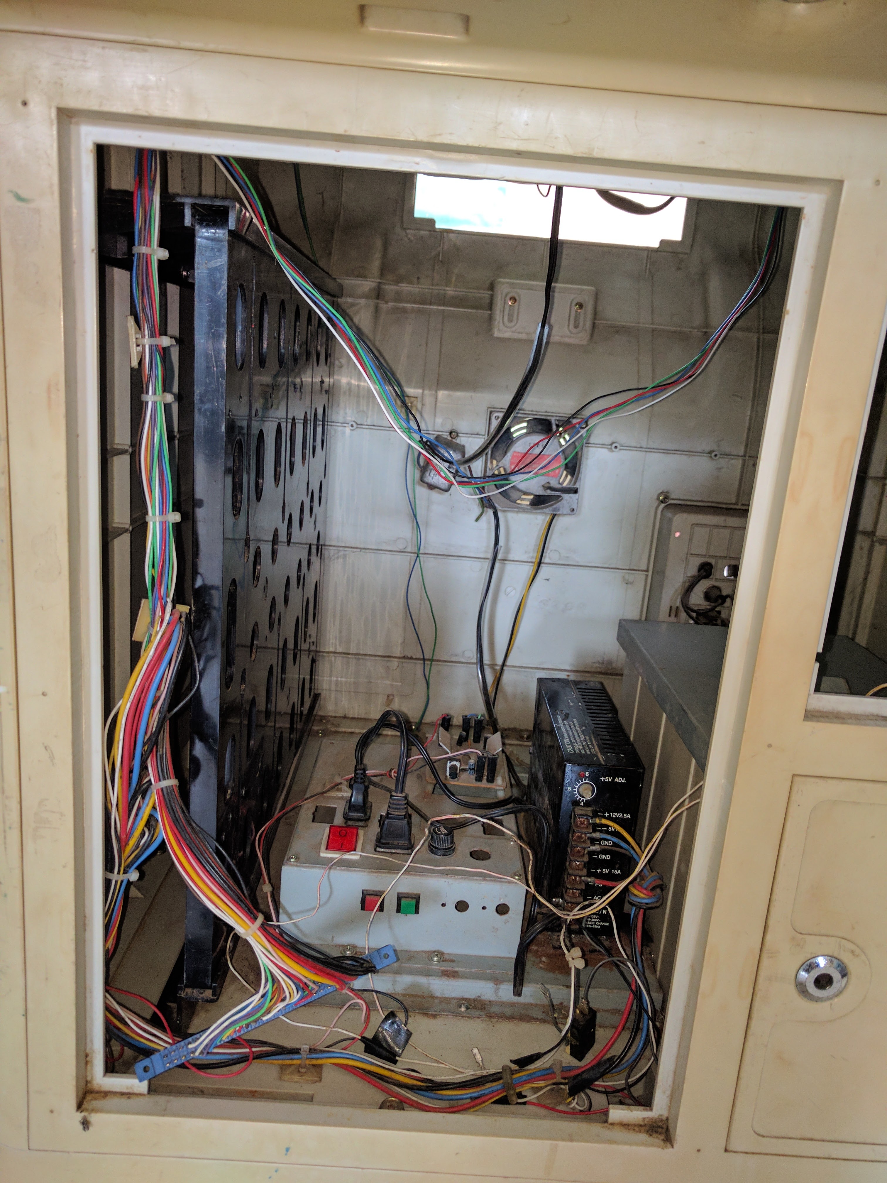 Pude tomar el tiempo para desarmar todo el gabinete, me di cuenta que se puede ajustar la altura por medio de una base para jugar de pie o bien sentado, optare por la ultima opcion, encontre en muy mal estado la fuente de alimentacion pero es funcional, no se si cambiarla o simplemente limpiarla, al desarmar note que los cables del audio del conector jamma no iba directamente al parlante sino a una clase de amplificador dentreo del gavinete y me parece excelente, adjunto las fotos del avance al desarmar.