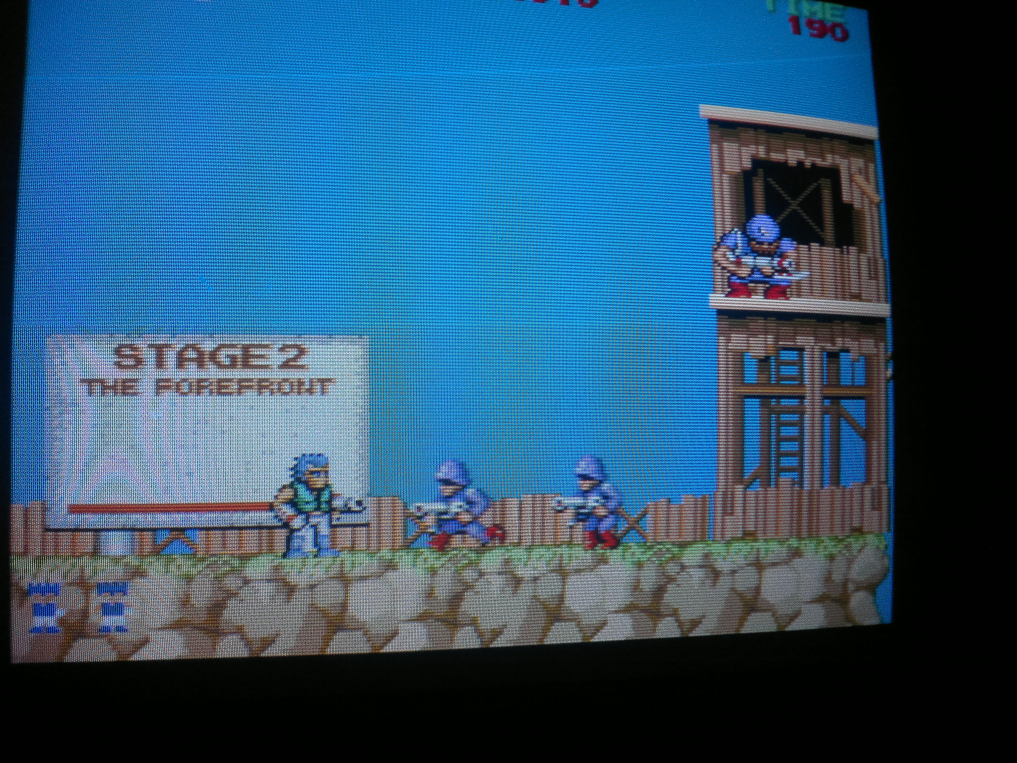 Bien, continuemos con el log de reparación de la PCB. Tenía como se muestra en la última imagen un layer gráfico con problemas. Curiosamente la foto no muestra el problema como realmente se veía, ya que las mitades de los sprites que siempre veía eran las superiores. Cuando tomé esa foto, estaba pasando lo que menos ocurría, mostrar los inferiores. Esto sólo sucedía al cambiar de nivel verticalmente o disparar. Pero es un buen ejemplo del problema.