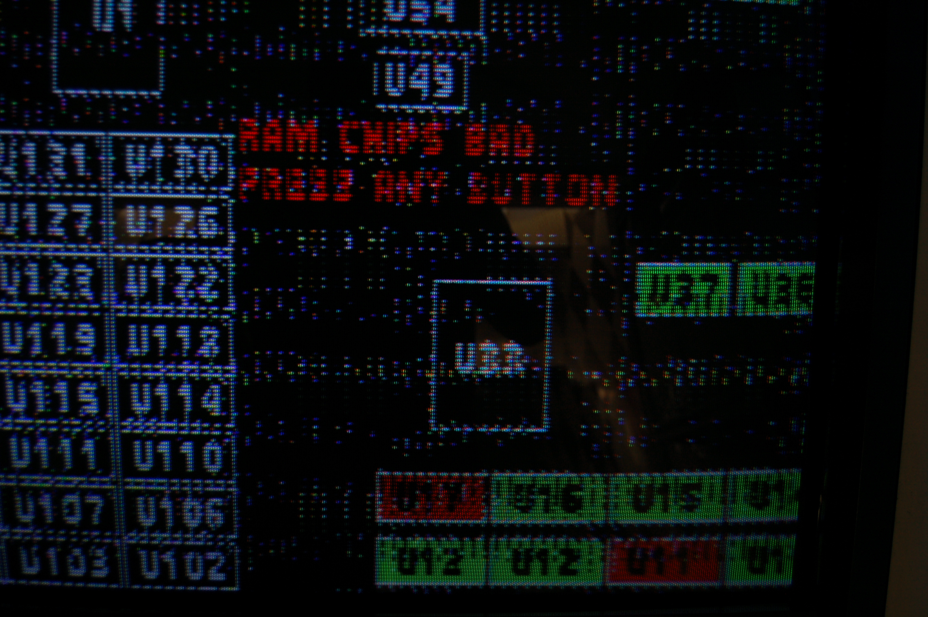 Esta PCB presentaba problemas gráficos todo el tiempo, pero funcionaba. Lo primero fue entrar al menú de pruebas, y correr la prueba integrada ya que no estaba configurada para correrla al arranque de la PCB.