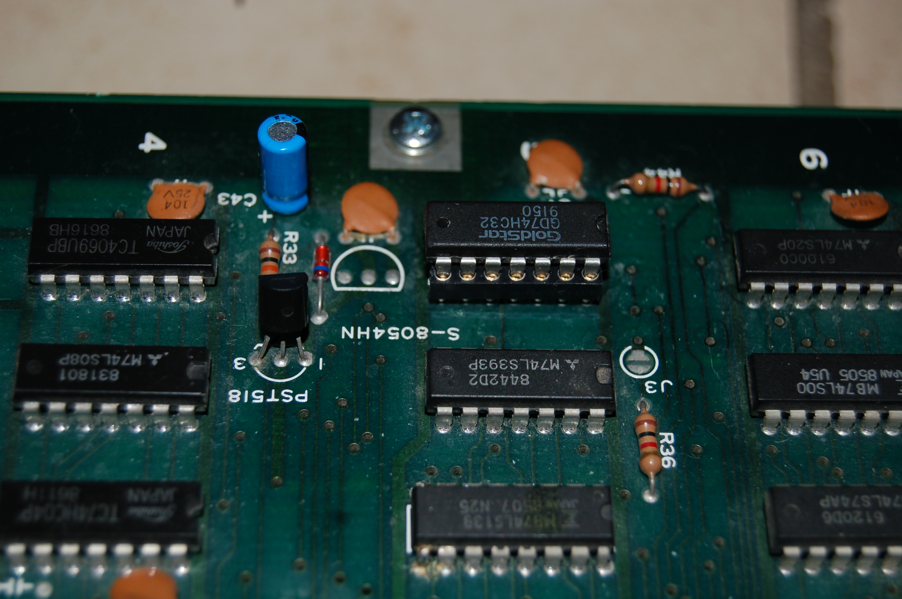 También dí con una resistencia que estaba fuera de su lugar, sobre un TTL al reverso de la placa, la reajusté en su lugar, feliz de dar con lo que seguramente era la falla.