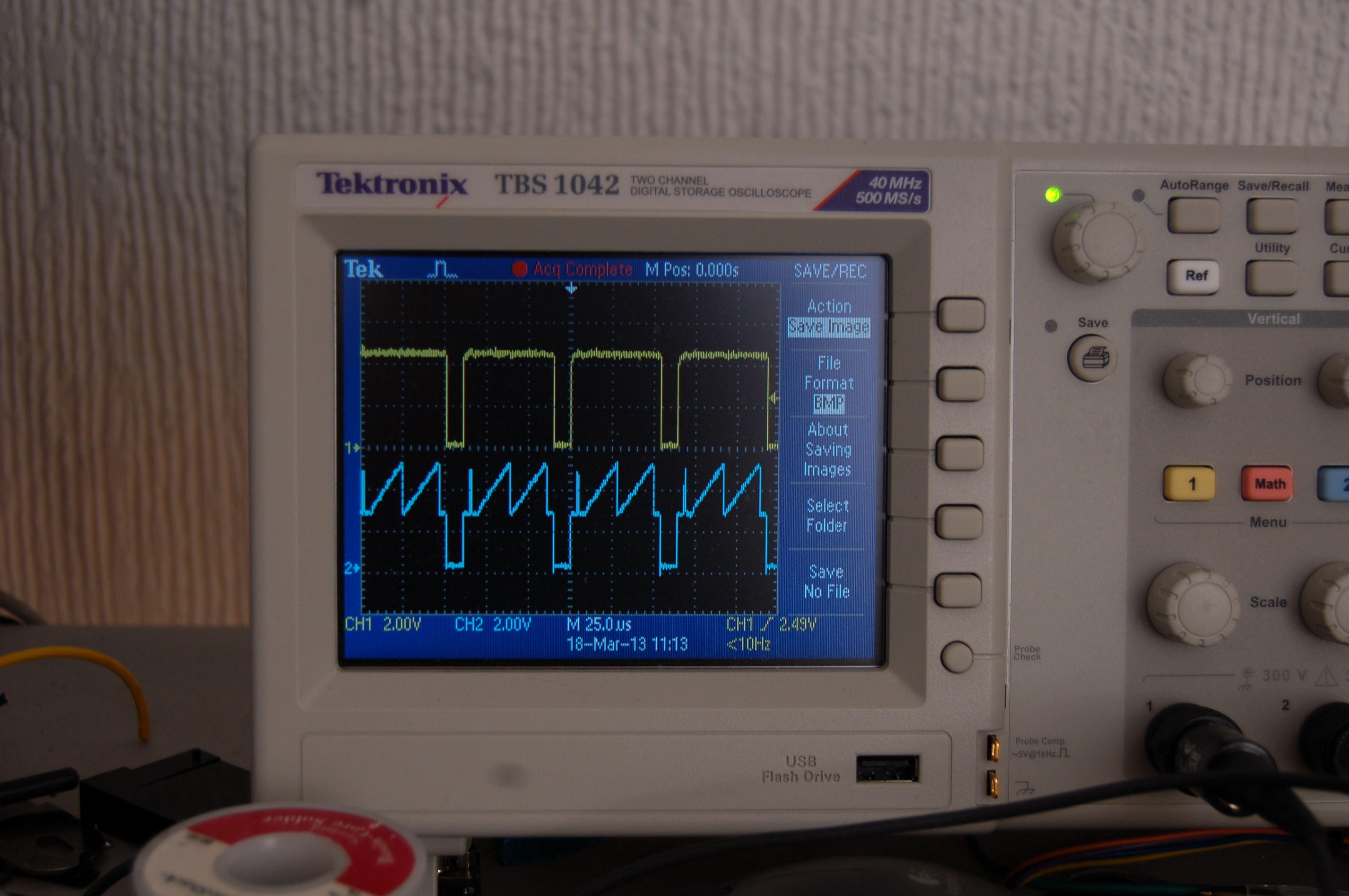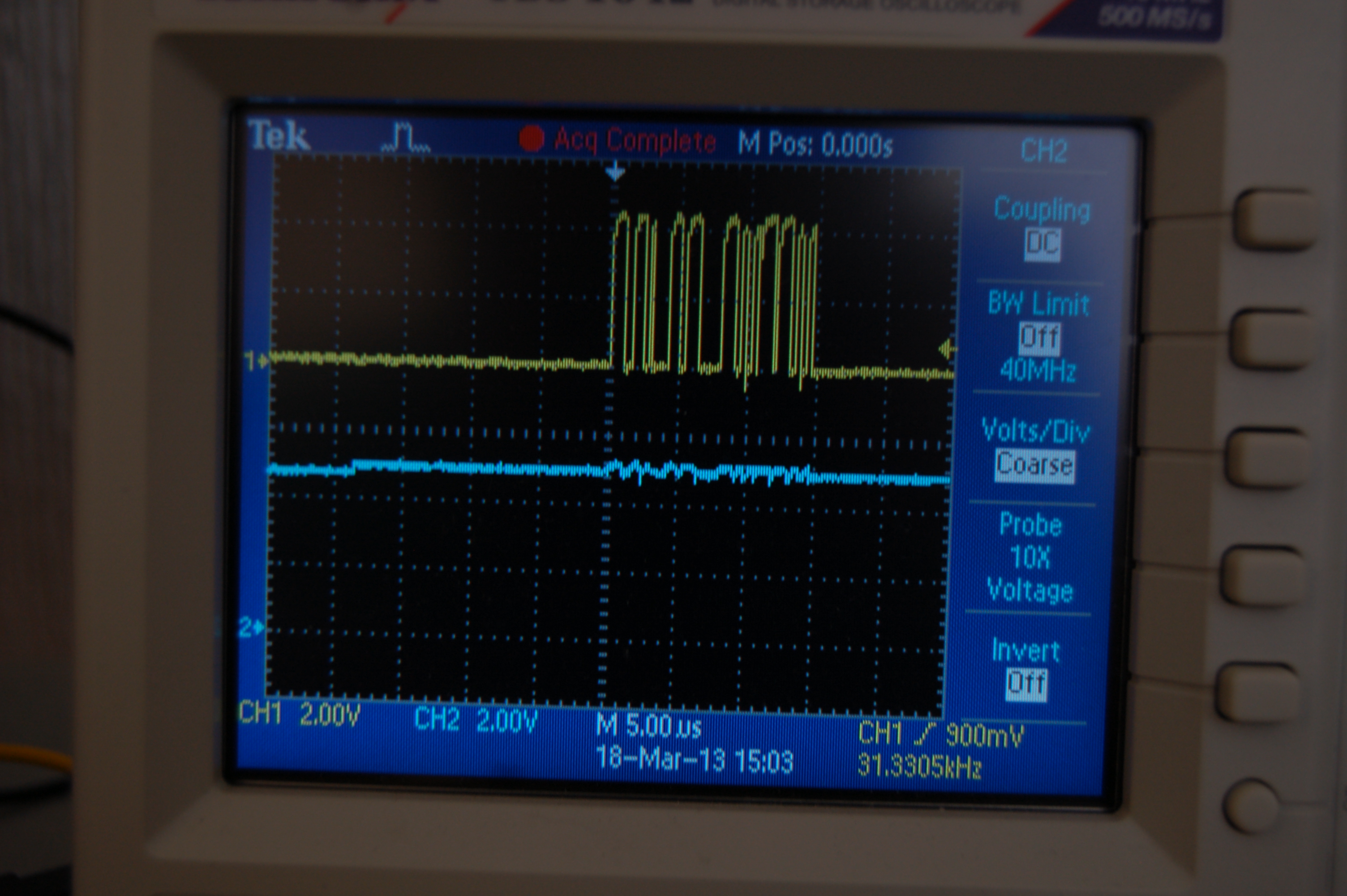 Como se puede ver de las señales, esos picos no son naturales. Son ruido, que en ese momento asumí era por el TTL aún cuando se veía tan raro. De entrada, ambas señales deberían ser idénticas, pues el 74LS07 es un buffer/driver. Sin más, procedí a sustituirlo pensando que había dado en el clavo.