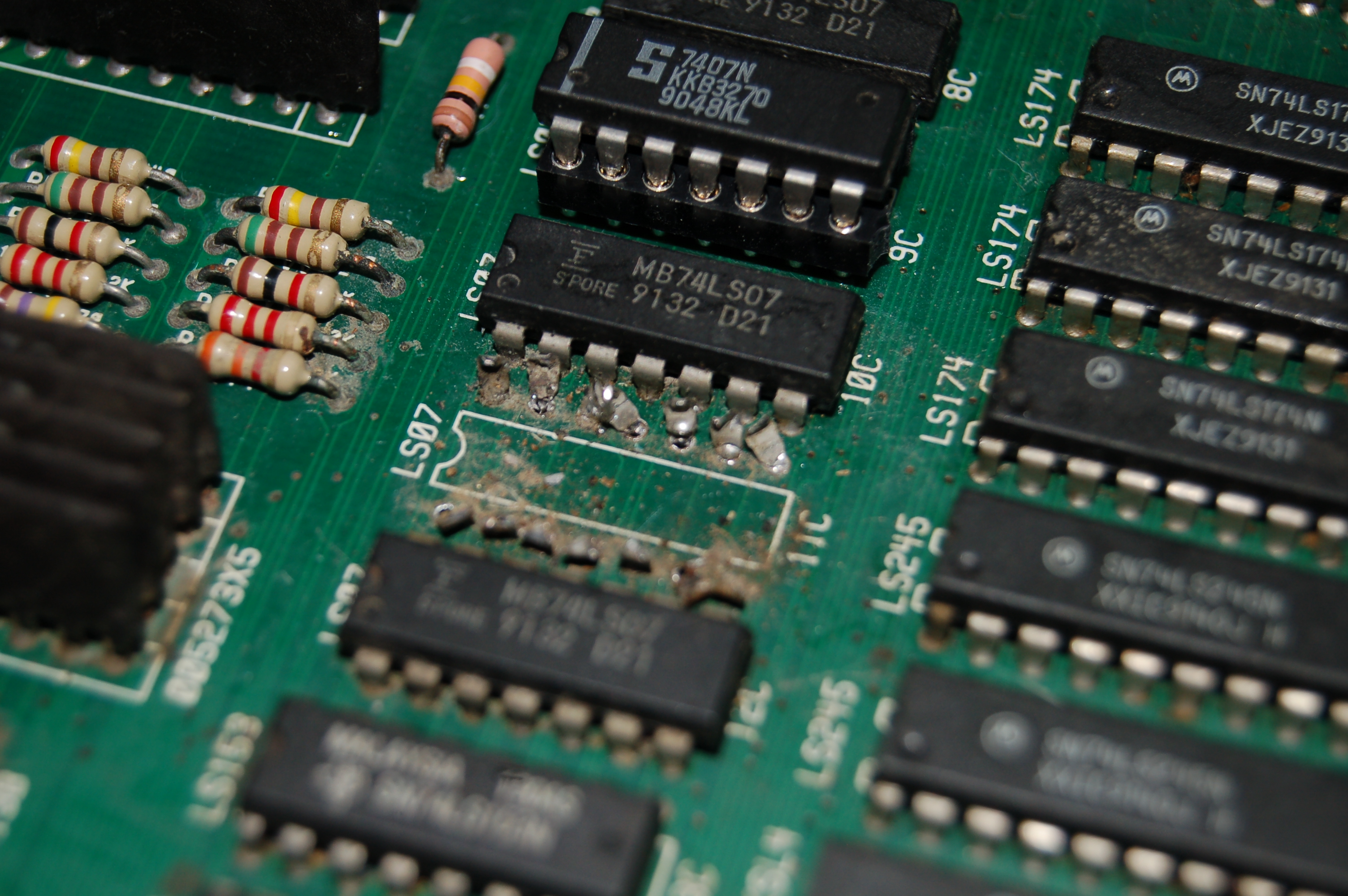 Y aparentemente la PCB está atascada de polvo por debajo de los ttls...