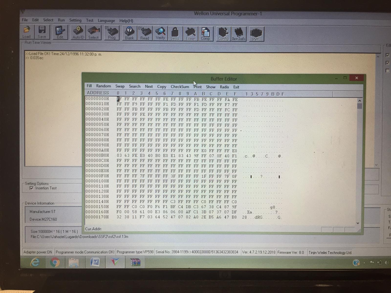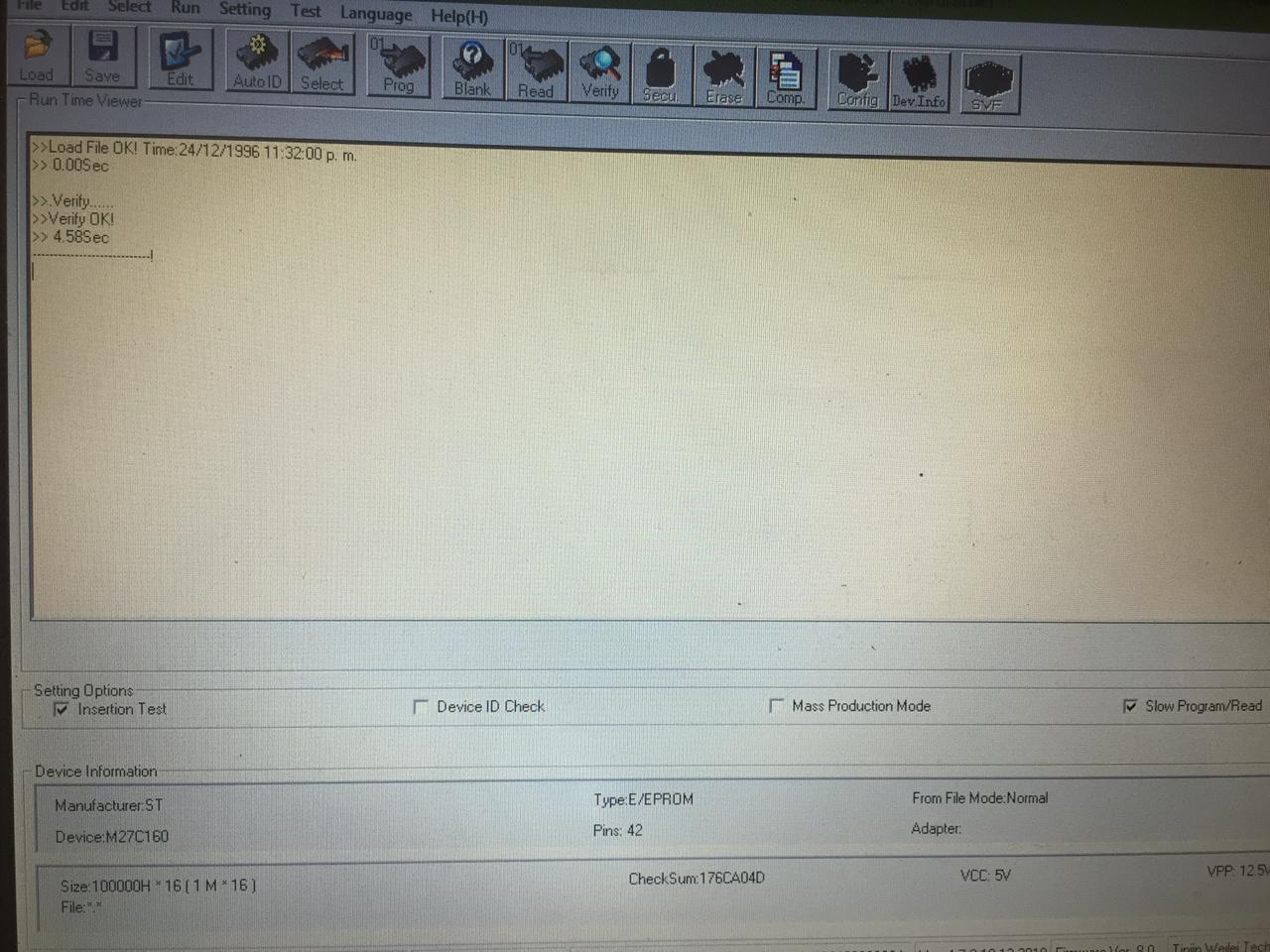 Muchísimas gracias Artemio, me leyó la Mask Rom con M27c160, ahora la estoy comparando con las ROMS que hay en MAME, es decir me baje "Super Street Fighter II: The New Challengers (World 930911)" que es la que trae ssf.13m, que corresponde en teoría a la Mask Rom SSF-13M que tengo insertada en el programador, puedo cargar la Rom ssf.13m para que quede en el buffer le doy Verify para que compare los datos del buffer con lo que esta escrito en la Mask Rom, si puedo hacer eso? para irme una por una de las Mask Roms y descartar alguna que este corrompida.