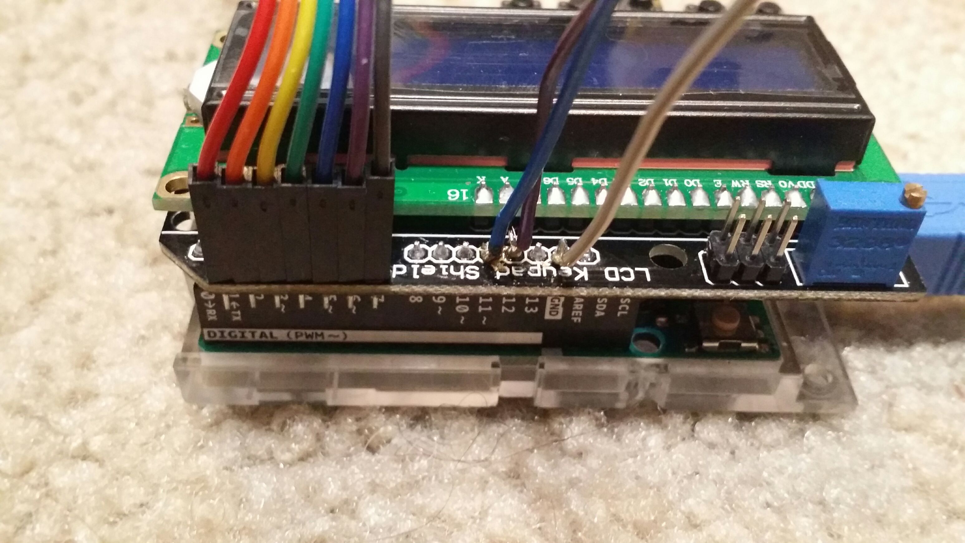 5. Finalmente mi arduino y pantalla tiene un diferentes pinout para el 11 , 12 y ground (mirar las fotos abajo)