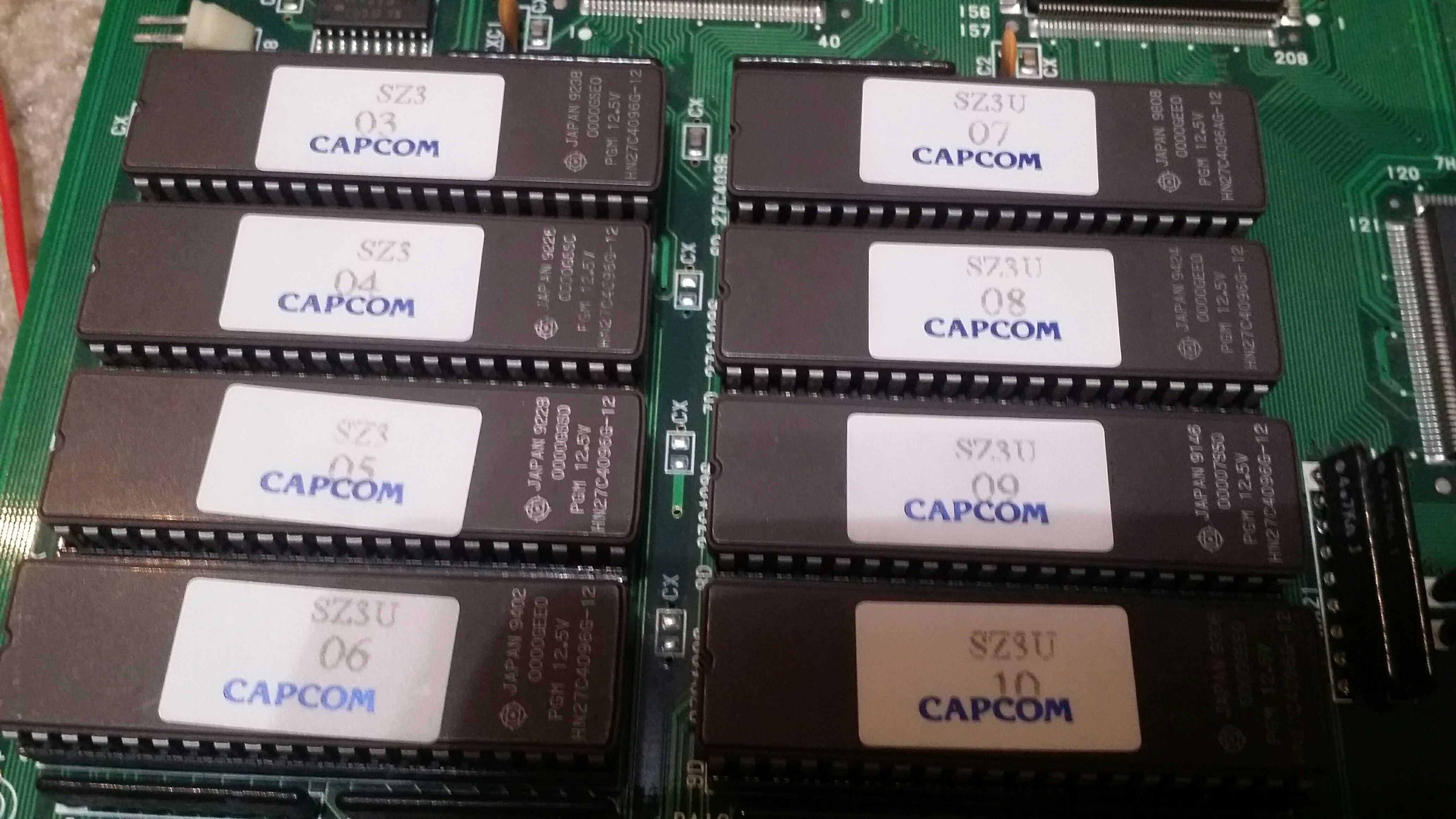 Mazinkaiser escribió: Lun Ene 28, 2019 7:53 pm Adjunto una foto de los chips de mi placa si esto ayuda a identificar nota que mi placa todavia tenia los sellos de capcom intacto asi que me imagino que todo es original