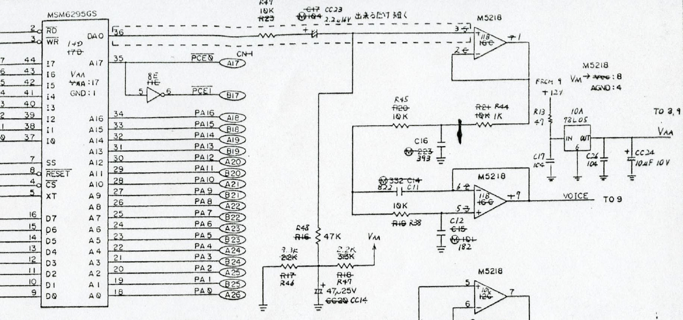 Lo ideal es que todos entendamos como se llega a estas conclusiones. Y como funciona el circuito de manera general. Todo comienza con los voltajes y relojes, de allí a los buses de datos y direcciones, de allí RAMs y ROMs. Luego siguen, en el caso del audio, los sintetizadores y ADPCM, de allí los opamps, el mezclado y finalmente el amplificado.