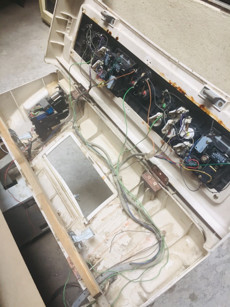 Y bueno, con el primer vistazo se ve que la tenían muy descuidada casi deshaciendose, por ahora solo la he desarmado para poder limpiarla completamente y cambiaré el vinil que estaba cubriendo los laterales que están fabricados en mdf, los plásticos después de quitar toda la grasa trataré de blanquearlos un poco, y cambiaré los botones y una de las palancas, aver qué tal se van dando los avances.