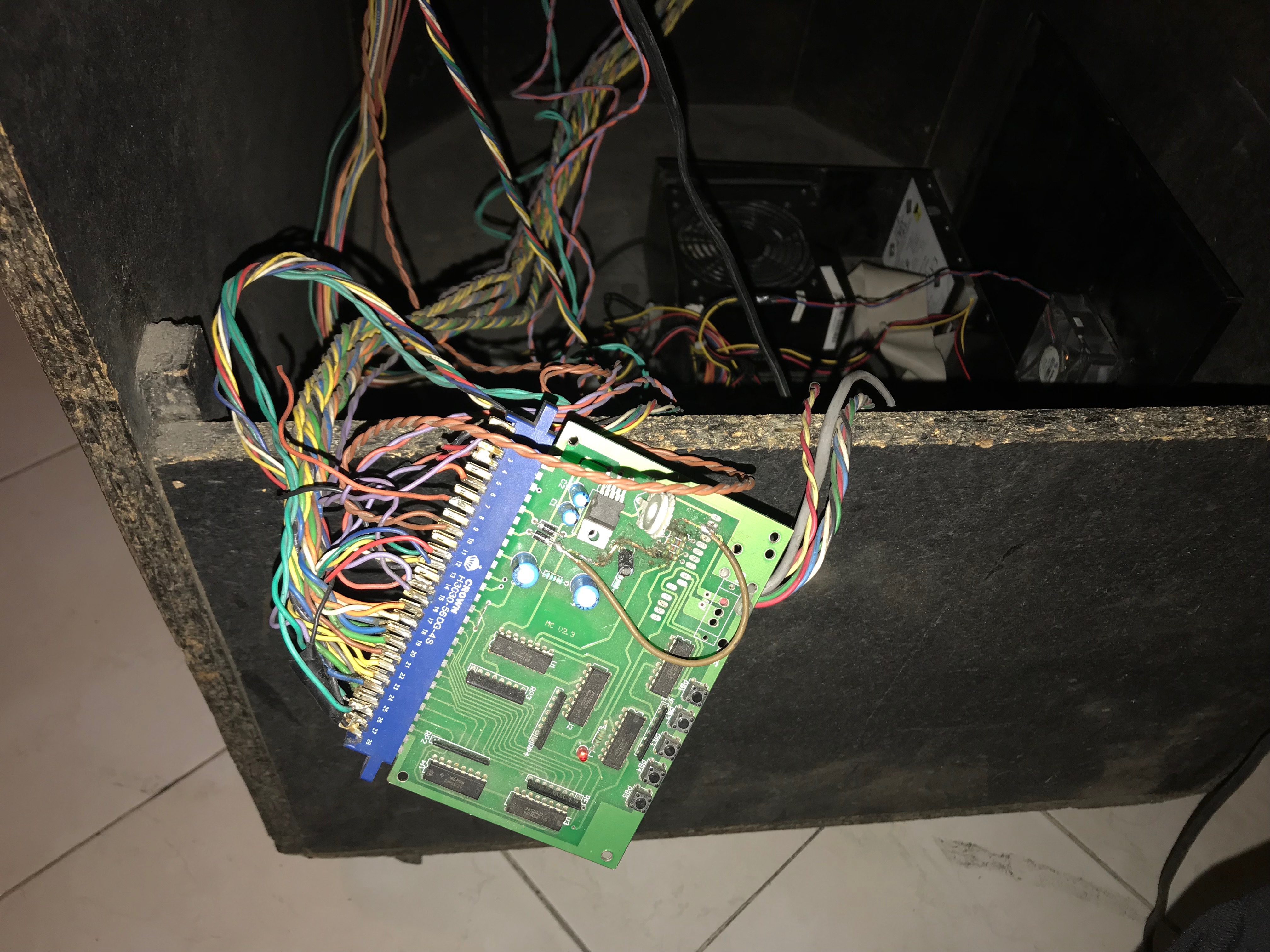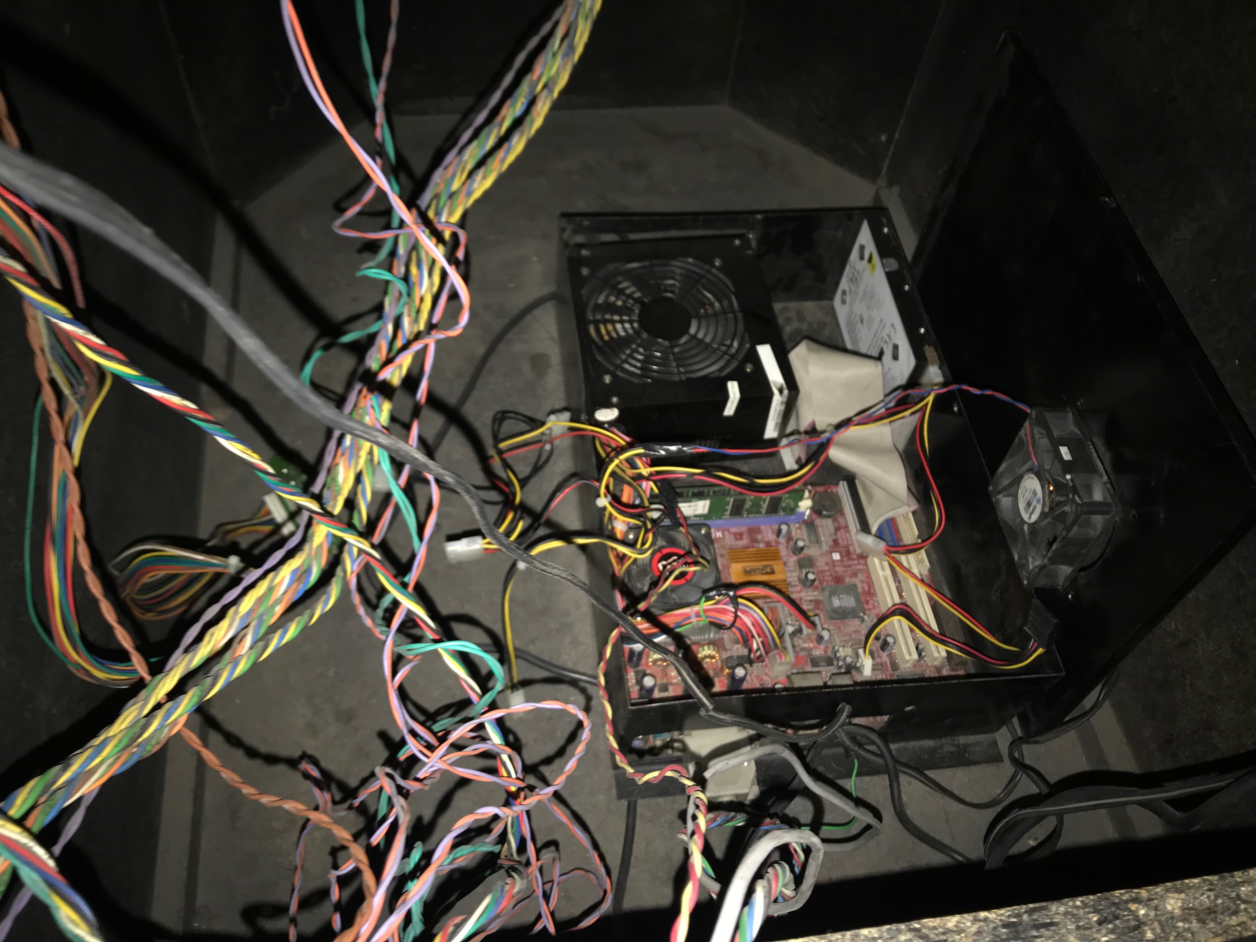 la bocina estaba conectada y parece que en la jamma también, veo que cambia un poco el cableado y de ahí la conectan a lo que investigue es un pulsador, este tiene una perilla pAl limpiarla un poco, la abrí para ver como le bajaron el volumen, si le habian desconectado el cable a la bocina y que placa tenia, cual es mi sorpresa que era una pc, con lo que le llaman multijuegos