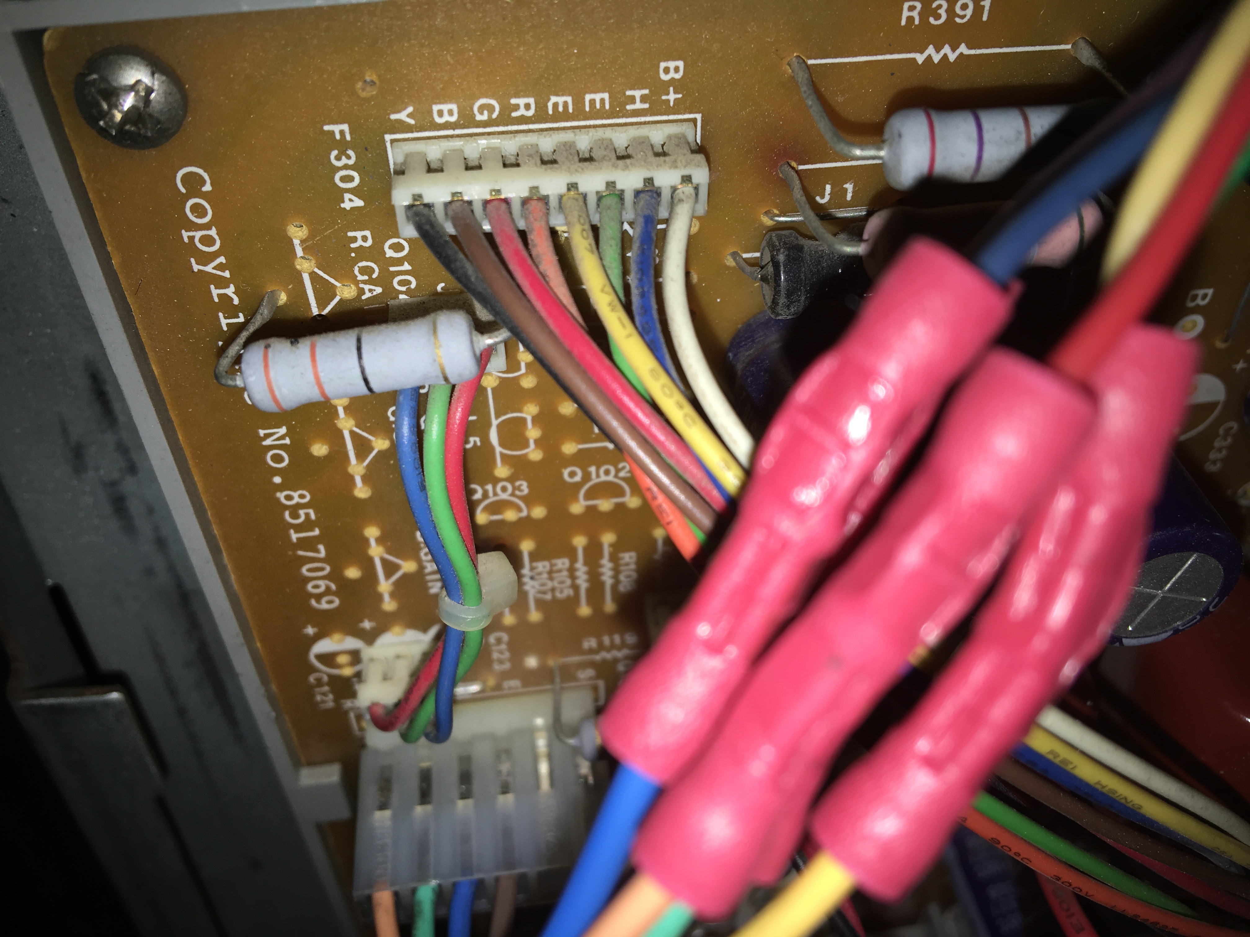 No logro abrir el vídeo si es que está acá. Yo creo por tus comentarios que no es compatible la conexión del conector que alimenta el TRC no se están alimentando correctamente las grillas y los cátodos del TRC y por eso no termina de encender.
