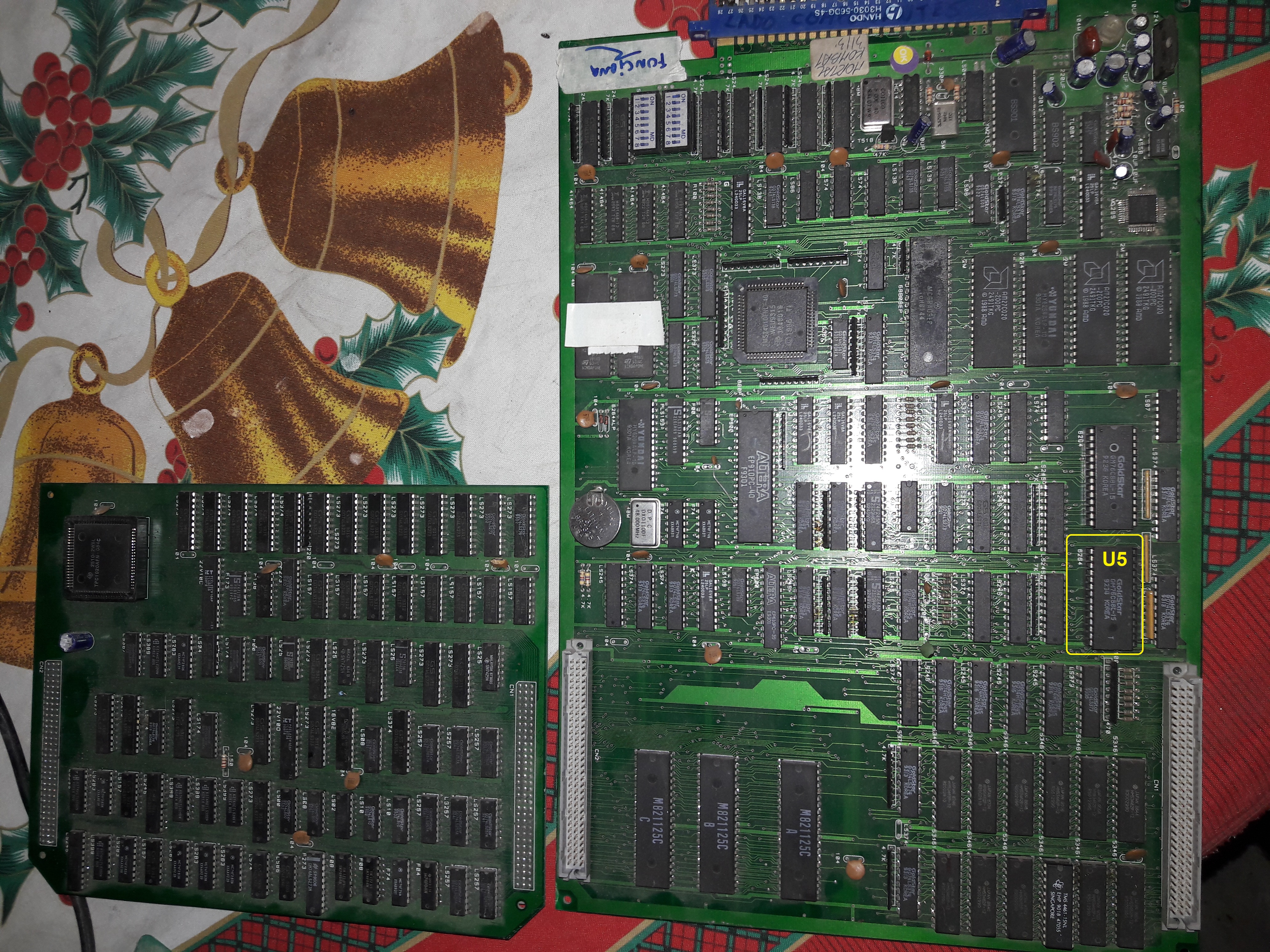 Buenos dias a todos.queria saber si me pueden dar una mano con una placa mk 1 blood.la placa tiene una falla grafica,le hice el test y muestra que u5 esta dañada.el tema es que muestra la posicion en la placa original y no se cual seria en la placa blood.
