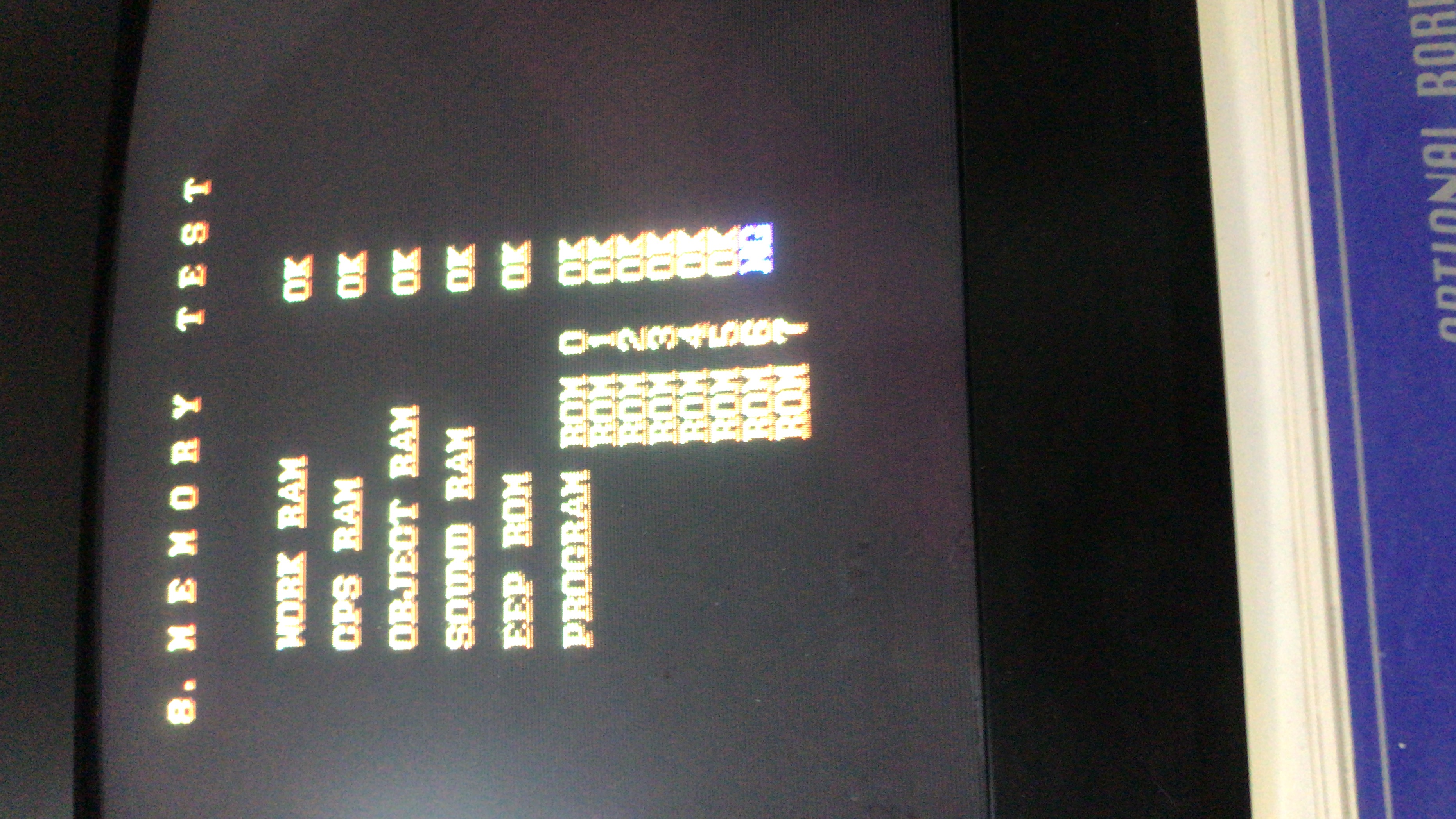 Lo ideal es que hagas el dump de tu EPROM, pero es muy probable que si no es el voltaje tenga daño la ROM 6. También te recomiendo hacer dump de las Mask ROMs de graficas, para verificar que esten bien.