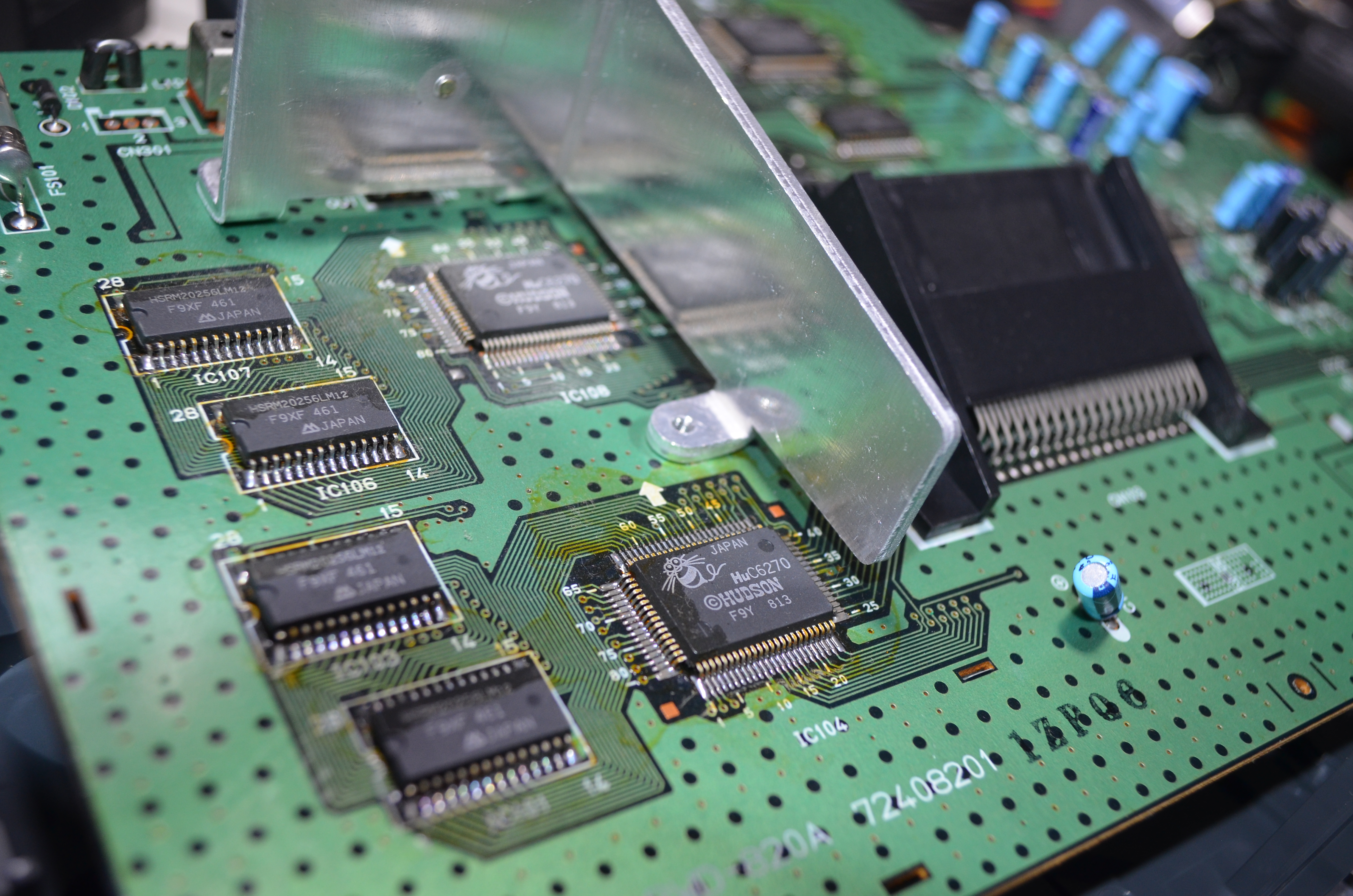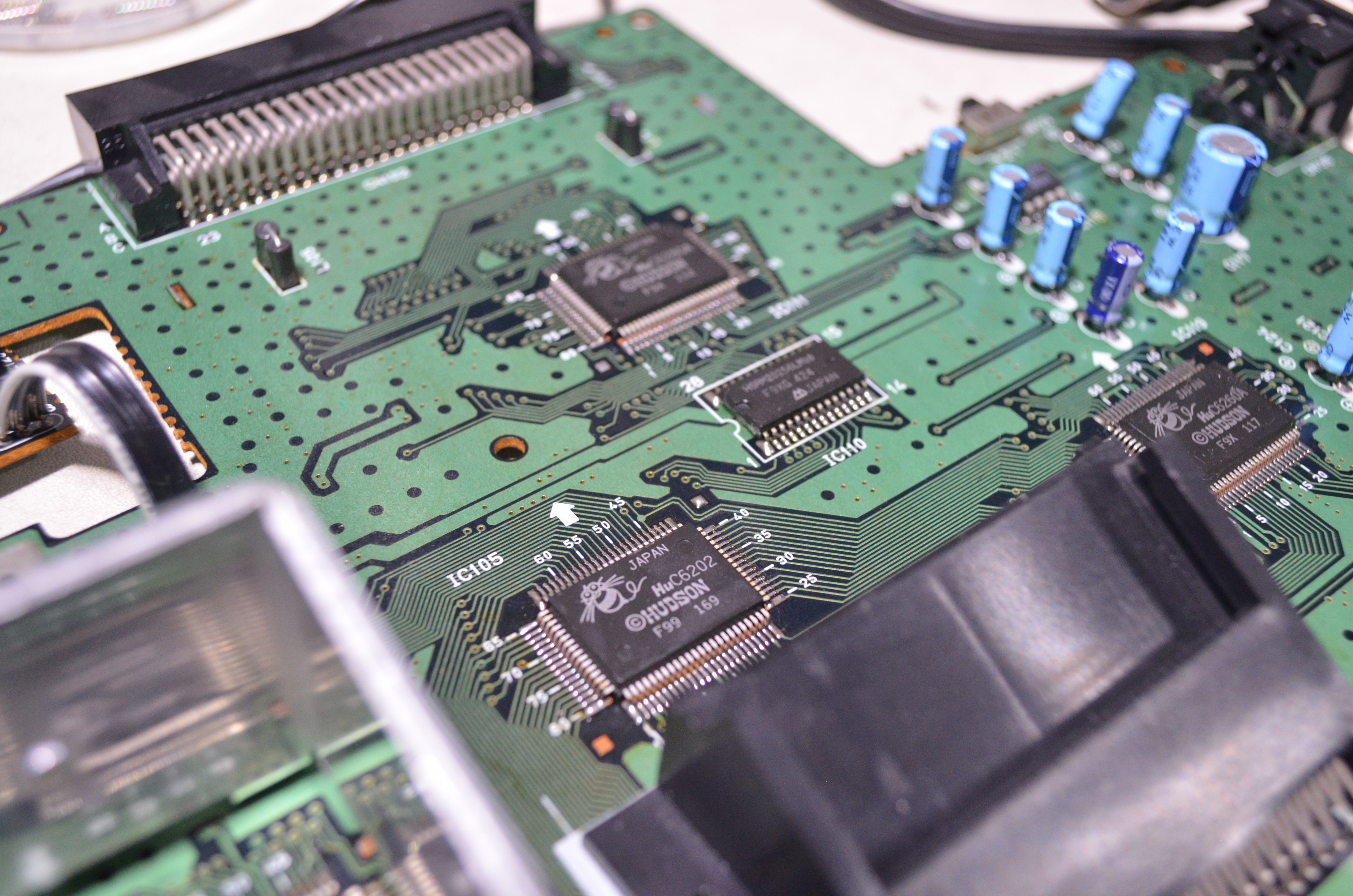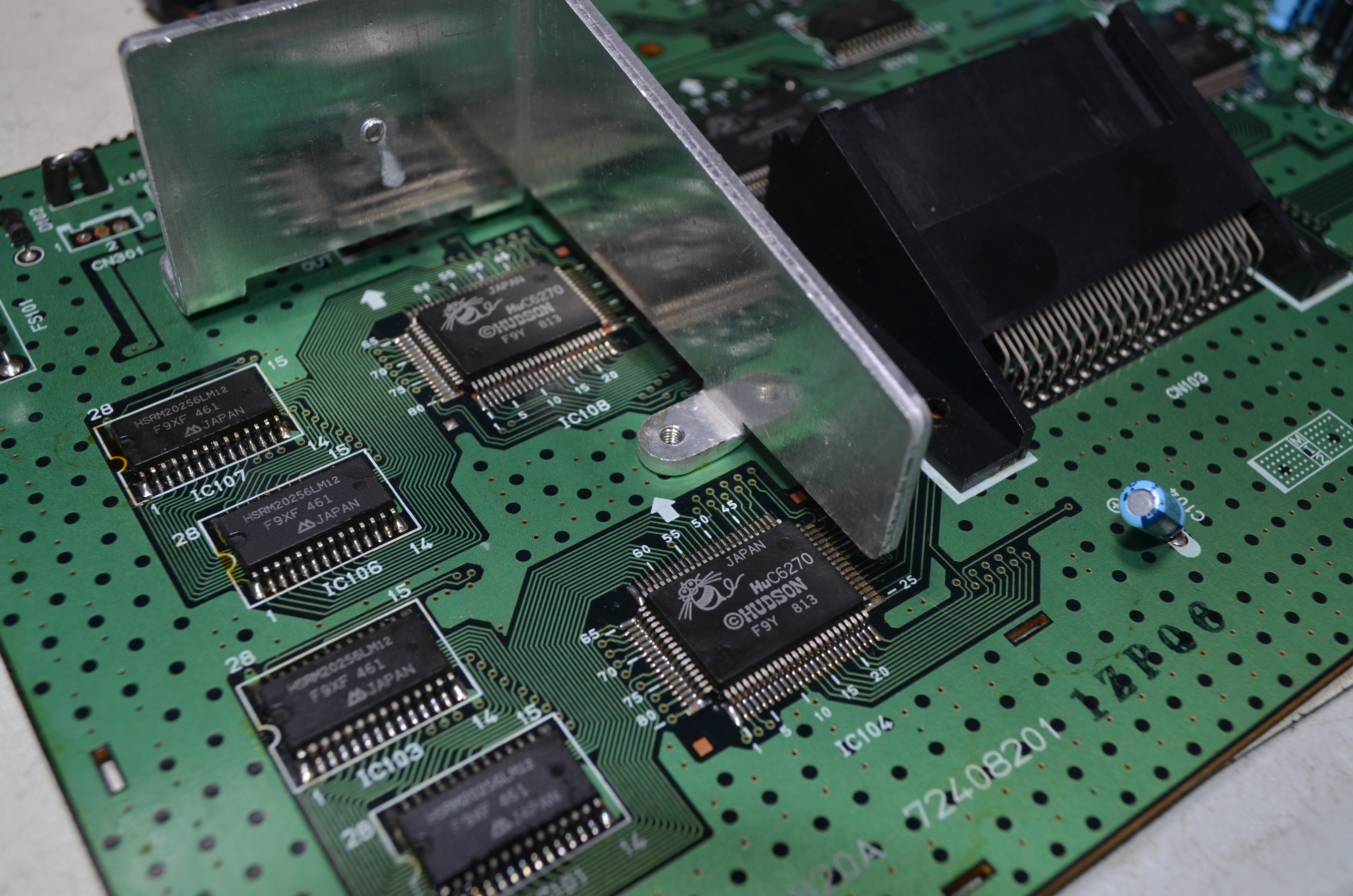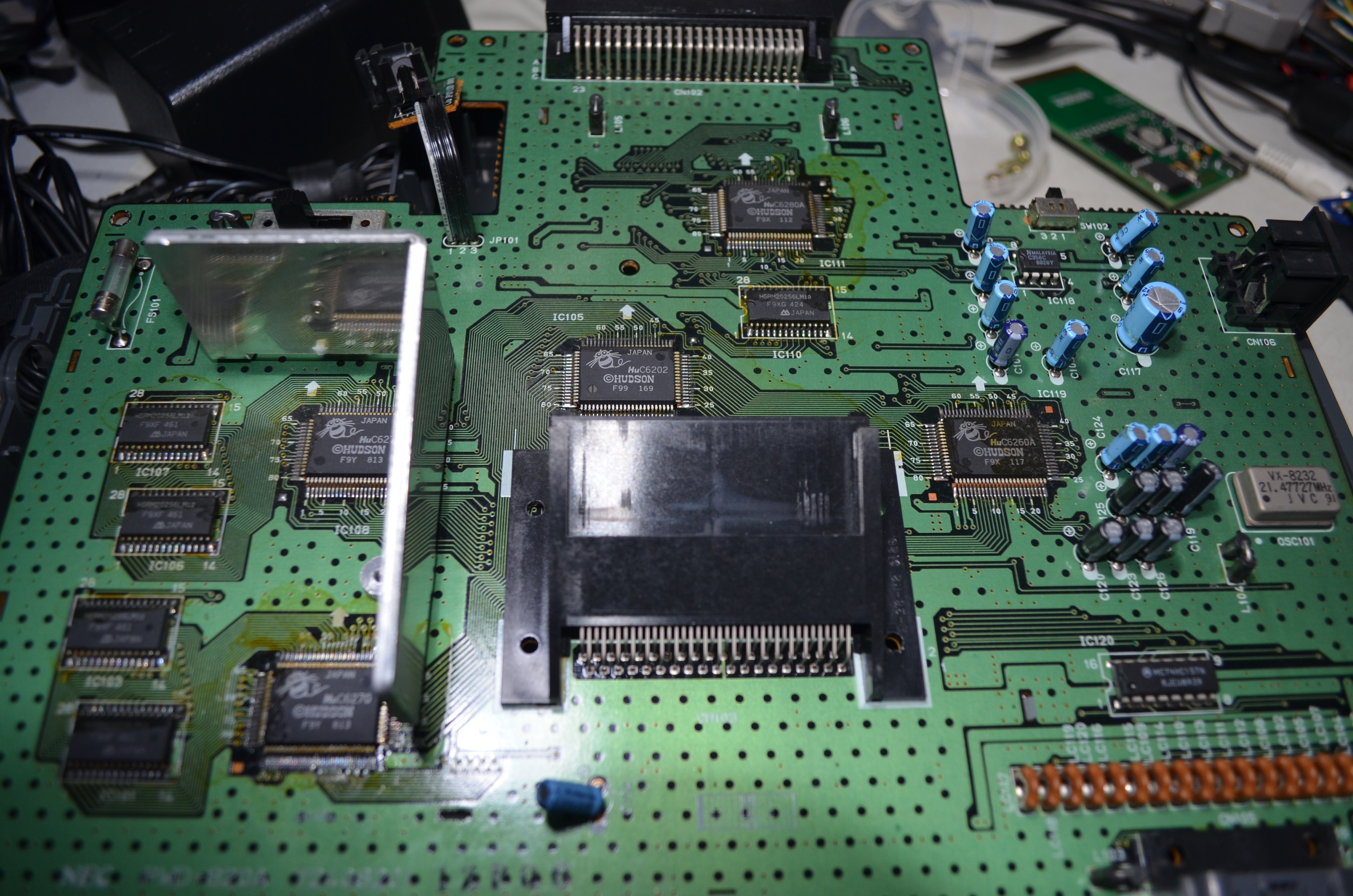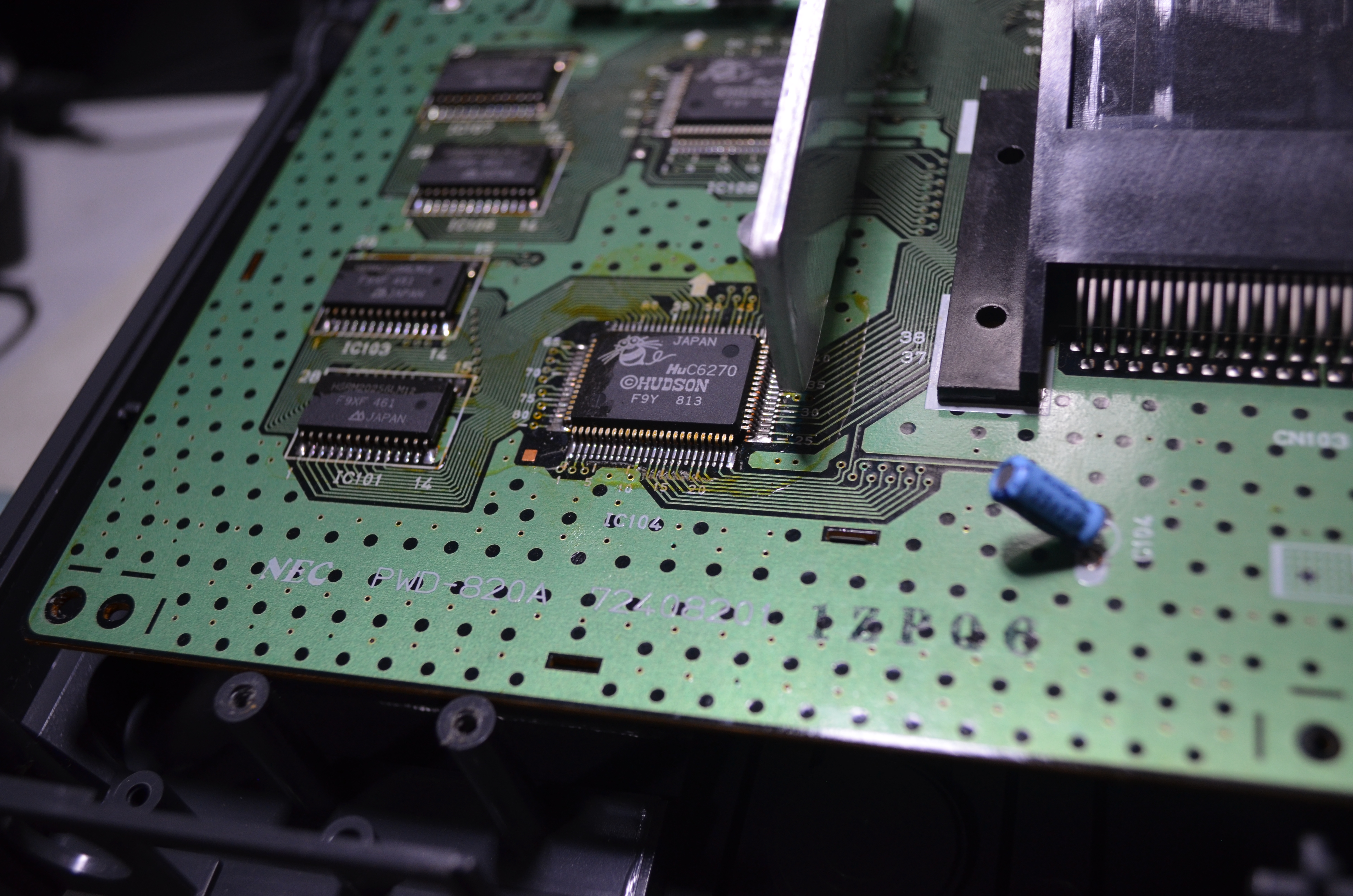 Hola a todos el día de hoy vengo con un problema que nos encontramos en un consola que se compró recientemente resulta que se adquirió un Súpergrafx para usarlo junto con un SD System 3 se compró en MercadoLibre y el cuate que lo vendió comento que tenía mod RGB por lo que me la pasaron para quitarle el mod ya que si se conectan así el Super SD System 3 y el Supergrafx con Mod puede haber problemas debido a la doble amplificación de las líneas de video. Por lo que abrí la consola y me encontré con un mod de esos de terror que termina reparando Voultar en su canal. Tenía cables mal puestos y cometieron la locura de cortar la pista de compuesto para poner la línea de Sync por ahí. Bueno pensé que solo sería quitar la placa está y listo pero o sorpresa cuando la retire me lleve una muy desagradable sorpresa. Soldaron las líneas de RGB para el mod directo al Chip HuC6260 (cosa que no entiendo por qué se ve que tenían poca experiencia por que hacerlo ahí en lugar de en el puerto de expansión pues no lo sé) y calentaron tanto la zona que las patitas del chip se levantaron y dañaron otras a su alrededor. Intente reconstruir las pistas con cable a unos pads dónde llegaba cada línea y de ahí van directo al puerto de expansión (verifique continuidad desde el chip hasta el puerto de expansión y está bien para cada línea de color y Sync y según el esquemático está correcto que vayan directo del chip al puerto de expansión) pero a pesar de ello al conectar una placa externa para RGB en el puerto de expansión no consigo que se muestre vídeo. Ya revise posibles puentes o algo y nada todo está bien solo se le ocurre que con el severo daño a los pines adjuntos algo extra se daño y por lo tanto la consola no saca RGBS, ya probé con compuesto y funciona perfecto. Ojalá alguien me pueda ayudar a revivir el RGB de esta pobre que sufrió bastante como puede ser que alguien ponga epoxico sobre una placa