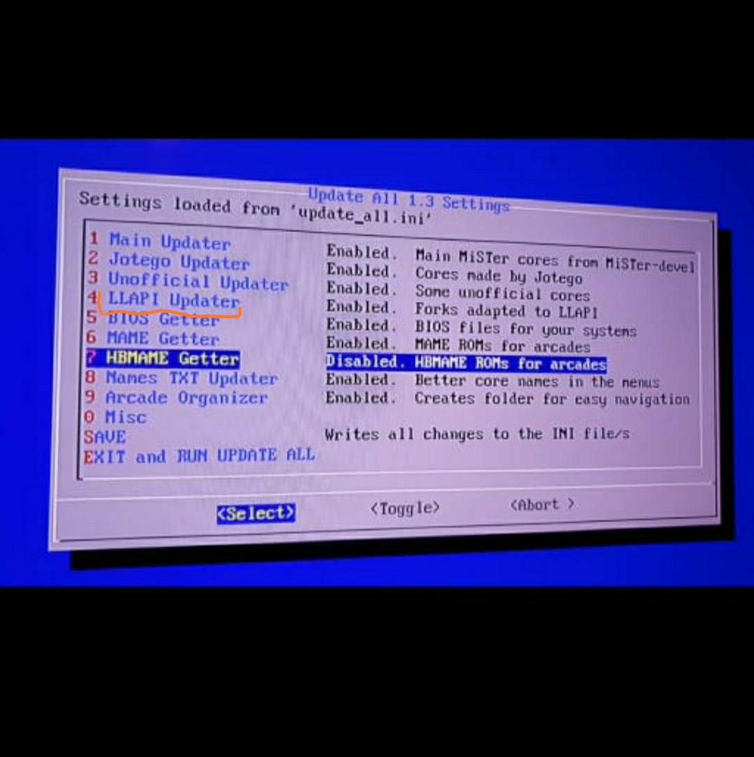 Después investigando un poco resulta que debía habilitar la opción de Llapi cuando entras a update all y oprimiendo arriba en el control o teclado salen estás opciones y a mi me salía inhabilitada.