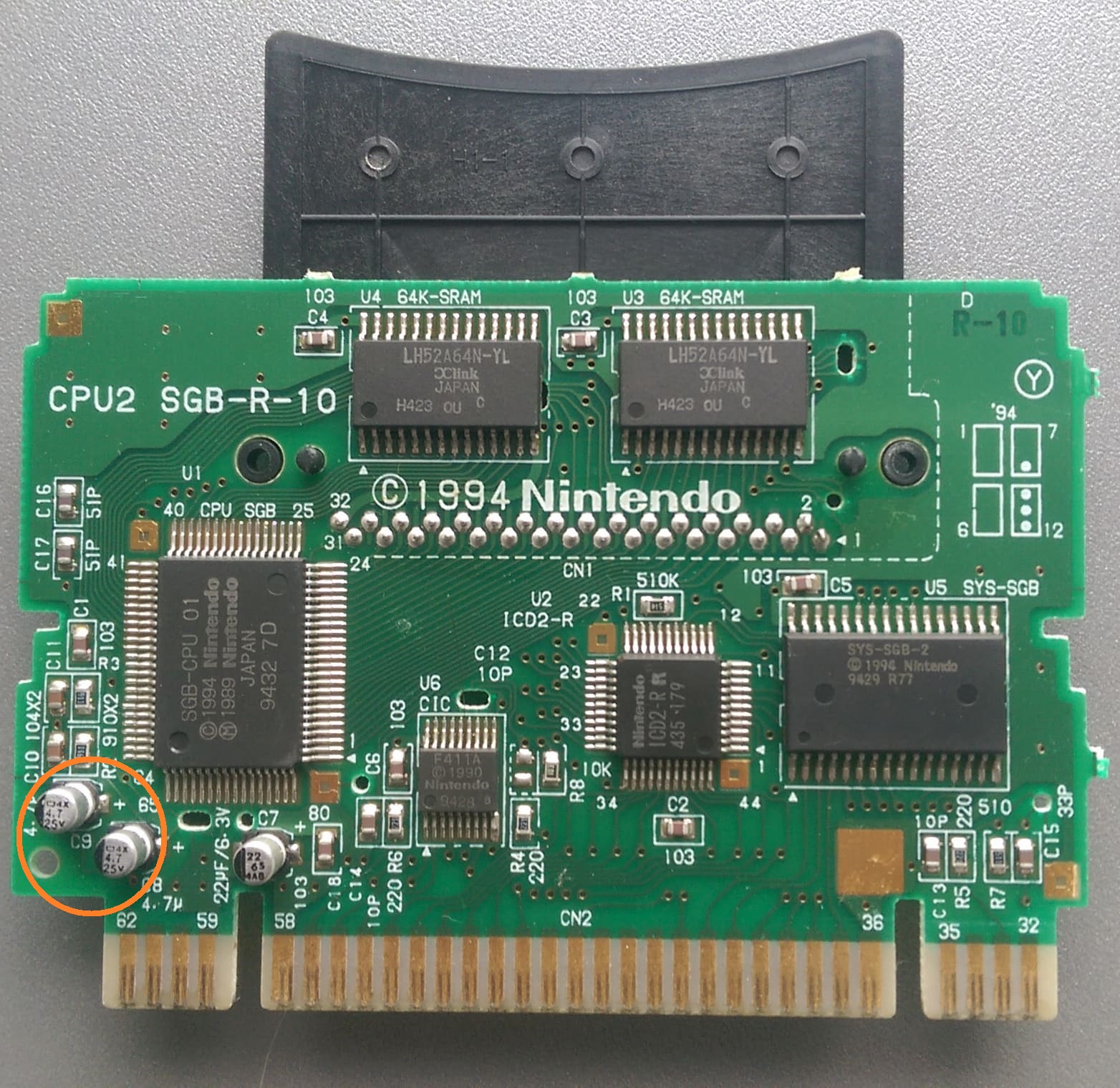 Estuve buscando información y vi en un foro de Score VG de un muchacho que le pregunta a Artemio por un problema similar en una Super Gameboy 2 y Artemio le comenta que solo son tres posibles capacitores en la PCB, pues son los únicos tres capacitores electrolíticos que existen en l a PCB.
