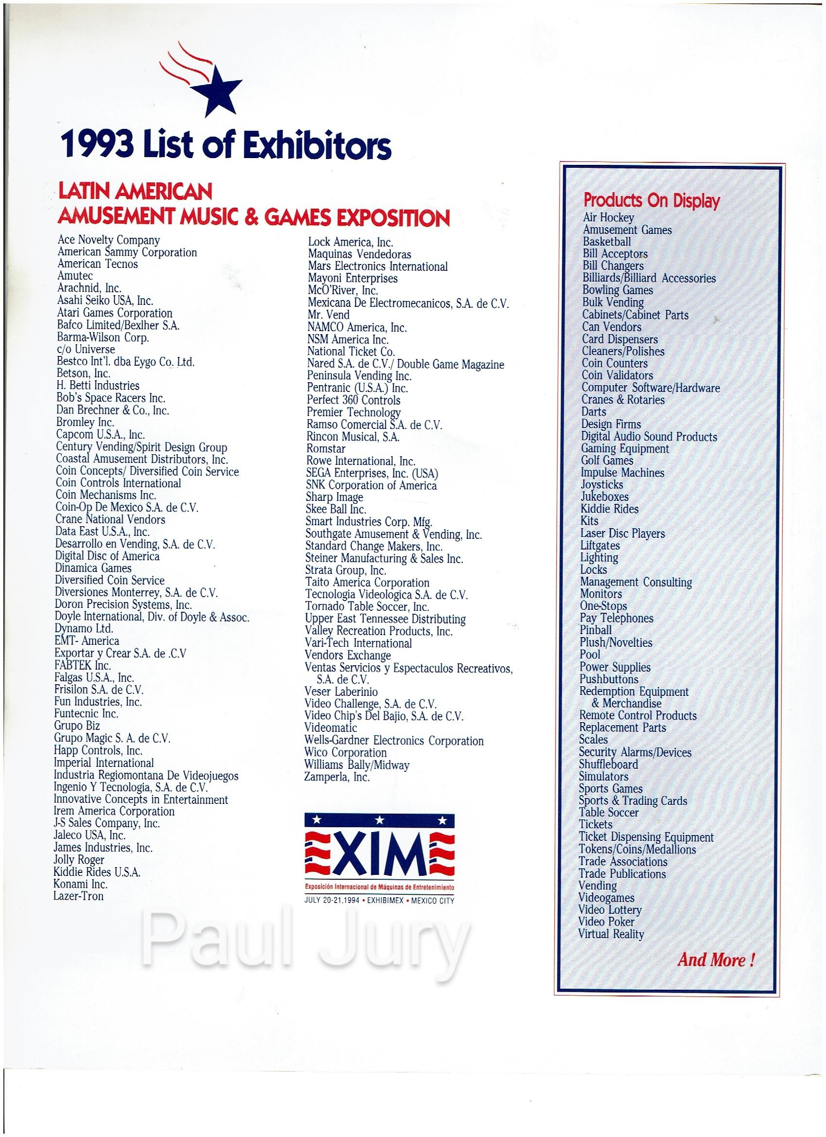 También se mostraría juegos.como KOF 94 que tuvo buenas ventas. Hubo títulos sobre salientes como el Hatrick Hero 94, y varios pinballs que aún seguían vendiendose. entro la compañía de láser tron que era de los que tenías tu chaleco con sensores y tú arma lasser.