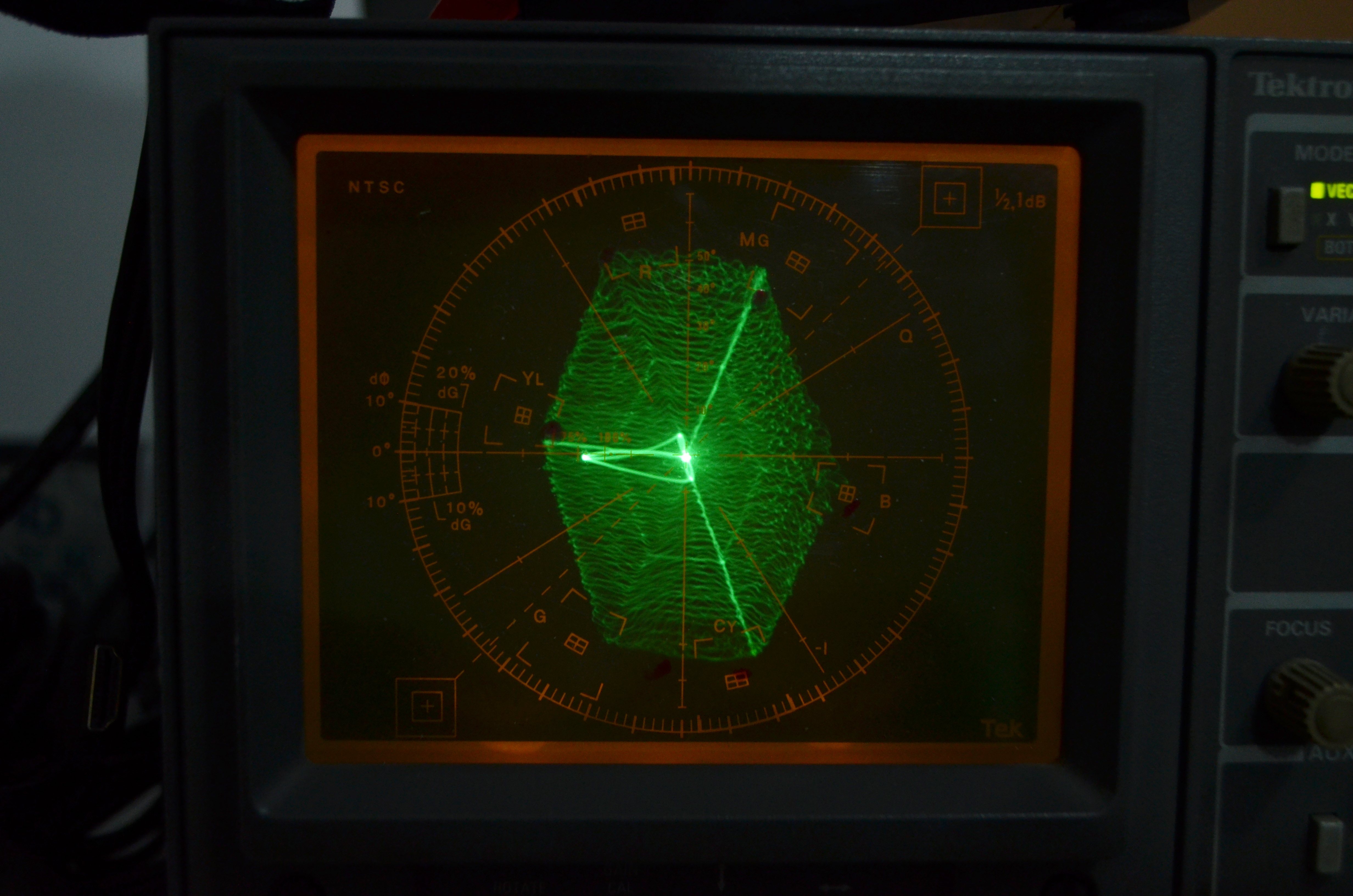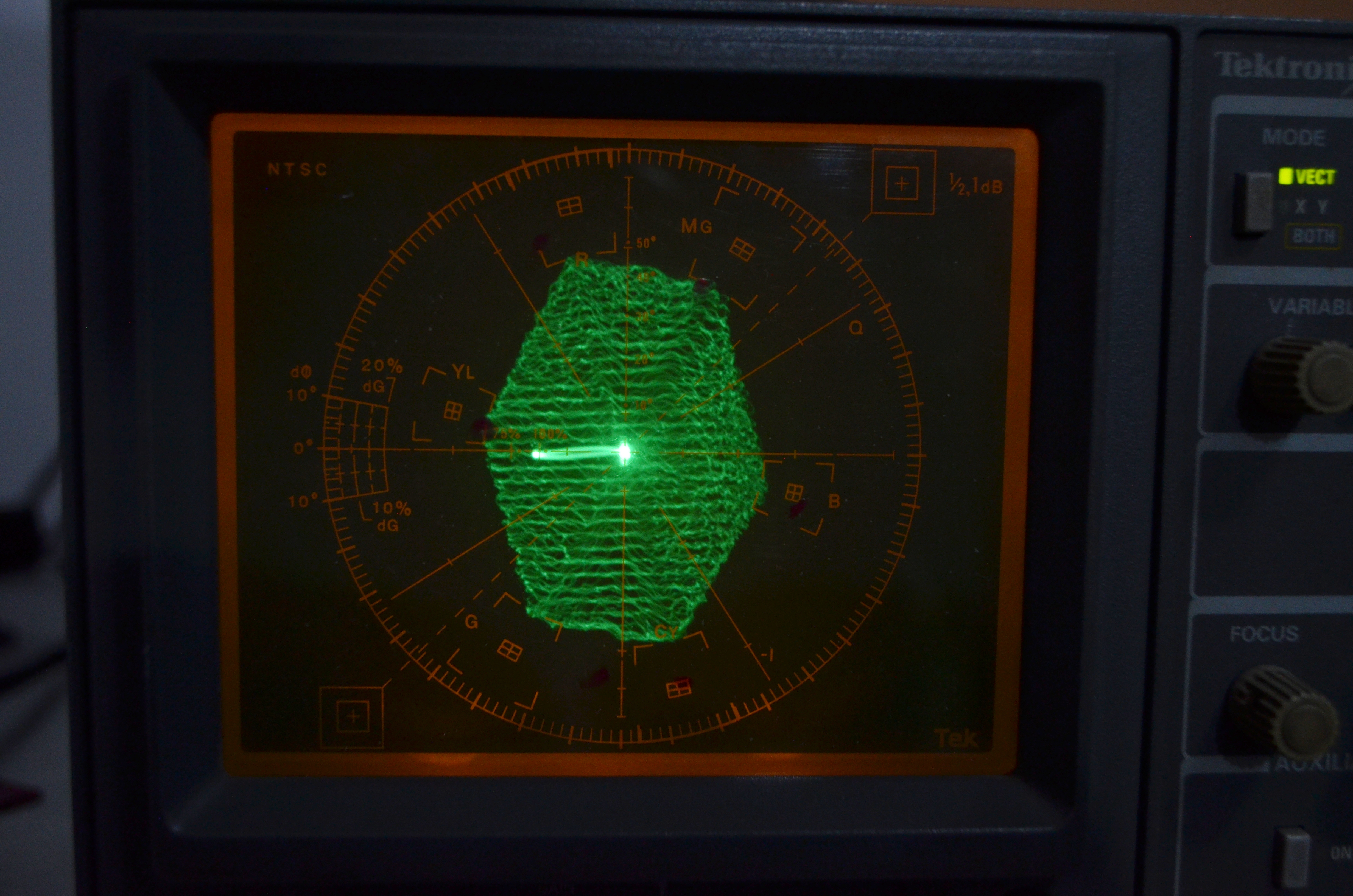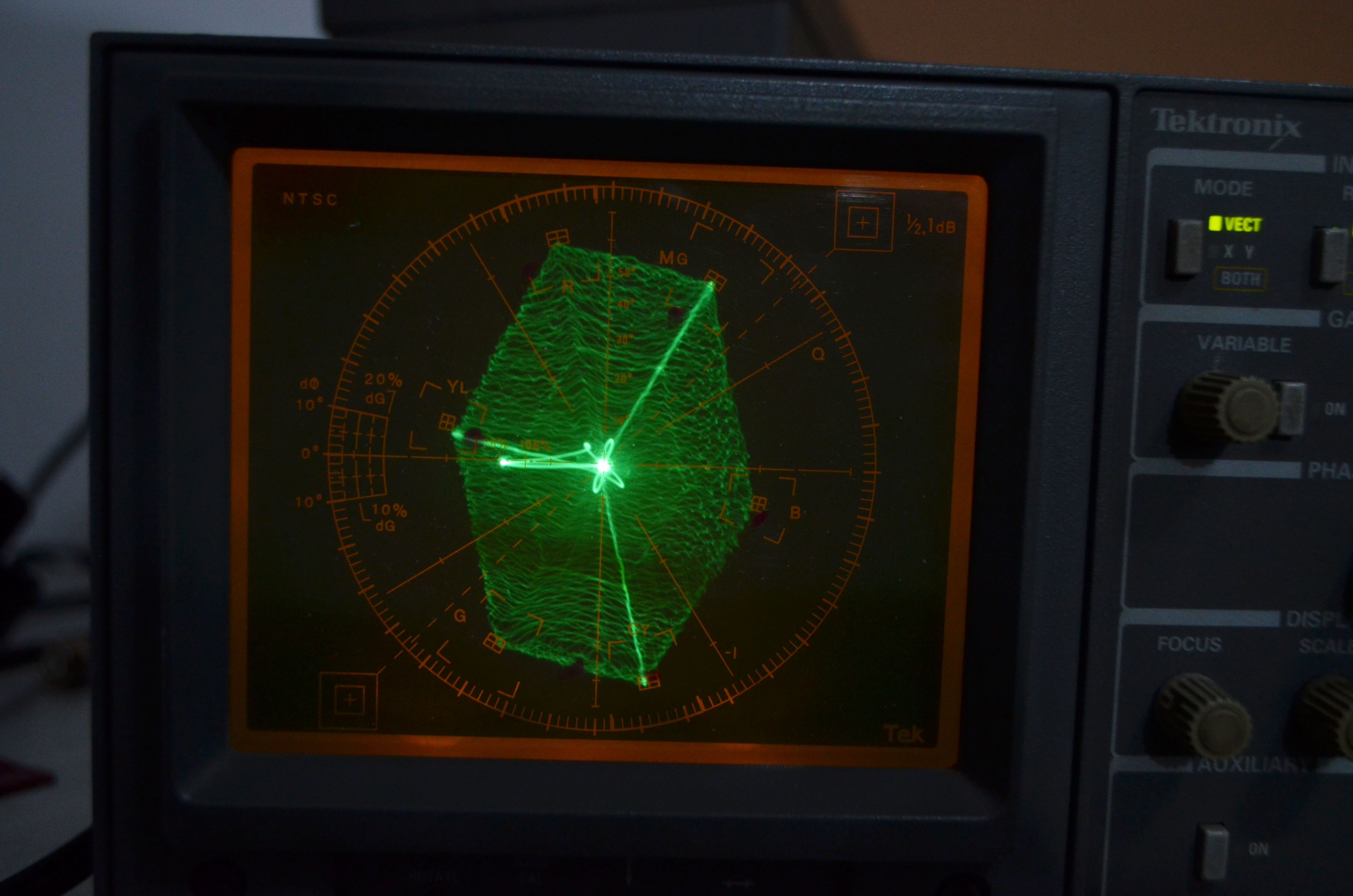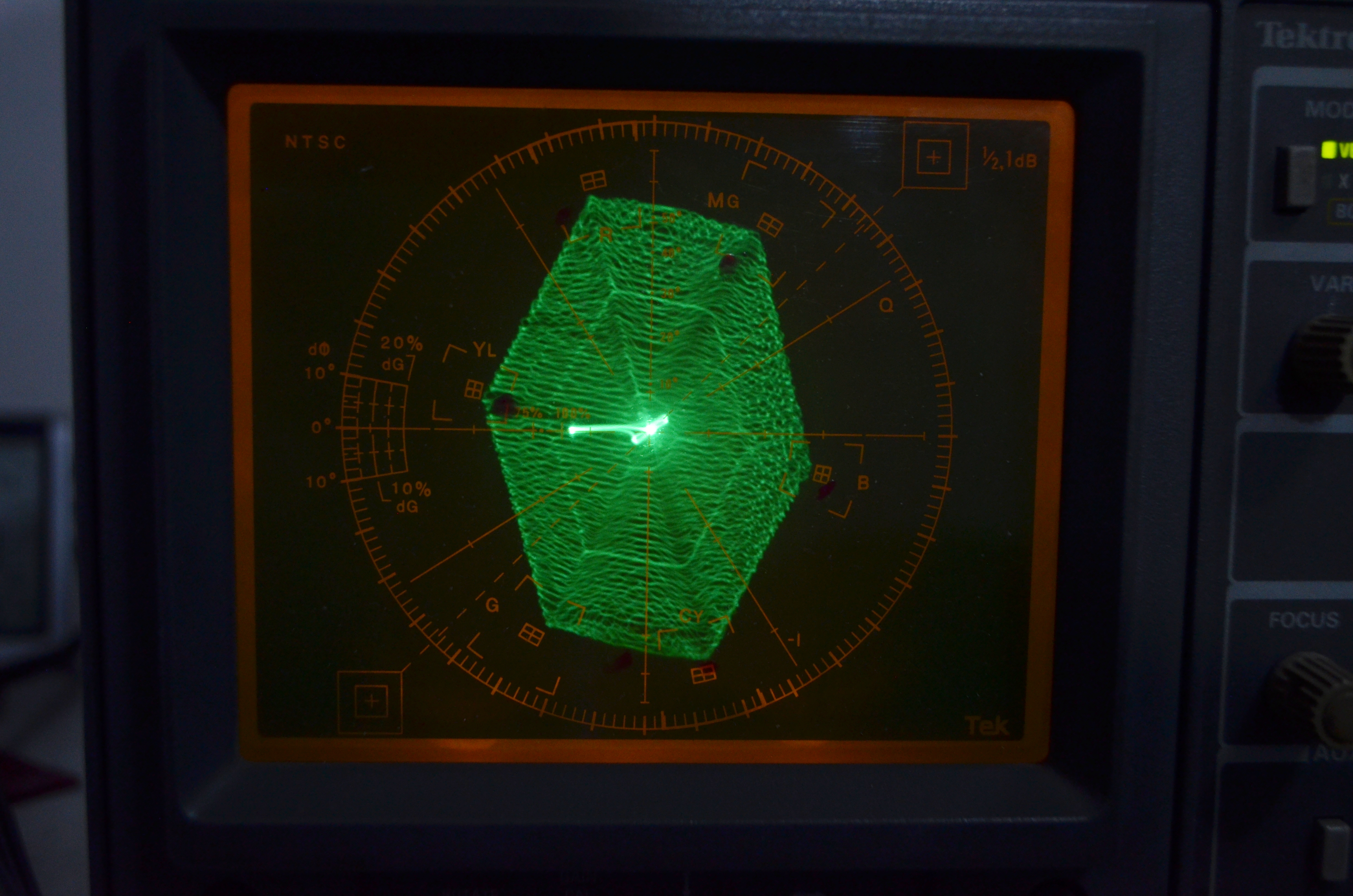 Como puedes ver el genérico hace mejor trabajo, pero es para arcade y sin carcaza, y esta solo es una prueba de precisión de color en vectorscopio, sin contar luminancia, setup de negros y resolución. Que a eso vamos más abajo...