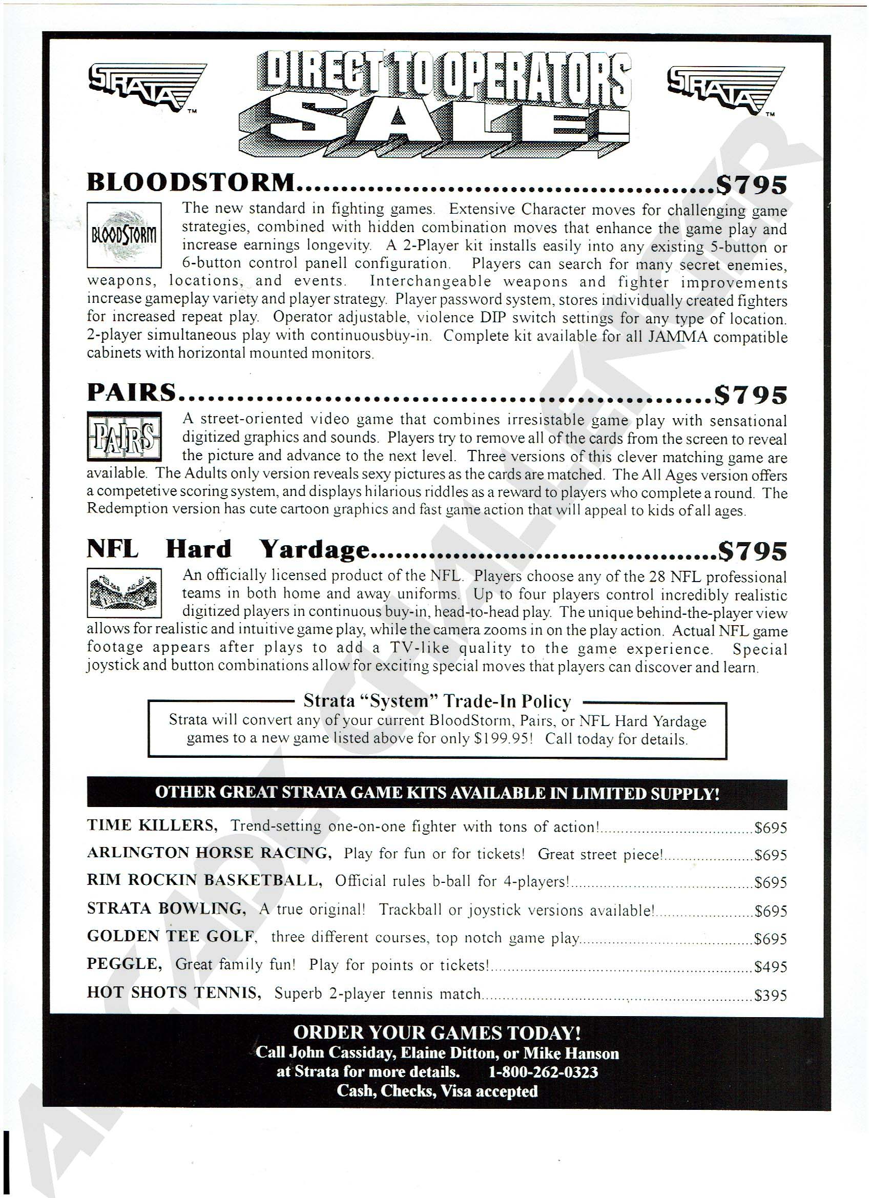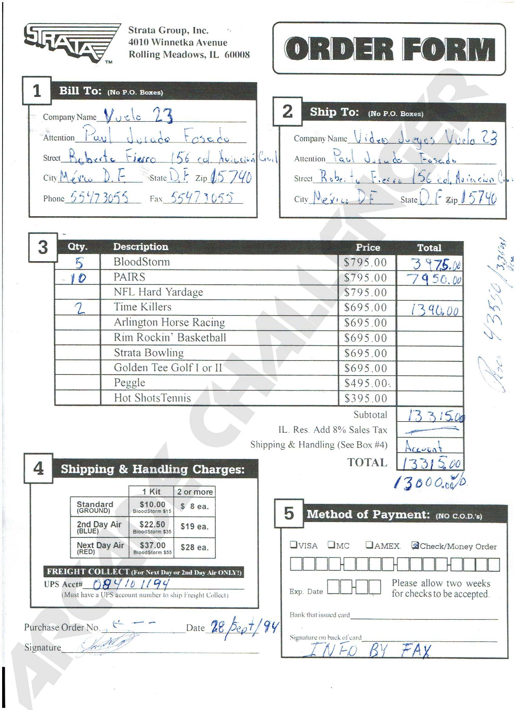 Strata era muy facil comprarles ya que no era una marca grande ni fuerte, ellos mismos vendian directo al operador de arcades y bares, si analizas sus juegos que hizo en su mayoria los veias en bares en estados unidos y canada, ya que eran su target primario.