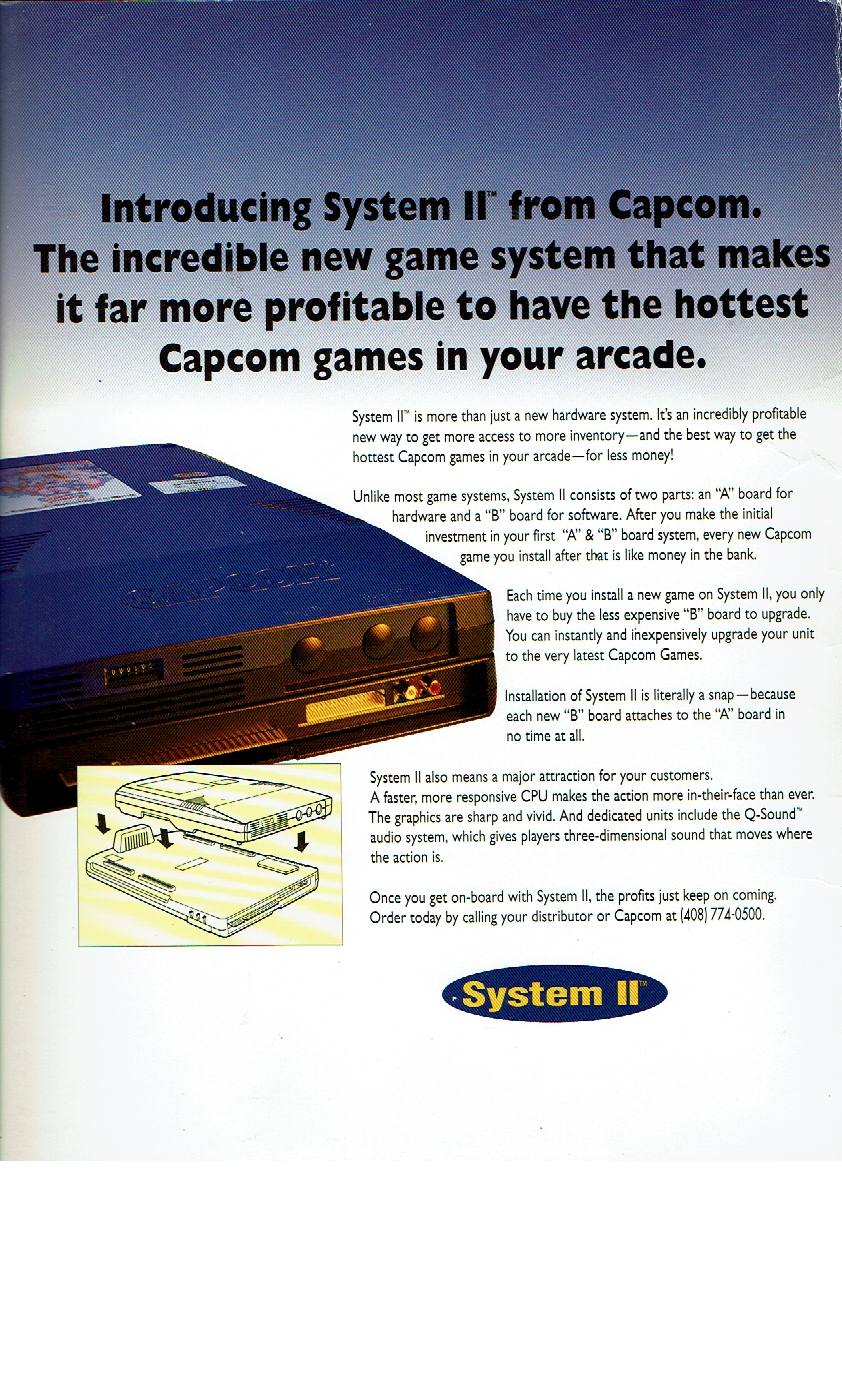 Básicamente,este te da entender que el sistema esta dividido en dos placas y el cual será posible intercambiar la placa b por otro juego como si fuera un simple cartucho de sistemas caseros. y promover los beneficios al comprar este nuevo sistema para si como operador y dueno recuperar la inversion mas rapido sin perder o devaluar en totalidad el juego.