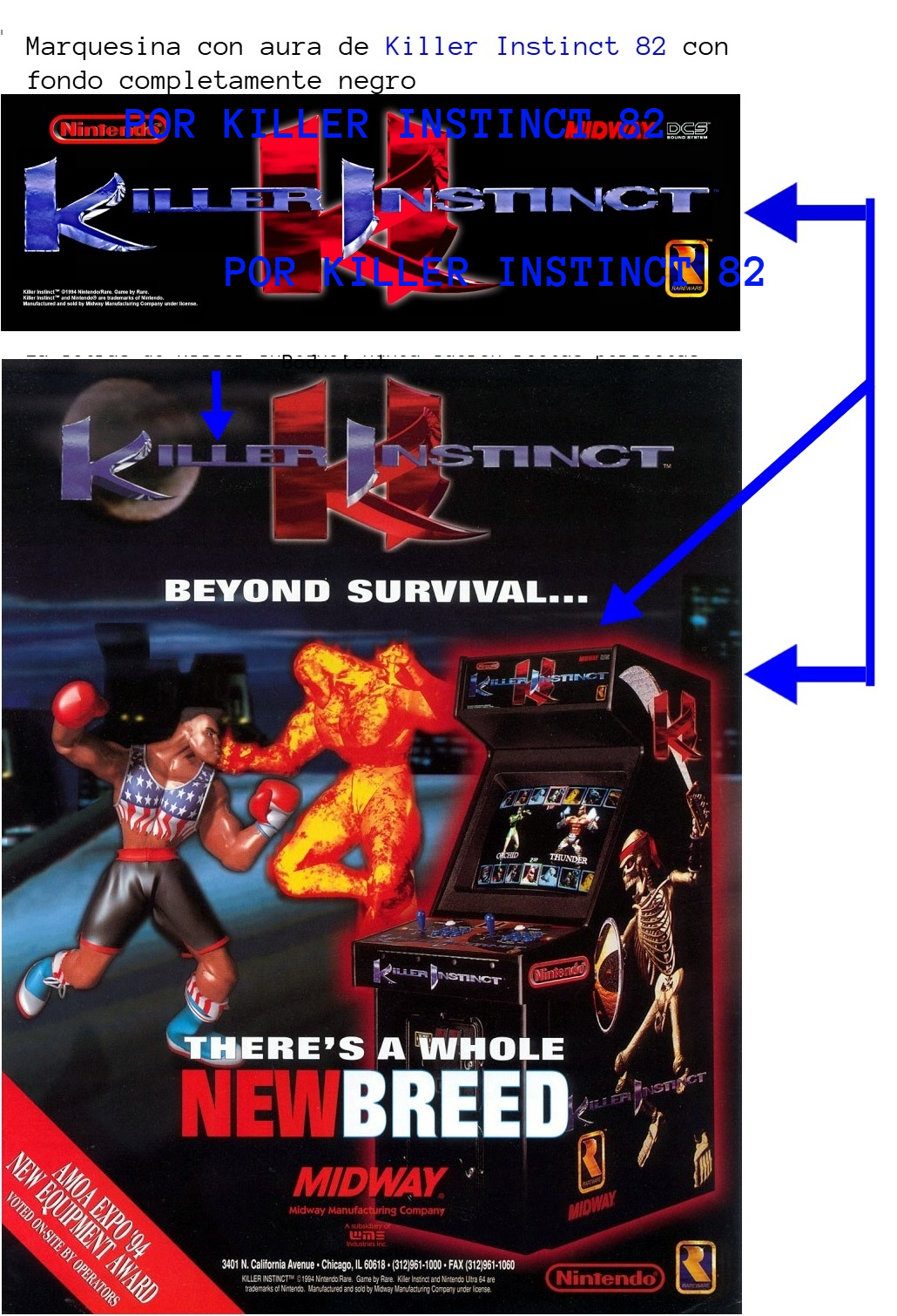 Tengo en mi poder los artes de Killer Instinct Originales para los gabinetes de Midway, hasta el momento creo que soy el unico en todo el mundo en tenerlos con maxima resolucion y colores correctos. Quiero decirles que tambien fabrico los gabinetes de Midway con gran exactitud con mis propios artes KI licenciados con sus etiquetas y seriales originales, tengo mi propio gabinete KI con estos mismos artes.