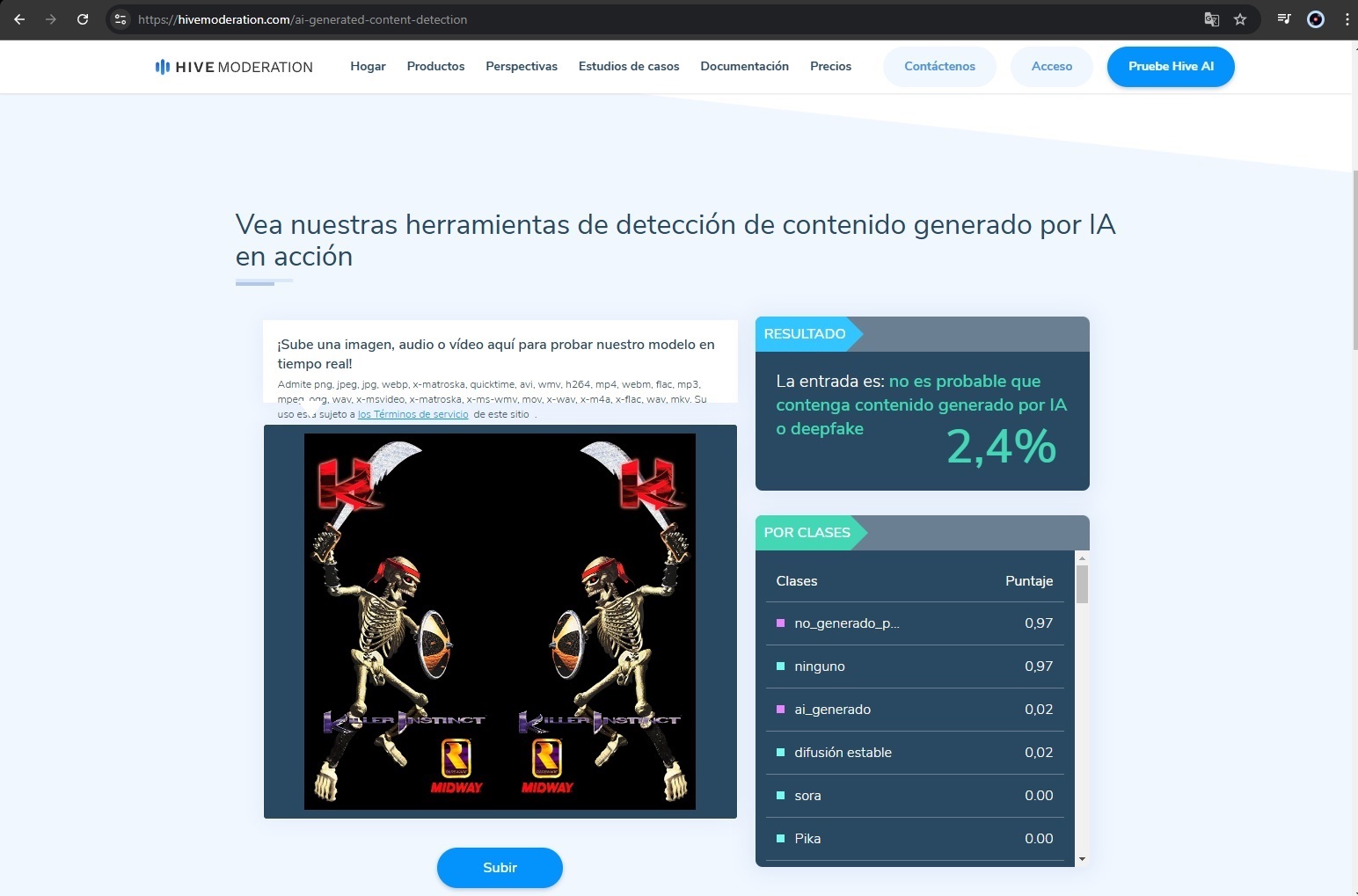 Hice un test con Winston, Sightengine y HiveModeration(la mejor de las 3) 100% confiable para ver si estas imagenes estan hechas por IA y pueden ver ustedes los resultados. El zoom de las imagenes anteriores es exagerado no es asi como lo veria usted en persona, el creneo es mas pequeño una vez impreso por lo tanto habra mas detalles graficos al reducirse la imagen a su tamaño original instalado en la maquina, y por supuesto las imagenes que ven aqui no es la maxima resolucion nativa. Sin duda Kevin Bayliss es un artista legendario, a lo mejor hoy ni el mismo la puede hacer o ya no se acuerda el brebaje que utilizo