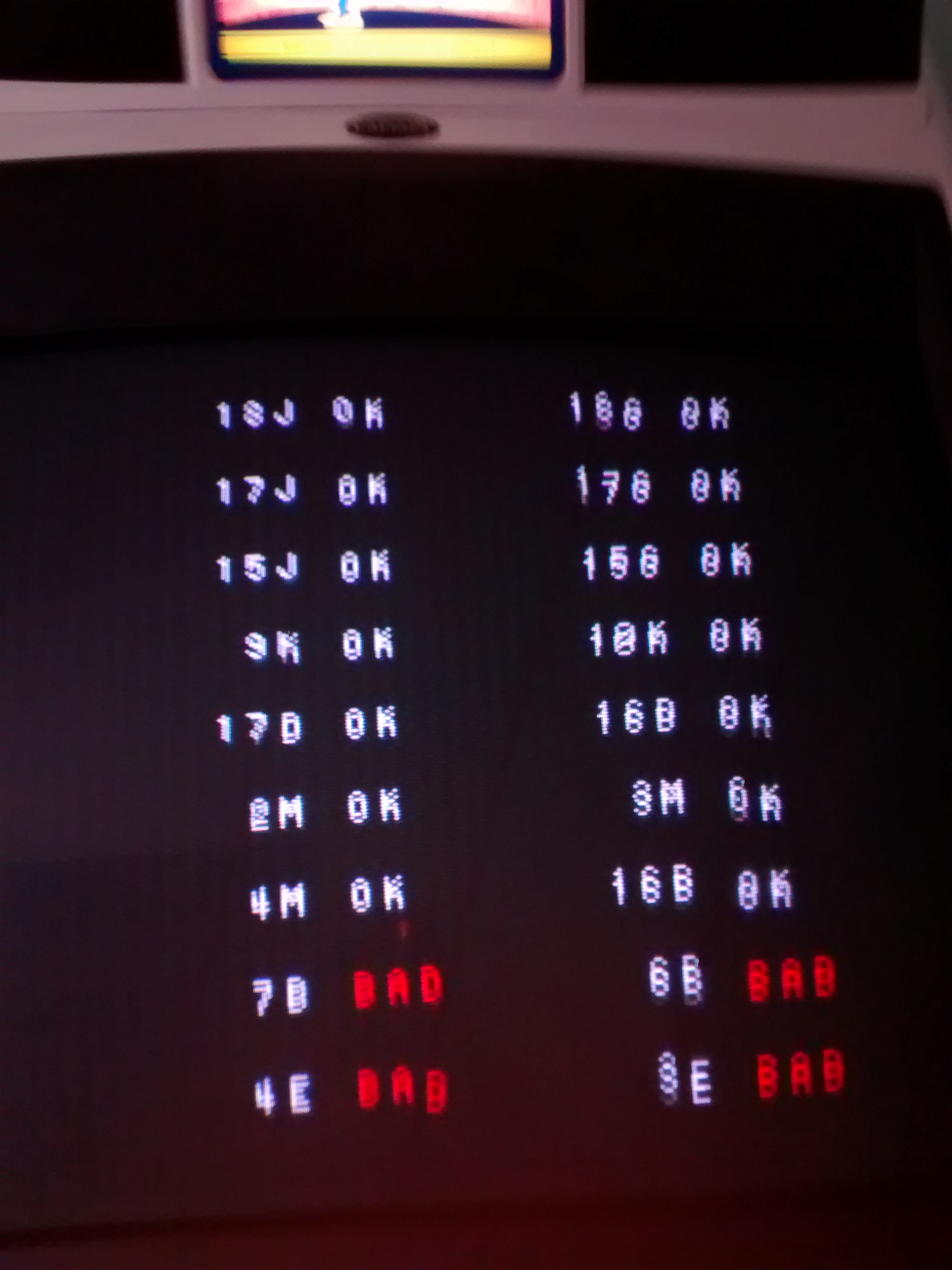 Los problemas vinieron una vez que llegue a casa y la conecte a la impress, no mas no jalaba el juego y cada vez que prendia el gabinete, en la pantalla solo aparecia el Check con variaciones en los resultados, algunas veces solo ponia la lista de las cosas a verificar y de ahi no pasaba, otras me marcaba error en 7B, 4E, 6B y 3E, en algunas otras solo me marcaba un error en E3, y solo en una ocasion me puso todas en OK pero ni aun asi inicio el juego, alguna idea o sugerencia de que podria estar pasando?