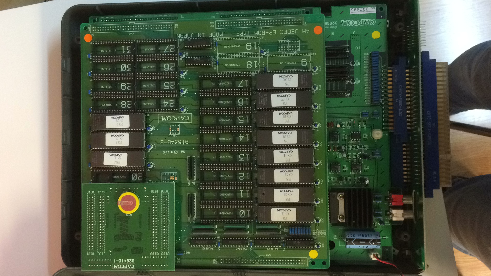 Sólo seguí el proceso de ambas baterías, y funcionó de nuevo. Sin embargo, la ROM Japonesa causaba un error al combatir al primer jefe... por lo que tuve que convertirla a Americana. Por suerte esto es lo que el dueño de la placa prefería de todas maneras.