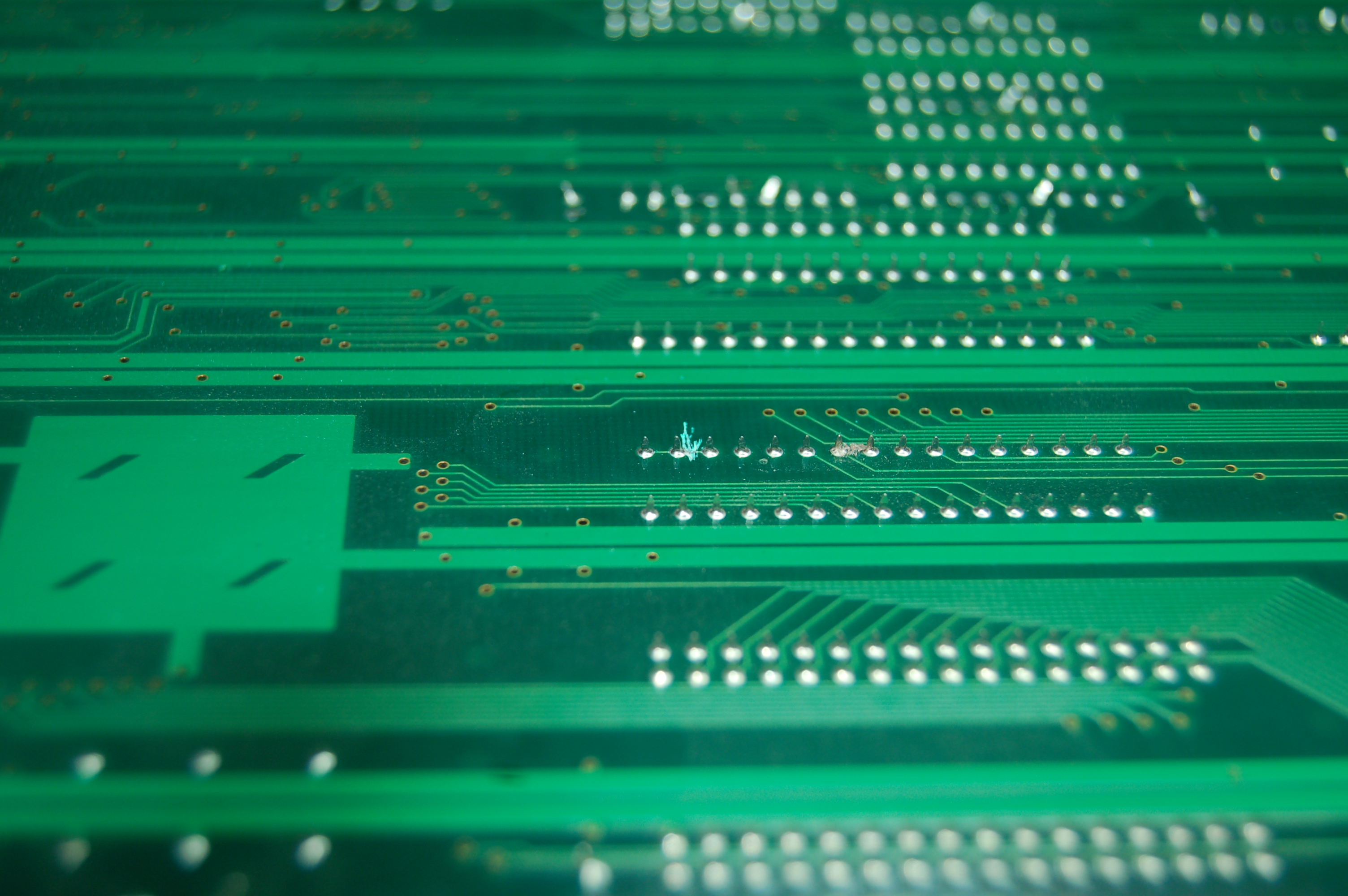 Esta foto la tomé inmediatamente después de limpiar con alcohol isopropílico, y por lo mismo no se notan los cortes sobre la pcb. Lo comento porque se nota insualmente limpio, y en las siguientes fotos que el alcohol ya secó si se ven los cortes sobre ésta.