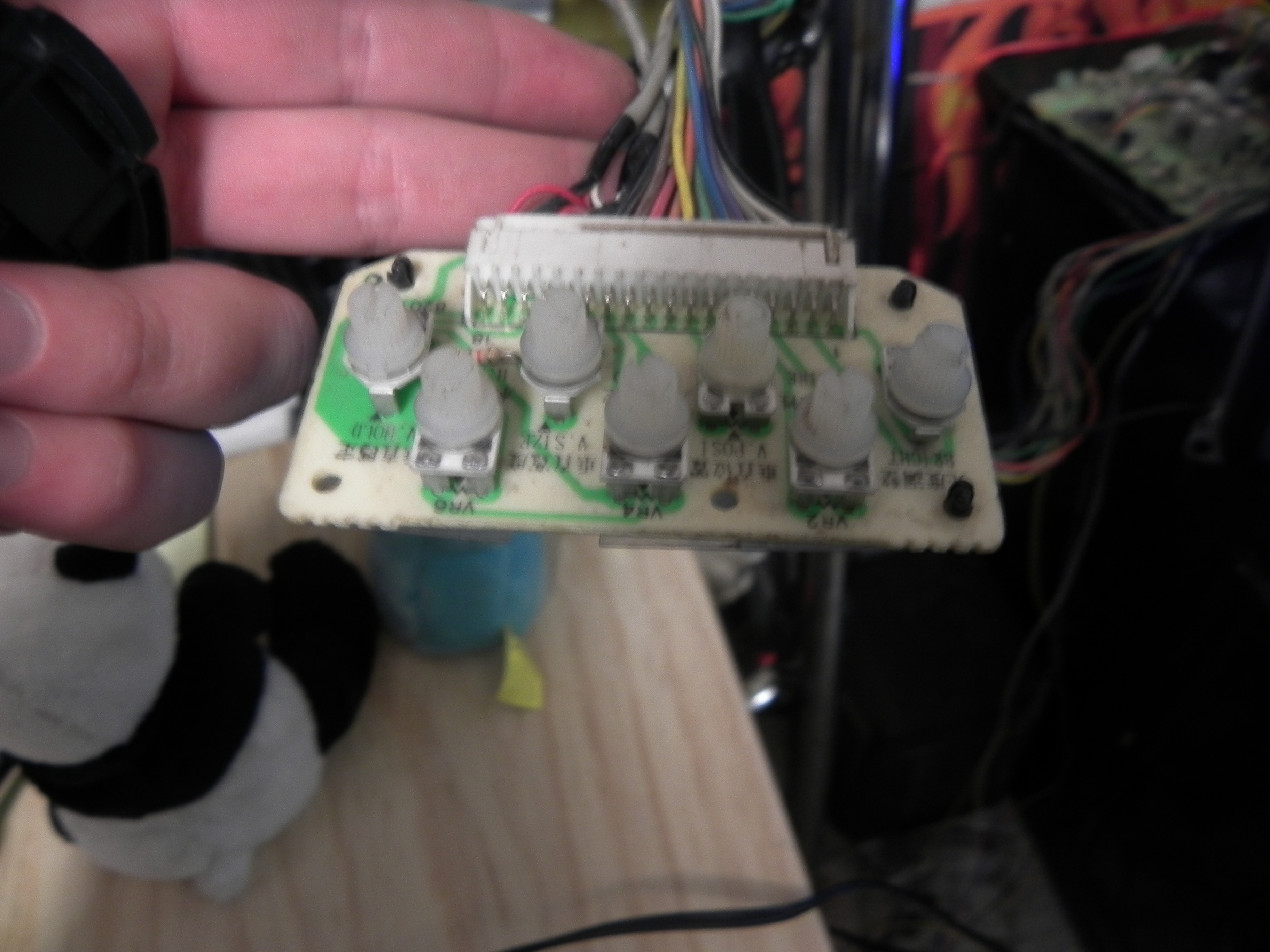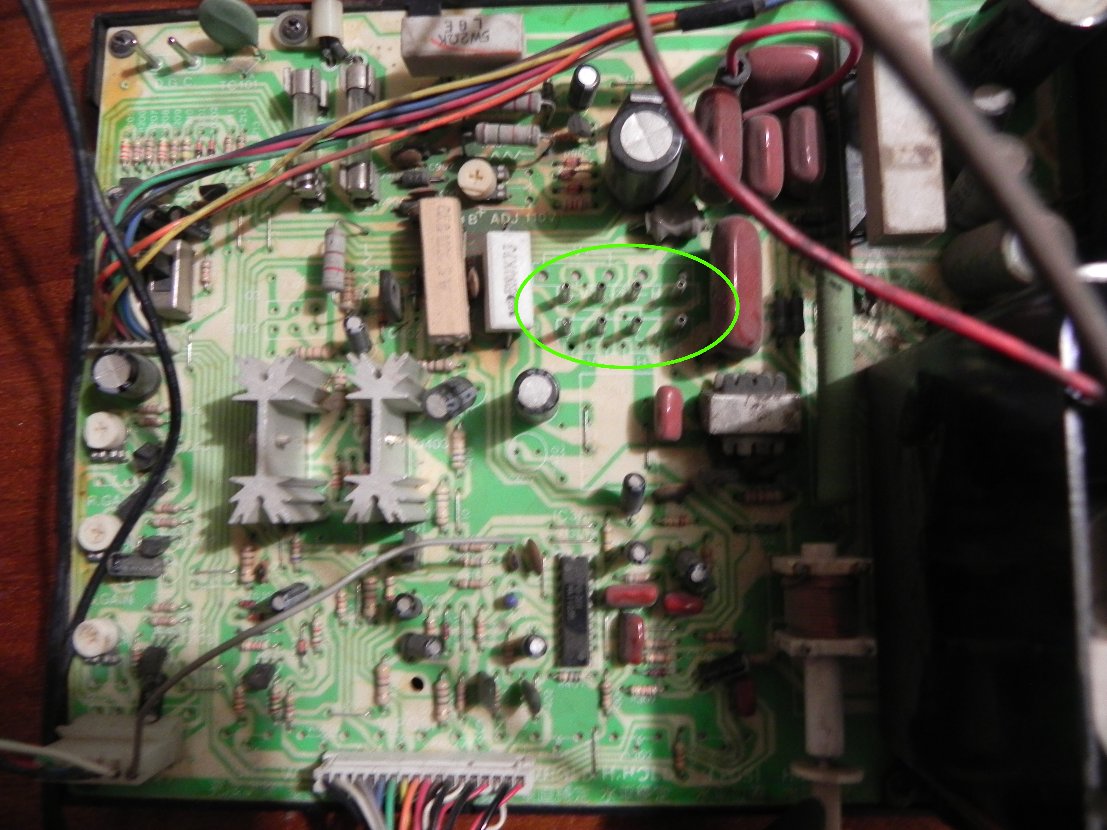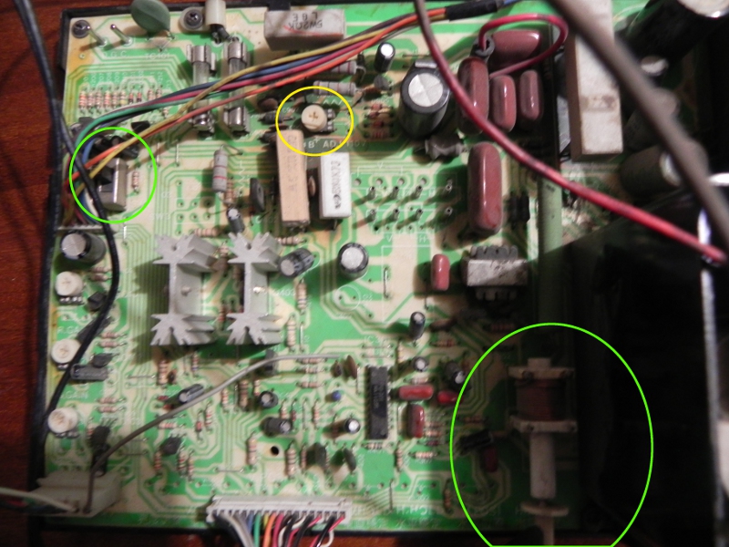 En amarillo te marque un potenciómetro que no debes alterar, ya que es el que controla el voltaje del chassis.
