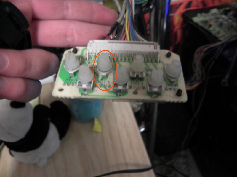 Los otros controles que parece haber en tu chasis, solamente sirven para tamaños horizontales. En la siguiente imágen te marque lso dos controles que sirven para esto en verde. El Switch de la izquierda es usado para cambiar entre modo wide y normal. Es posible que se encuentre ajustado en wide, y debas revertirlo. El de la derecha es para ajustar el ancho horizontal, el H.Width.