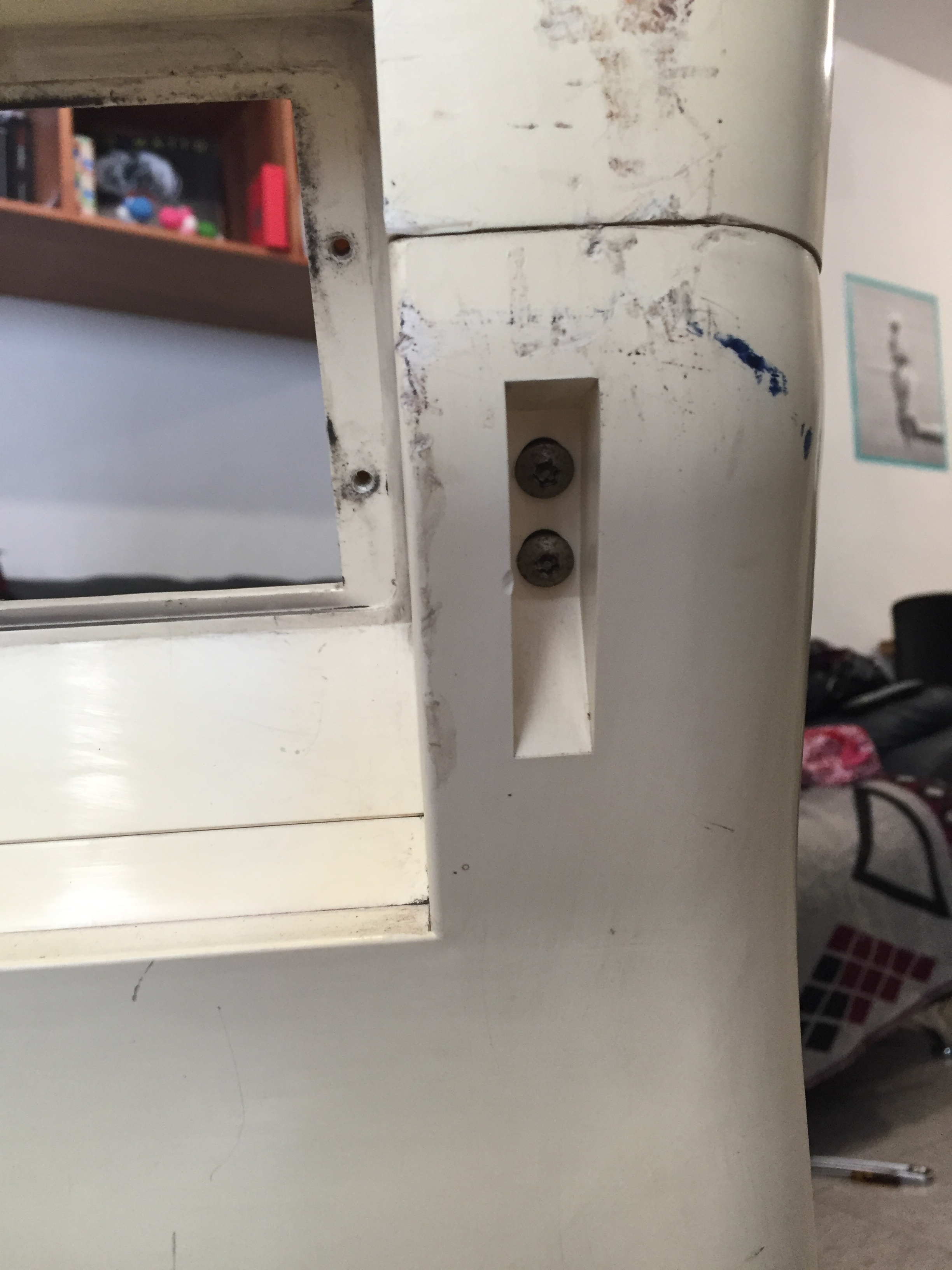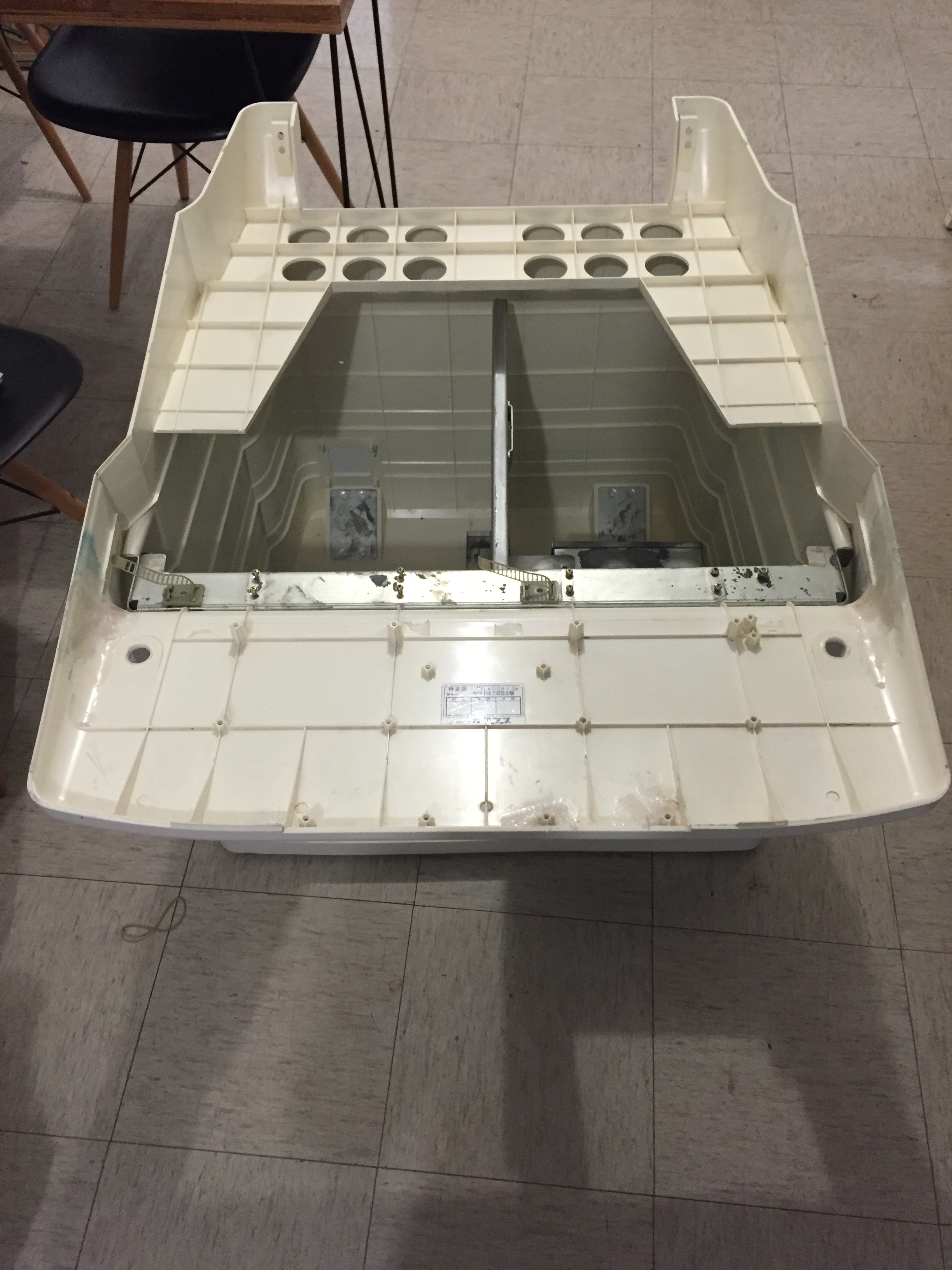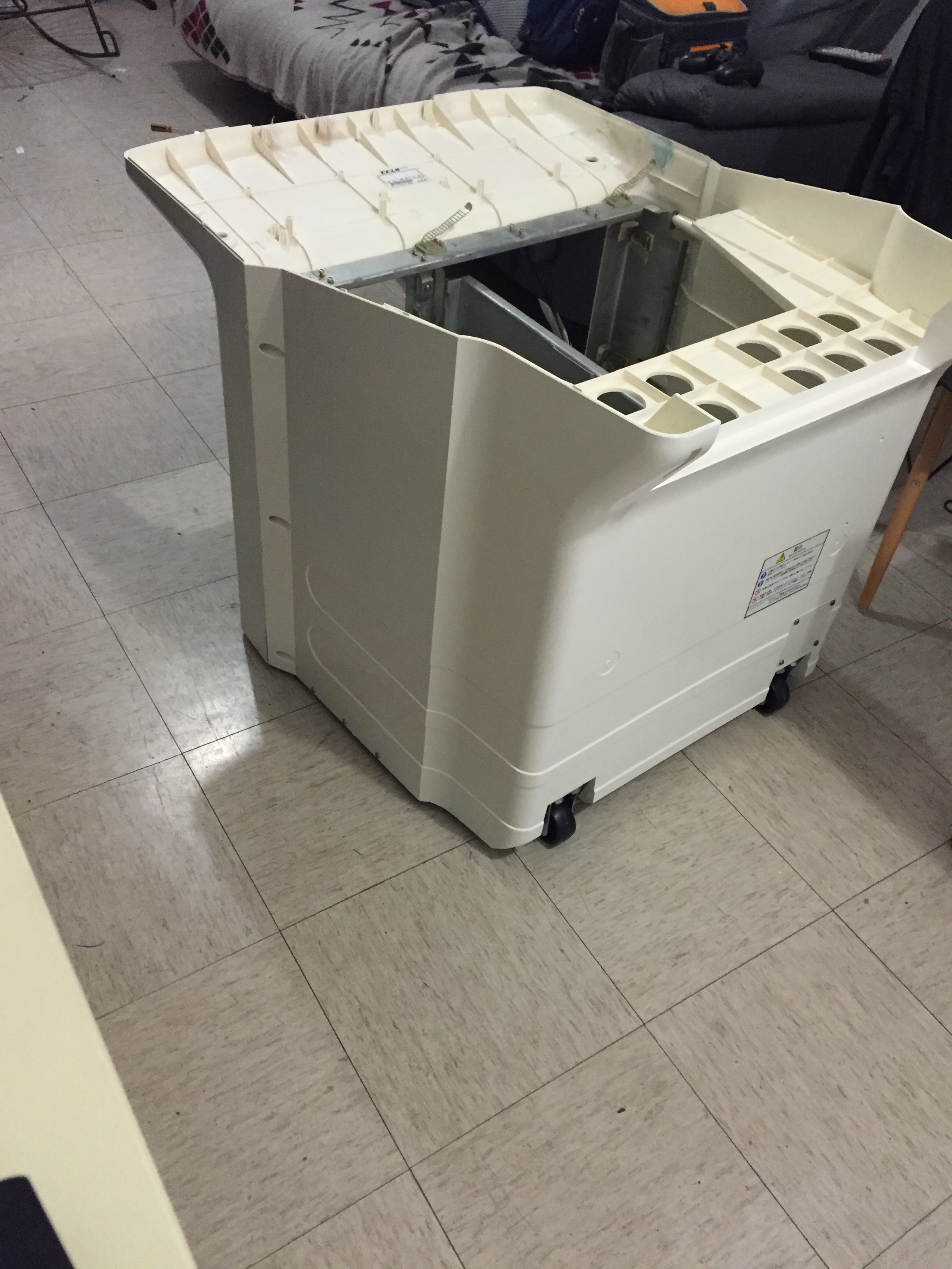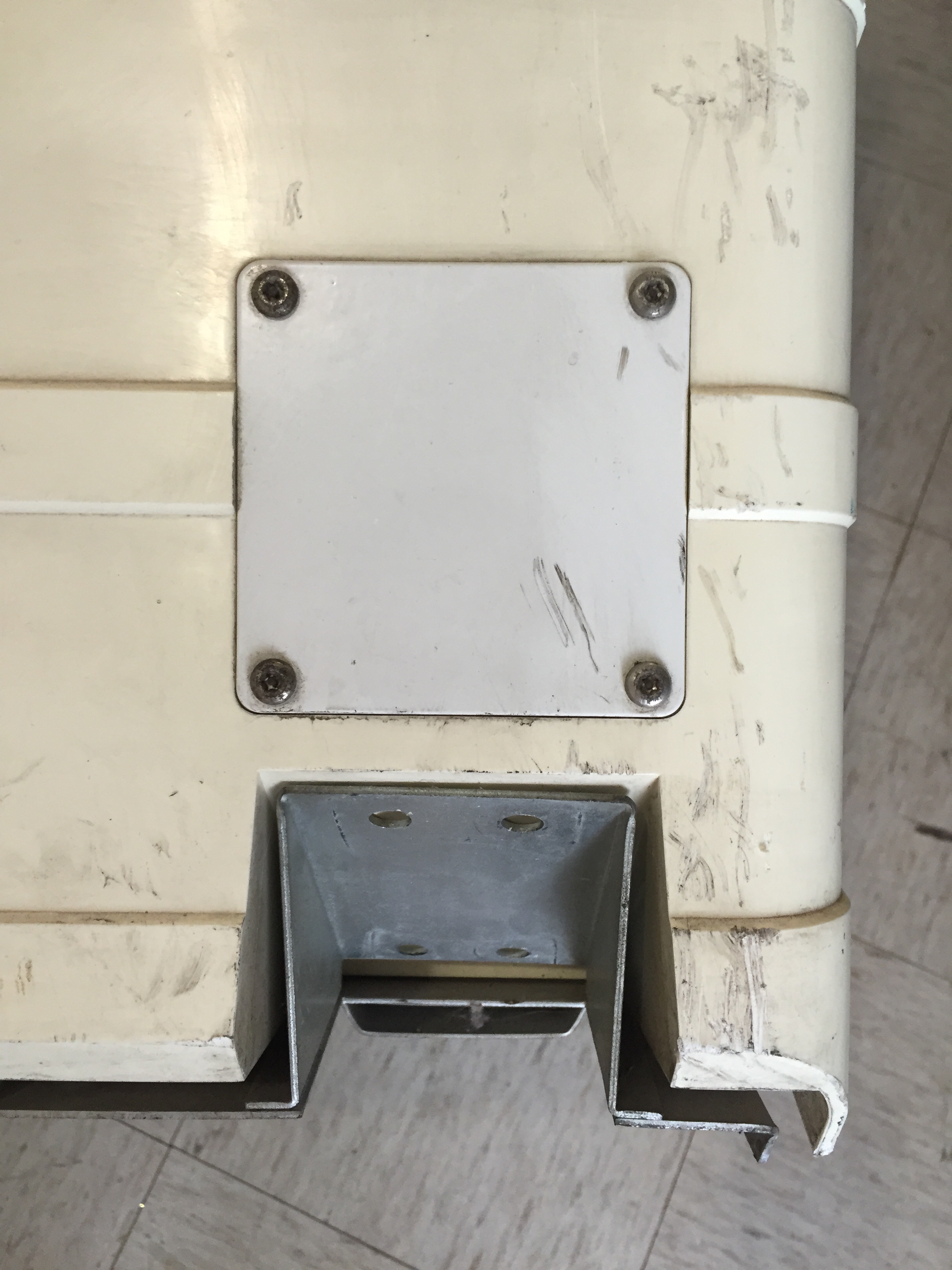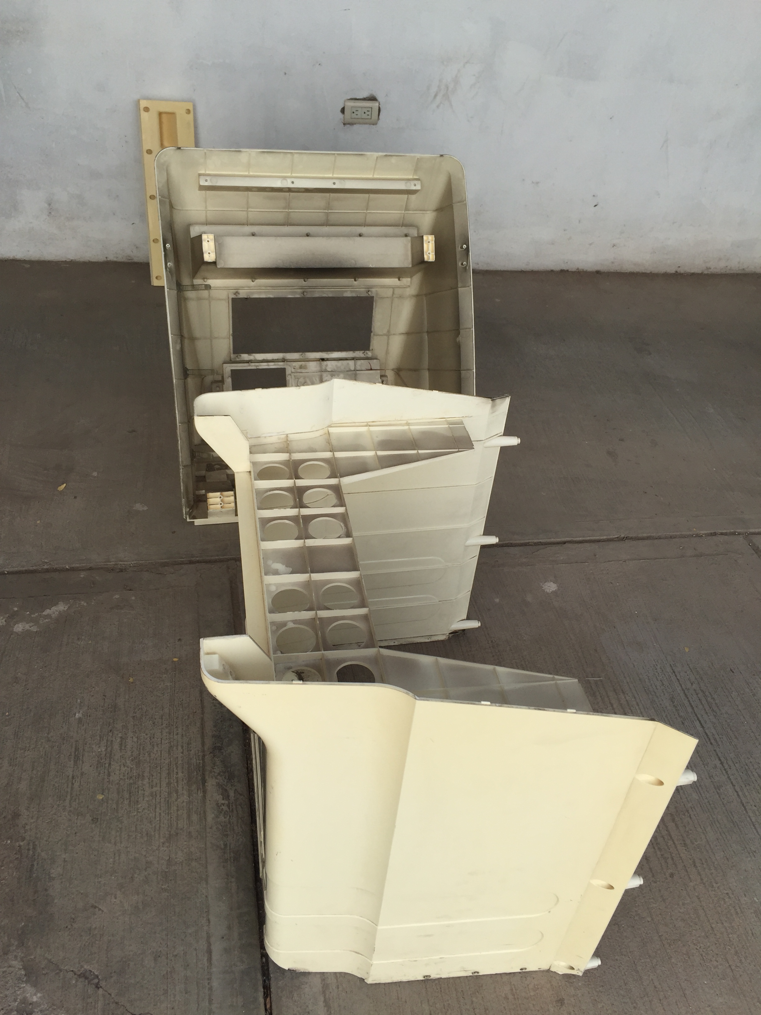 Manos a la obra inicio el desmantelado del gabinete. Retiro primeramente la caratula frontal inferior para quitar un pasador de candado que estaba remachado a la estructura.