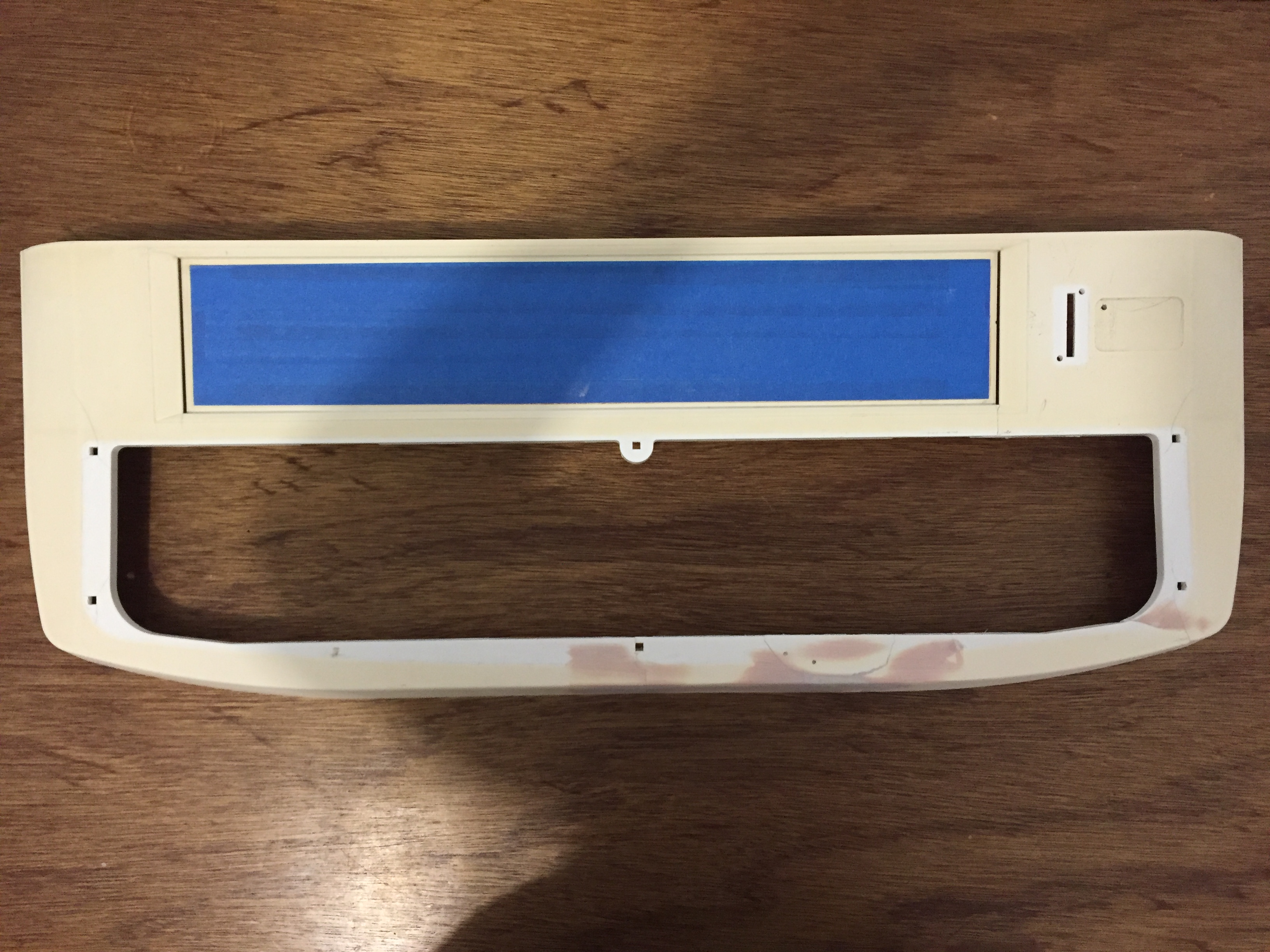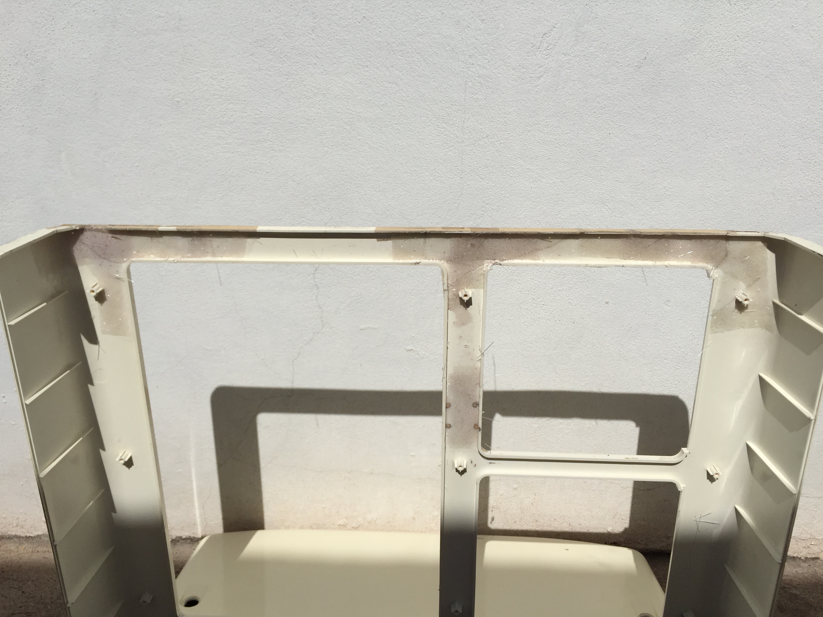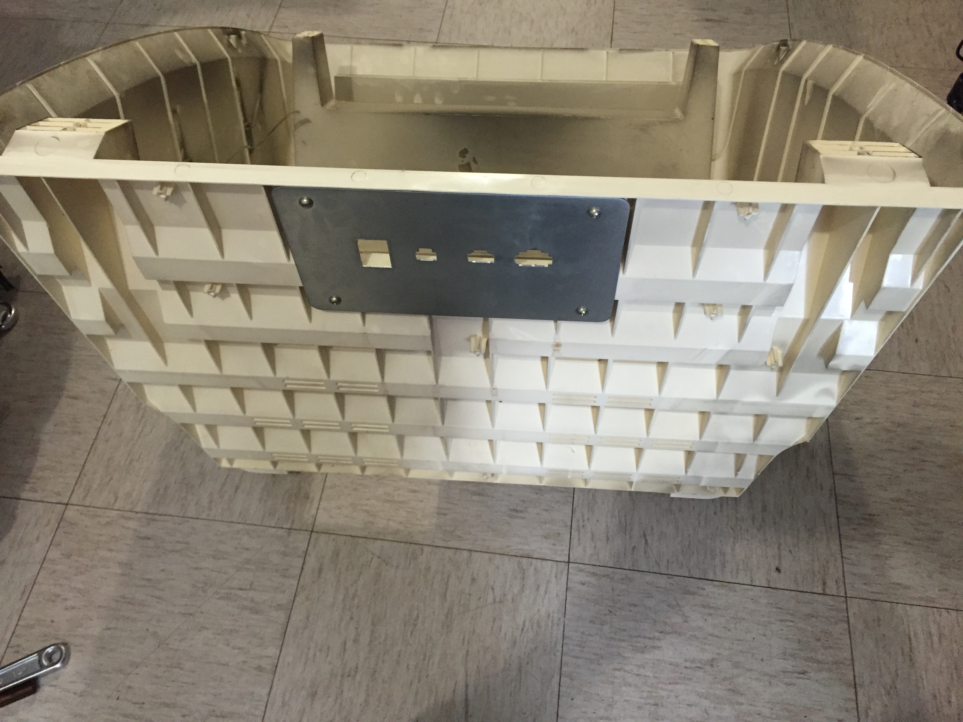 Aqui vista del panel frontal inferior ya con las piezas pegadas con resina y fibra de vidrio.