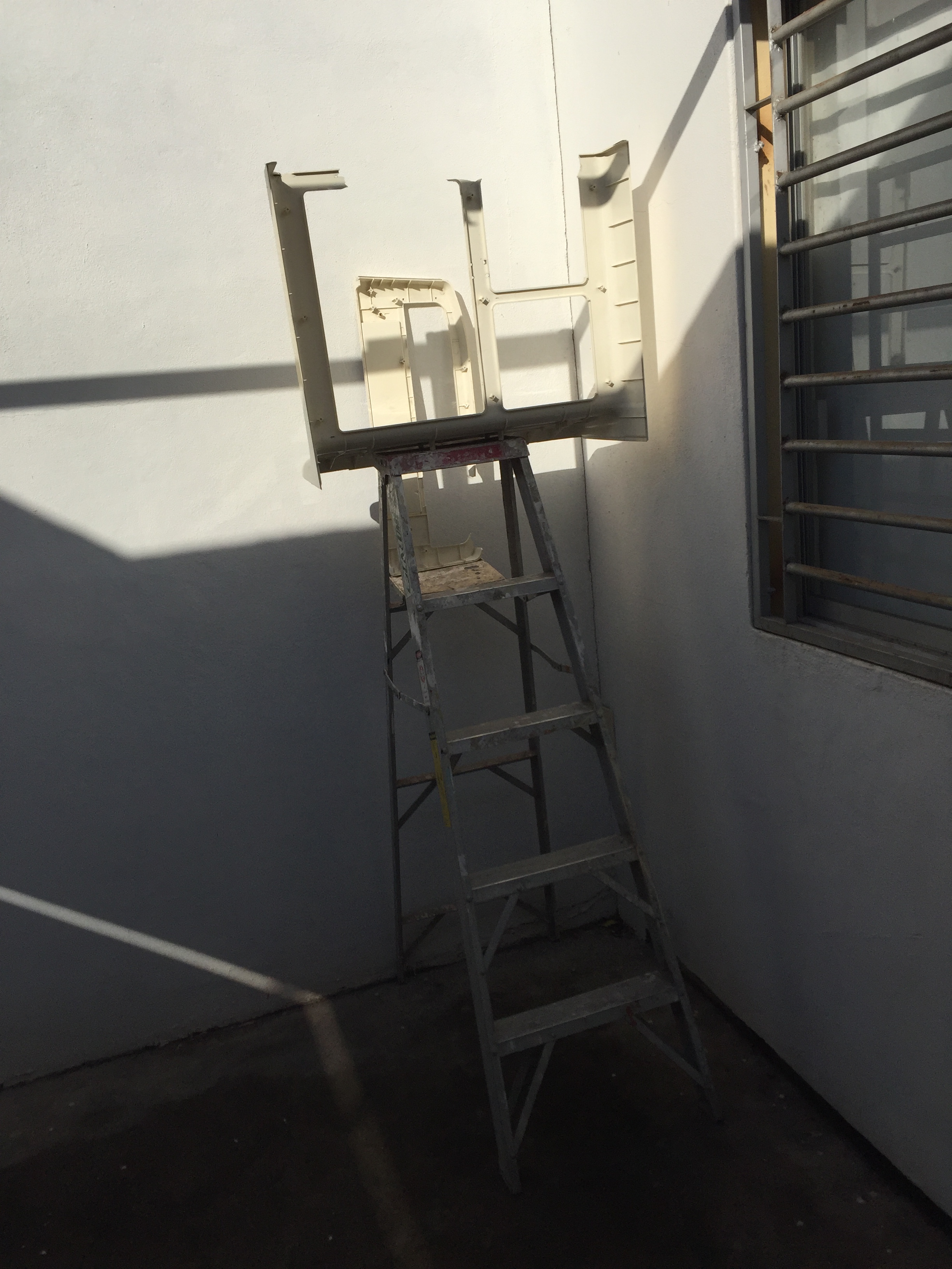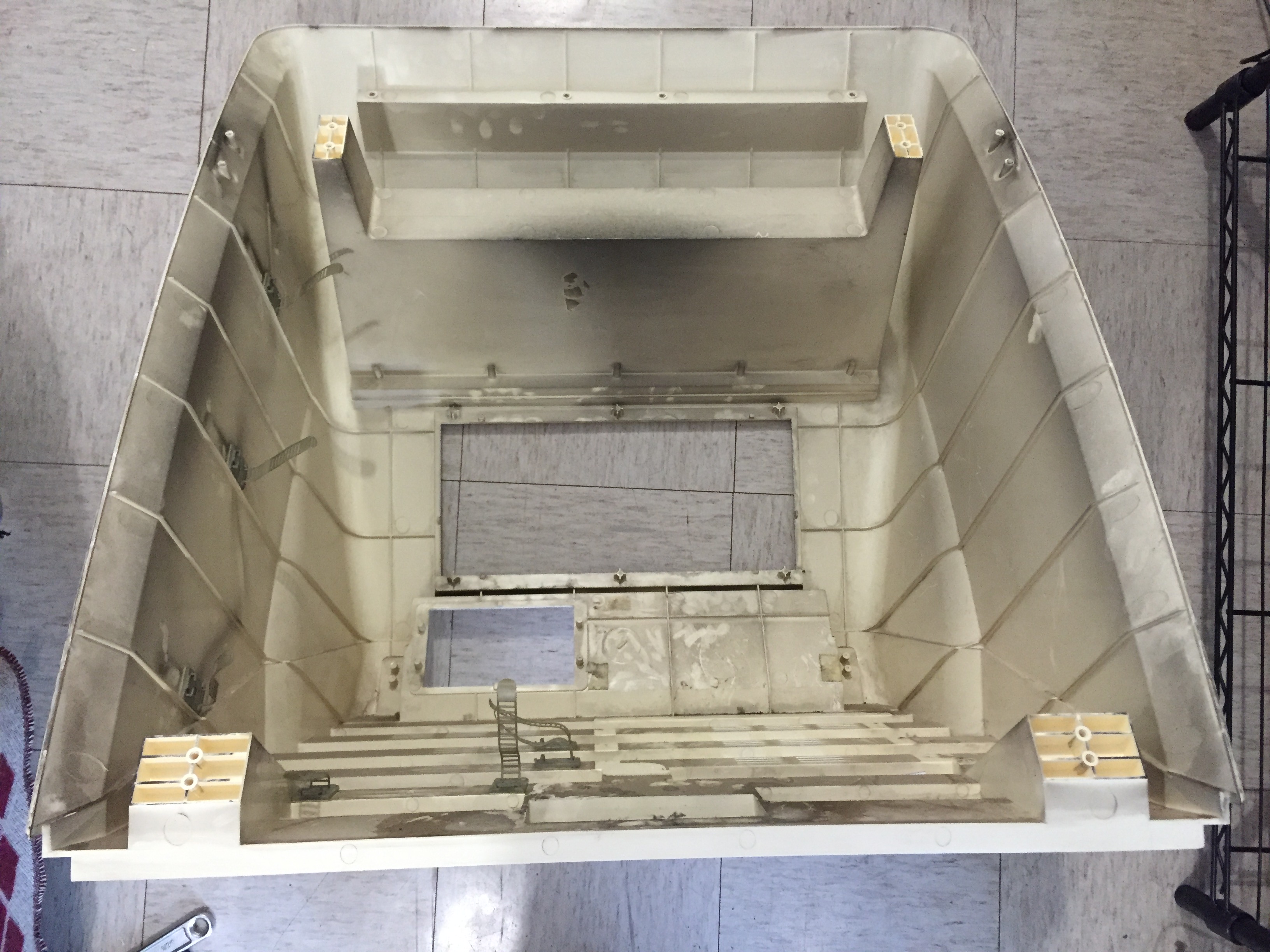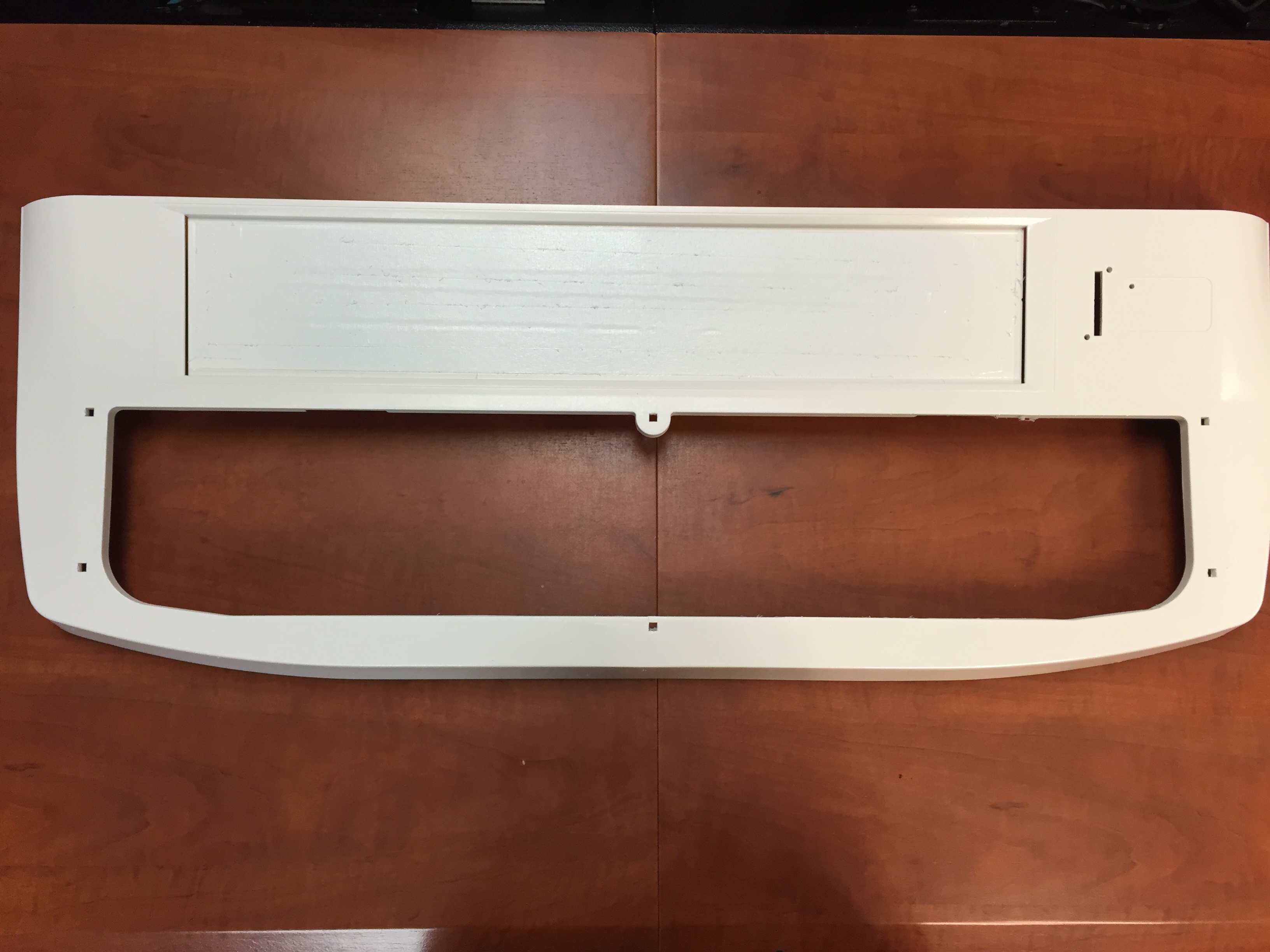 Aqui vista del panel frontal inferior ya con las piezas pegadas con resina y fibra de vidrio.