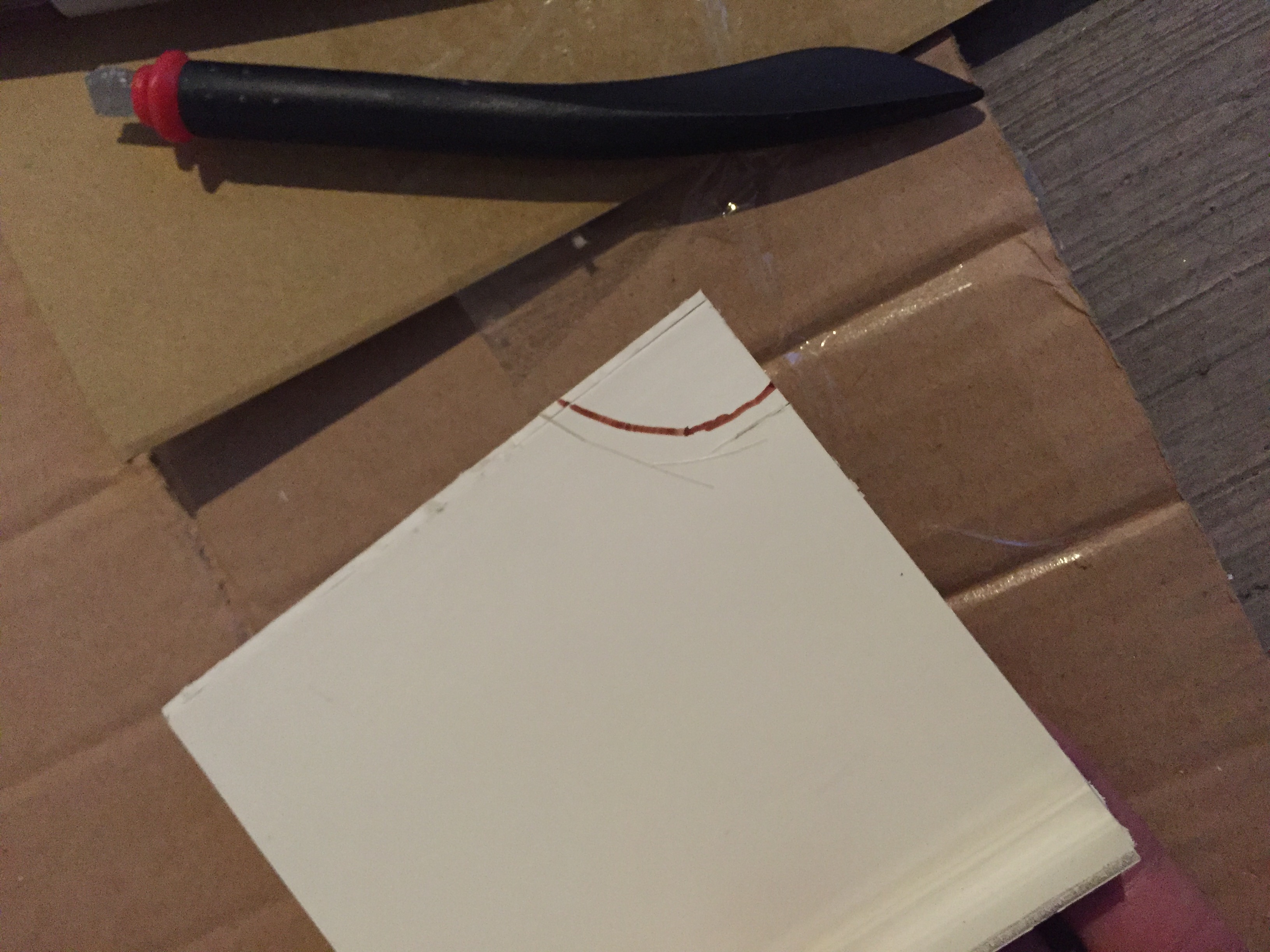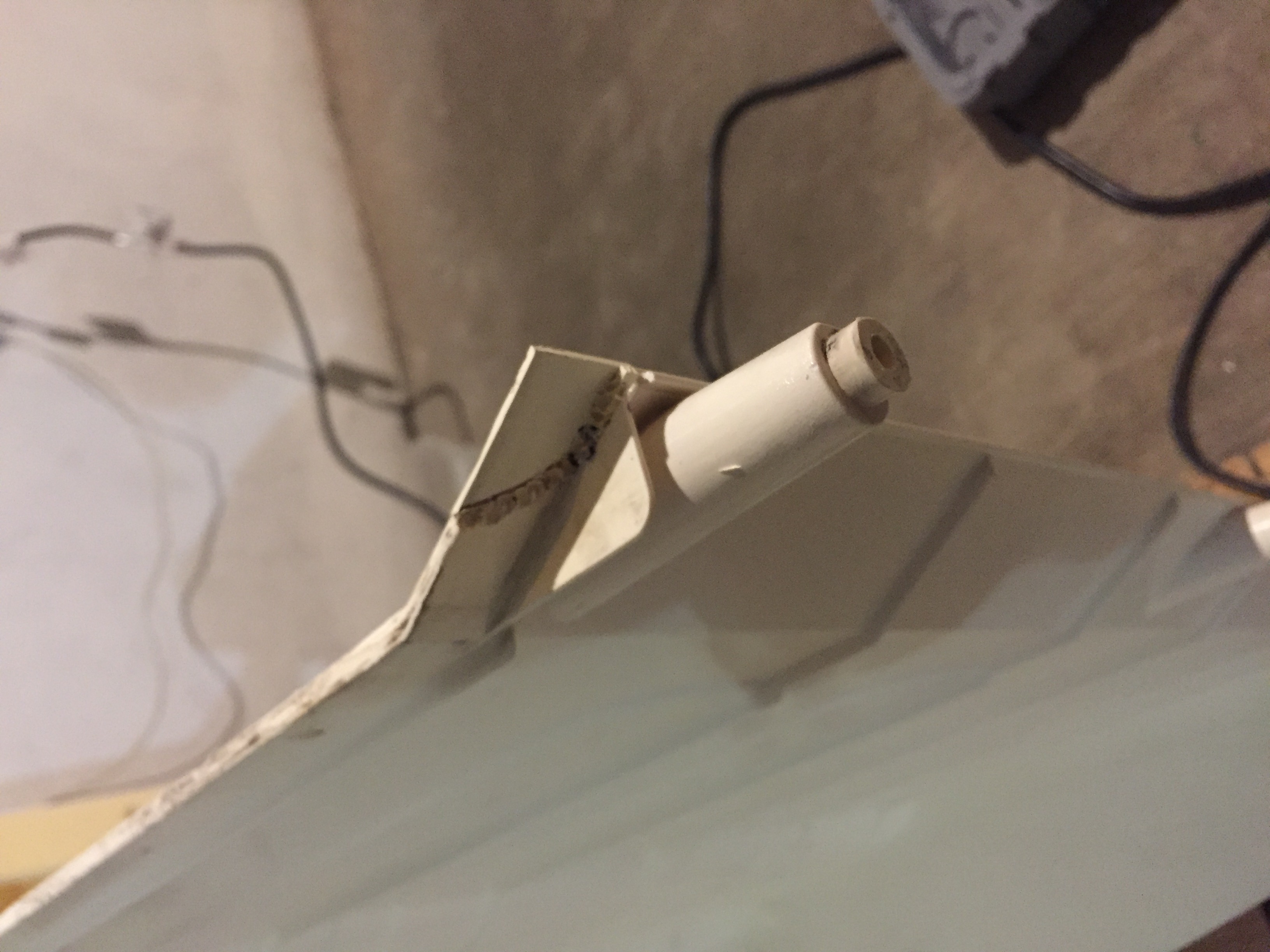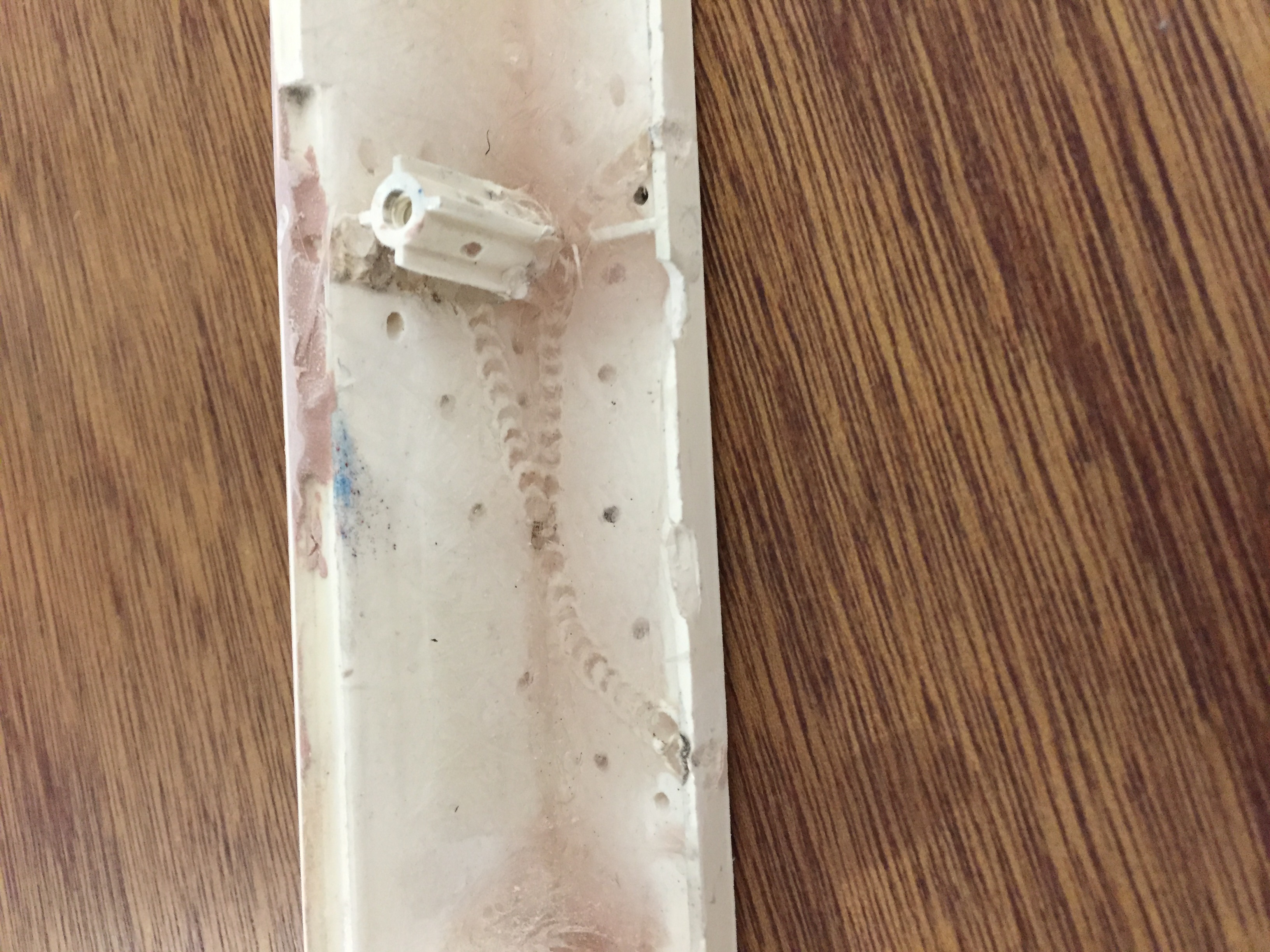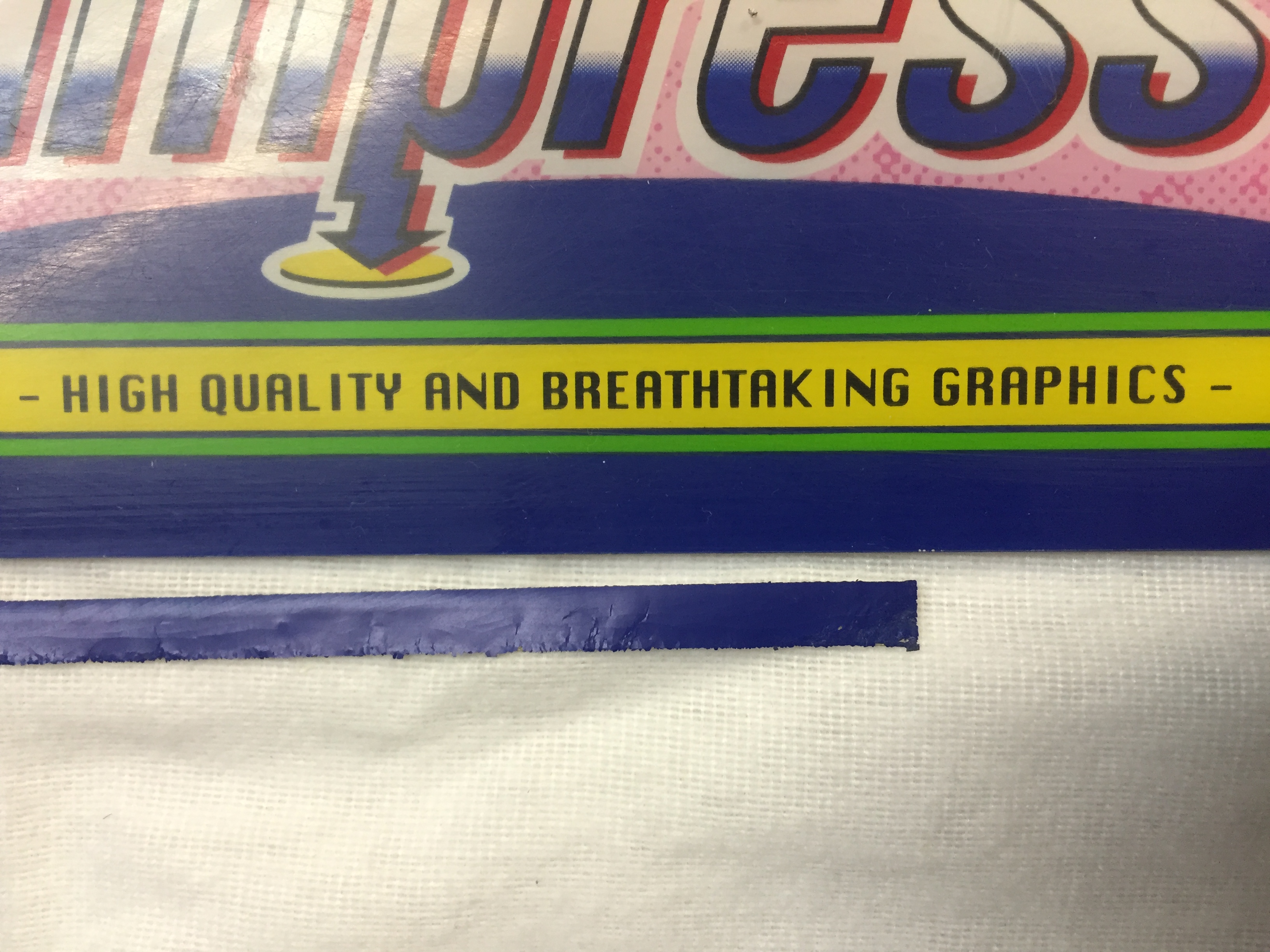 no se ve pero esa tira es de la parte superior, la quise pegar con pegamento transparente pero este hacia reacción con la pintura y se ponía blanco.