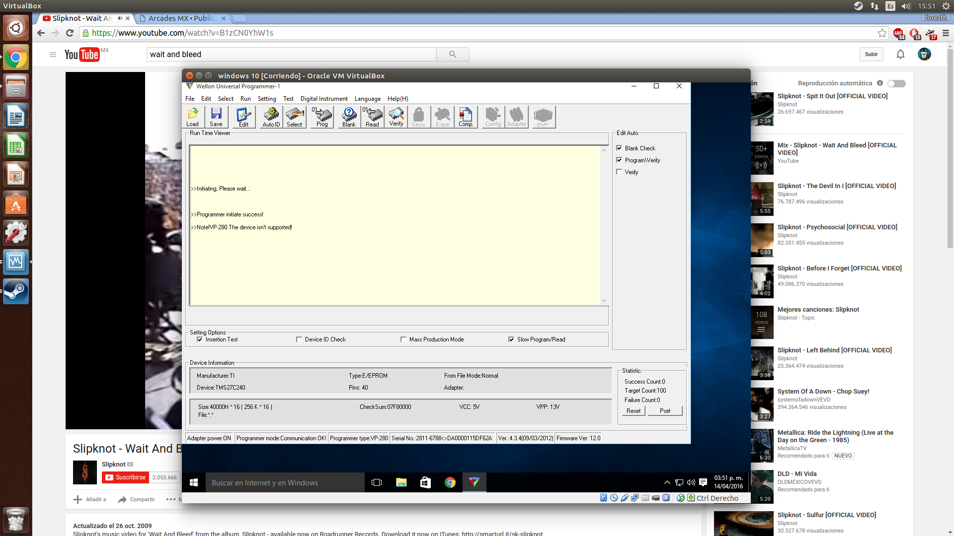 pues justamente por ver el vídeo me quise poner a dumpear unas cosas que tengo por ahí pero oh sorpresa¡, desde hace un año que no agarraba el wellon pero si llegue a hacer algunas cosas con él osea, si servia hasta donde me quedé. El problema surgió cuando el software, supuestamente el especifico para los modelos VP-790\VP-380\VP-280\VP-ISP10 (en especifico el mio es el 280), la primera prueba la hice con el auto id y si la detectó, después read y también cargo el código que trae la eprom por ultimo le di en verify y fue ahi cuando empezo el fail