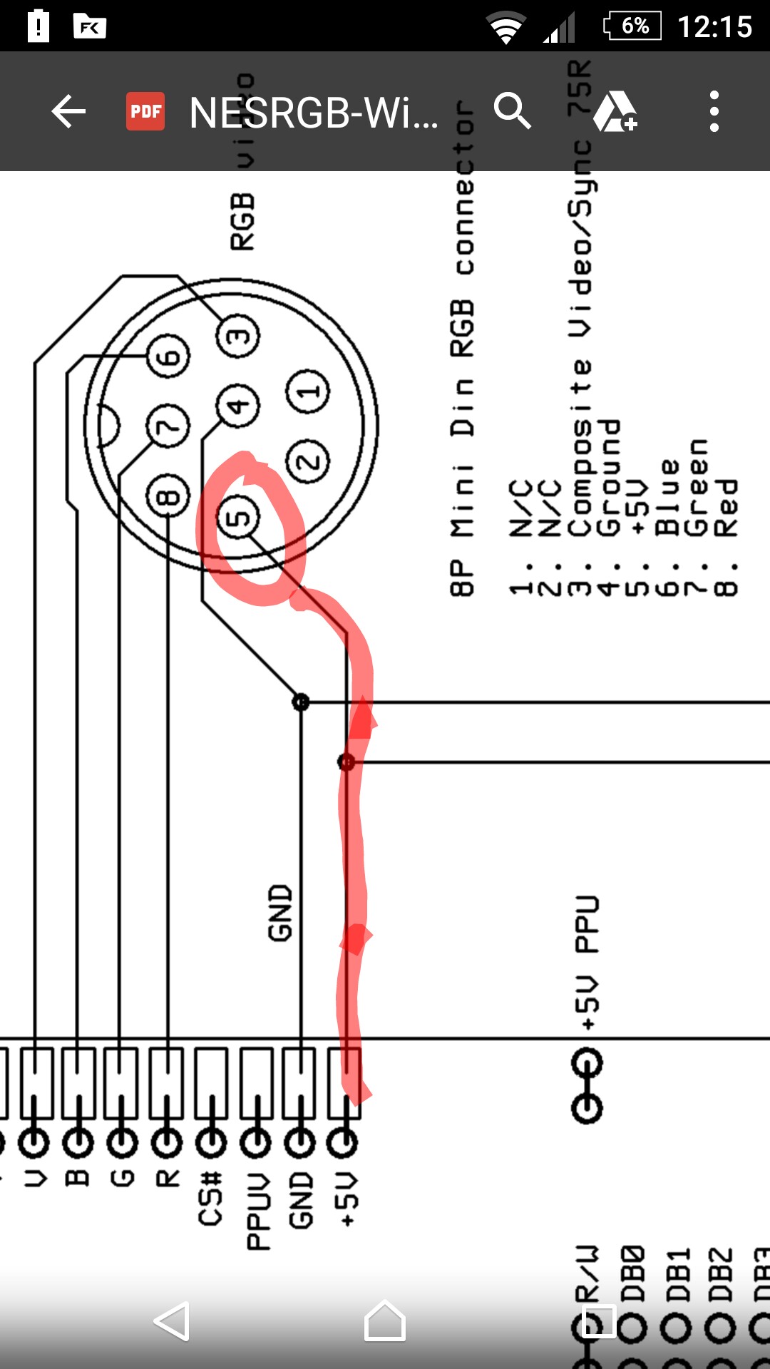 Que tal compañeros, espero puedan ayudarme con este tema, el día de ayer me llego el kit rgb para mi nes front loader, lo instale según el tutorial, el cual me pide sacar tanto las señales de video así como el voltaje +5v al conector mini din rgb de 8 pines así como se muestra en la imagen.