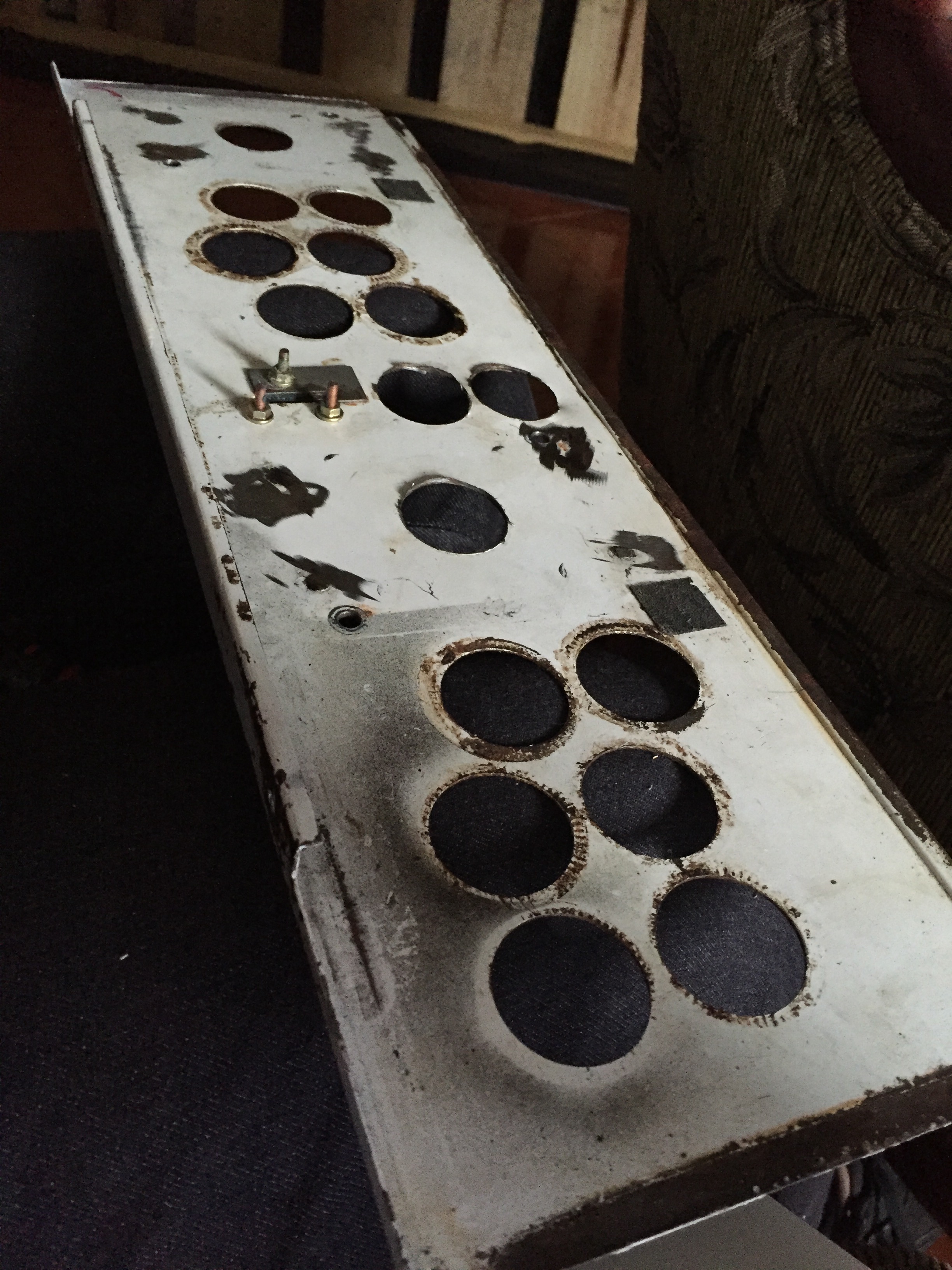 Veo que tu panel le quitaron los tornillos donde se colocan las palancas tienes de dos o consiges panel nuevo (muy dificil como ya sabes) o se lo llevas a un herrero pa que lo acondicione y ajuste tb los orificios de botones pero tu le debes explicar exactamente que quieres ye dejo foto de un panel ya con todo
