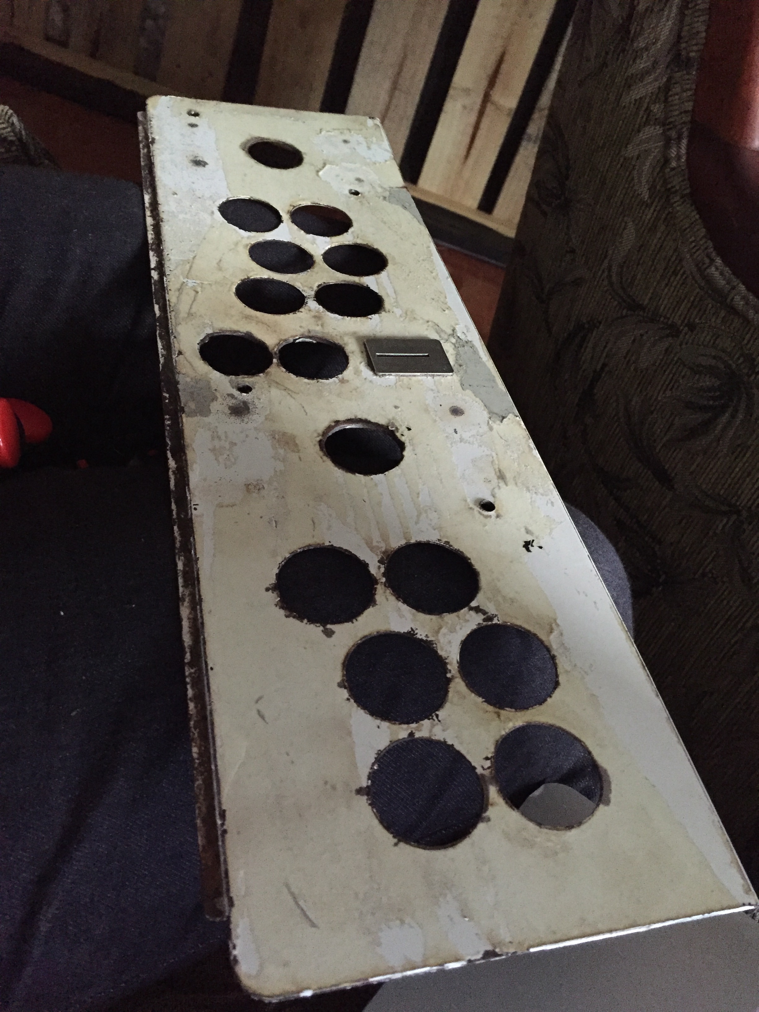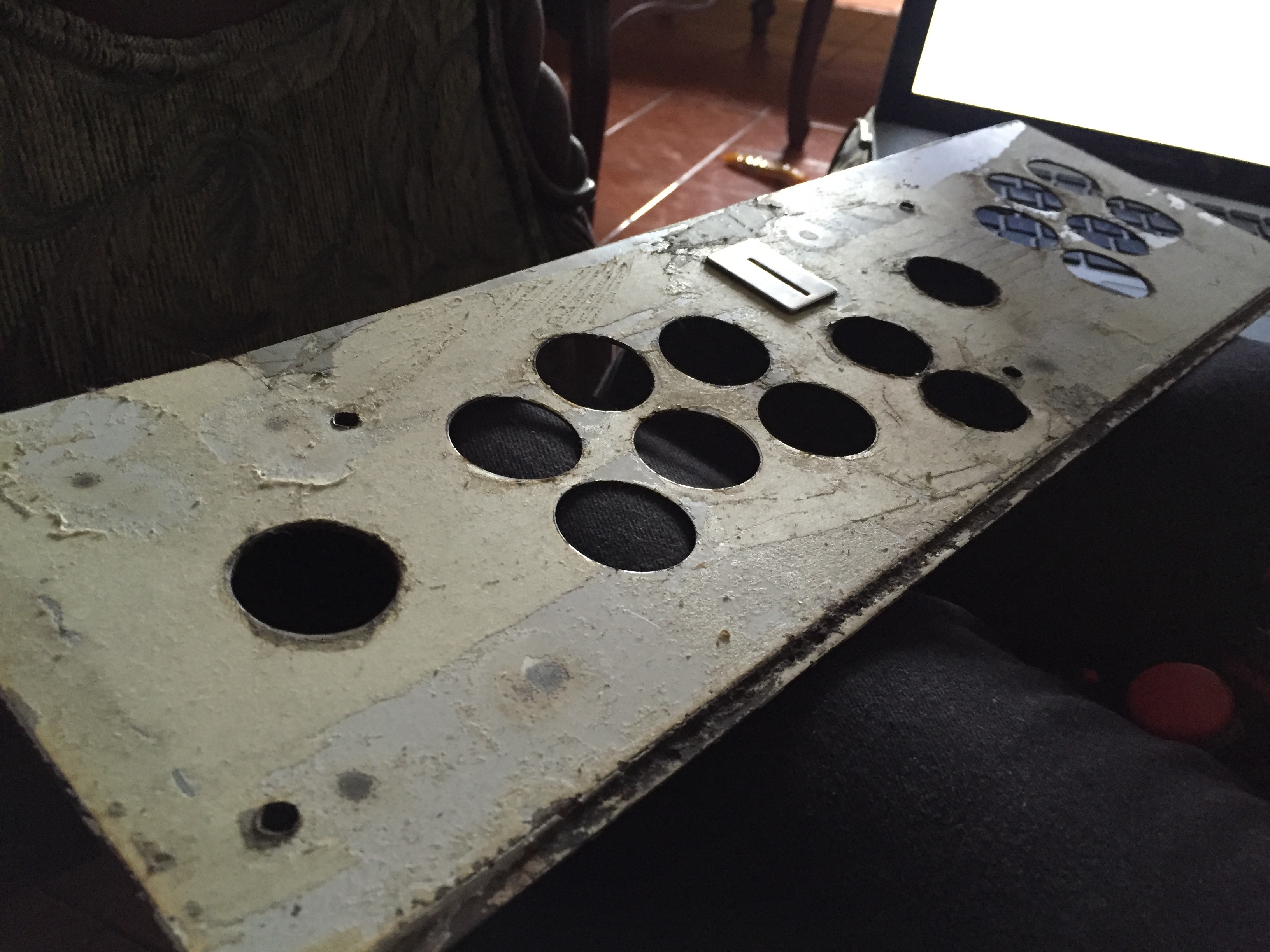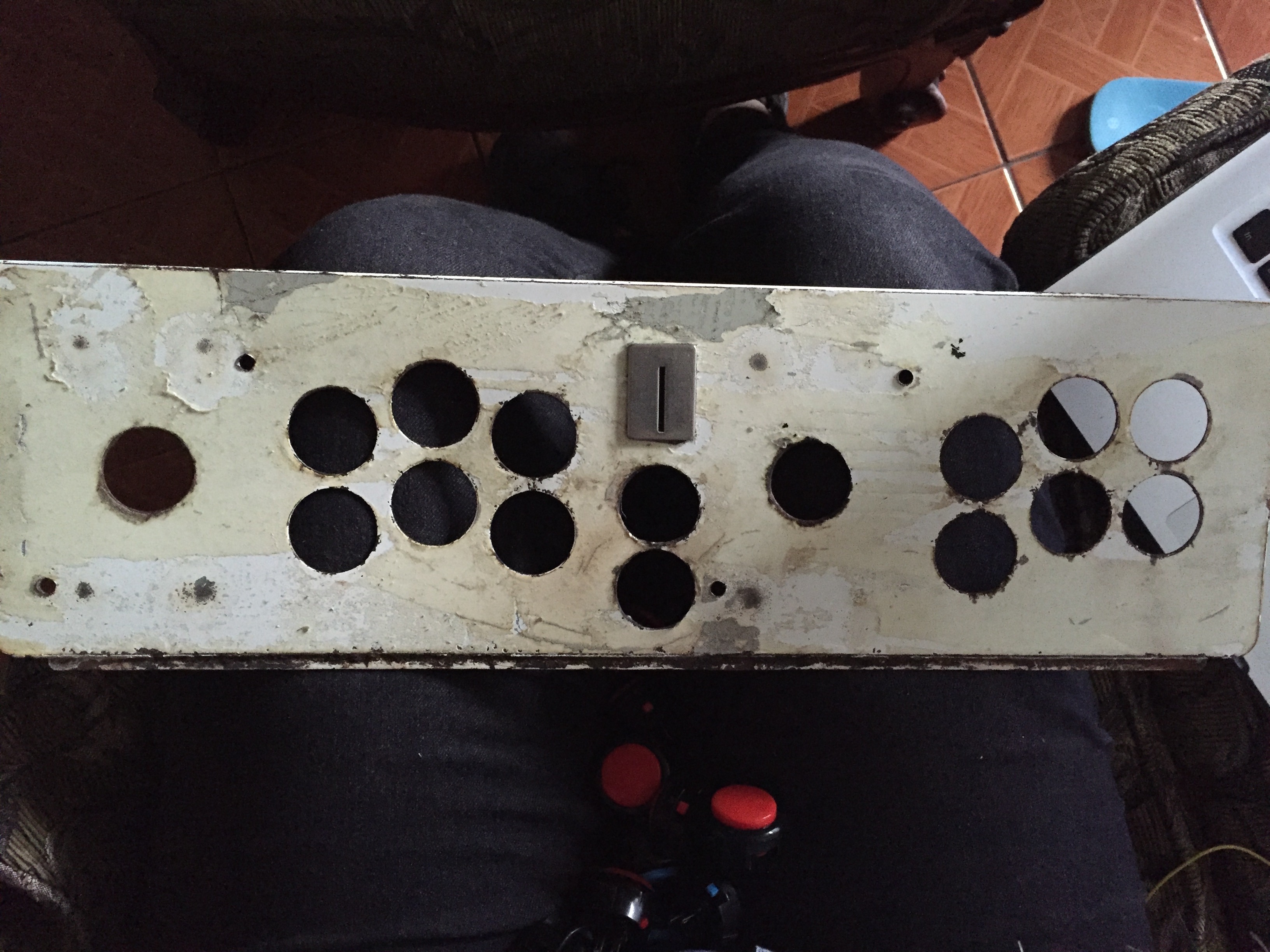 Como pueden ver, le hicieron más grandes los hoyos de los botones de Start 1 y Start 2 para que fueran del tamaño de los botones de 30mm y estoy segura de que le modificaron algo en los hoyos de los joysticks para que quedaran.
