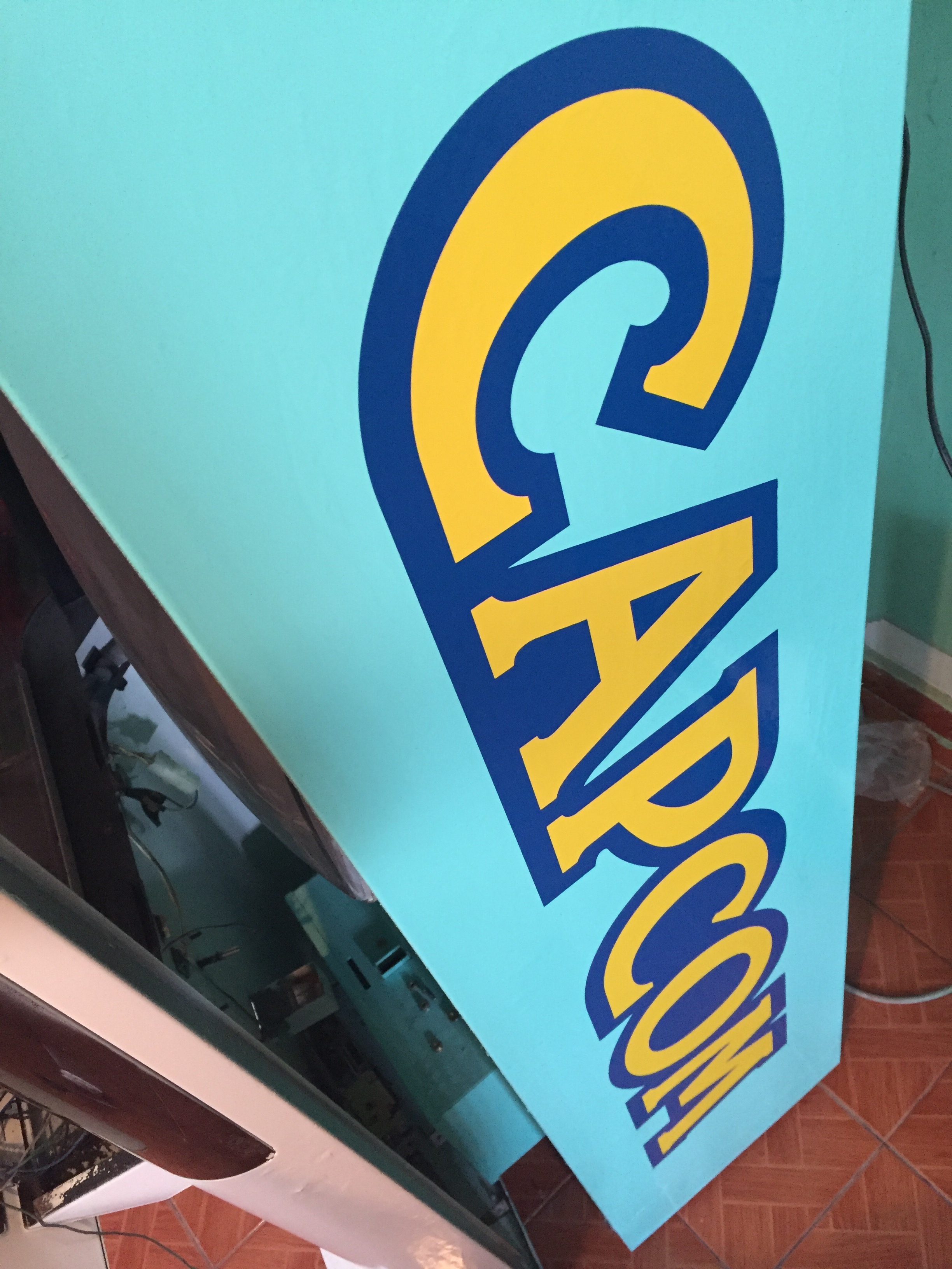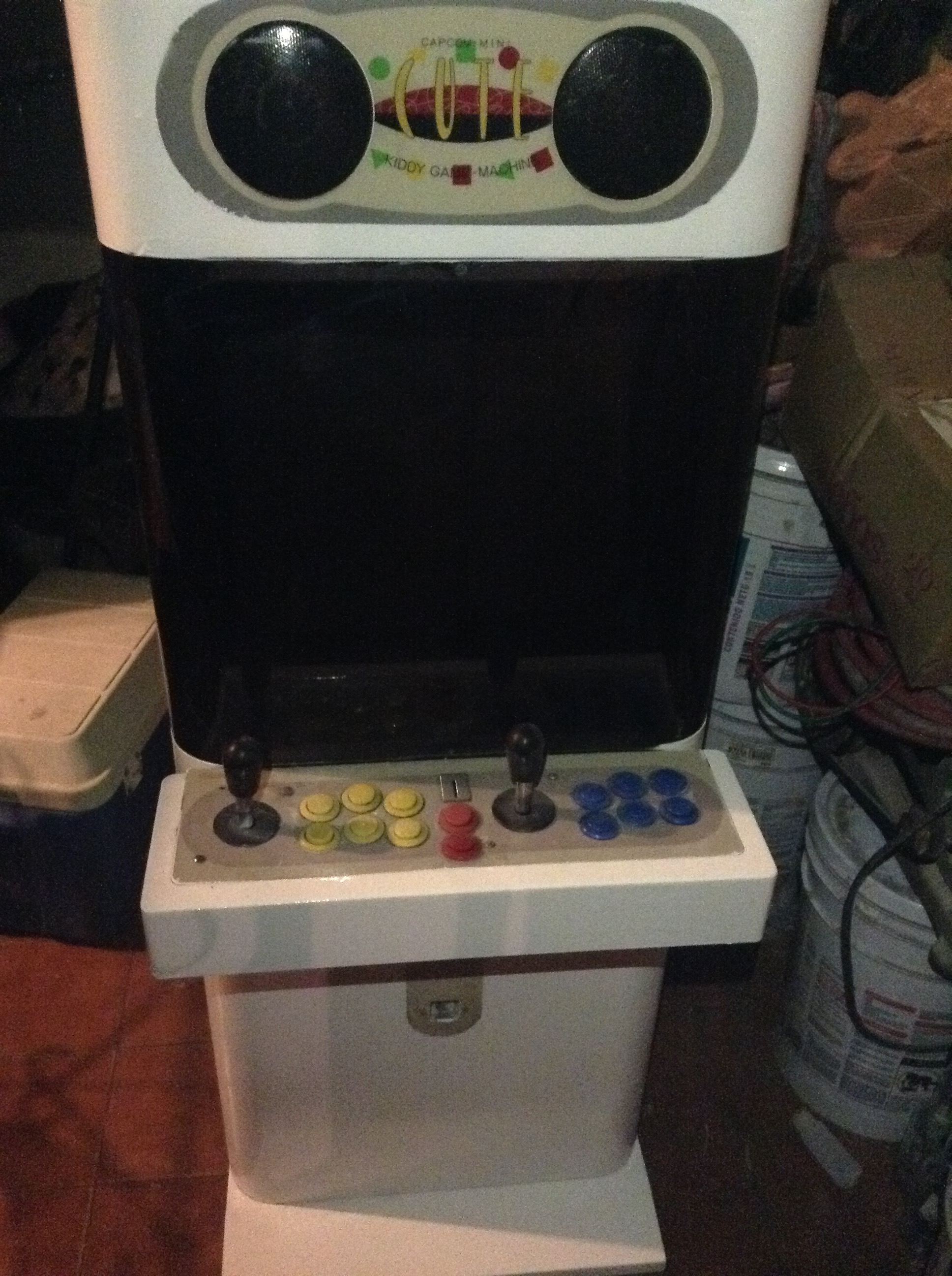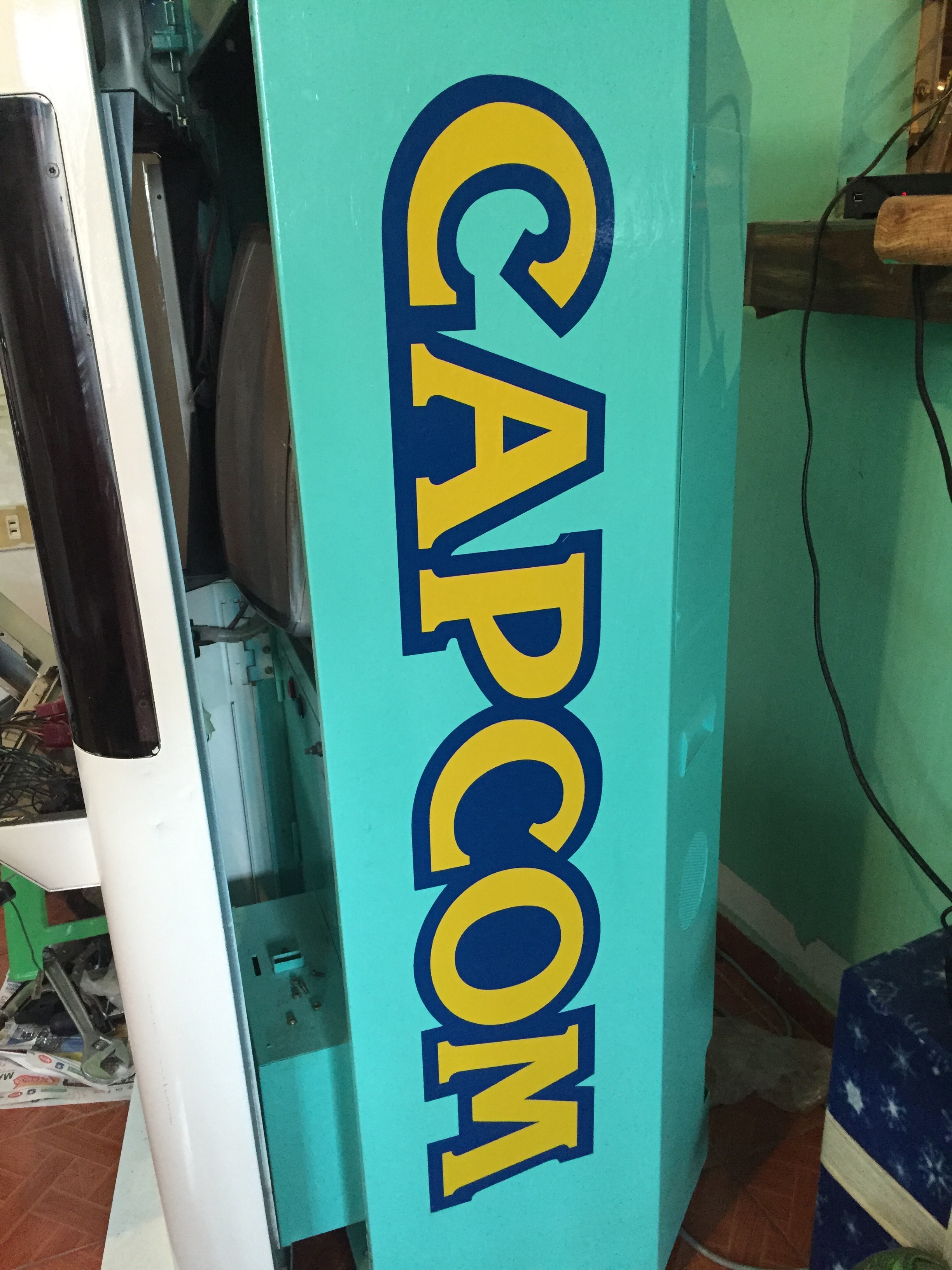 Hace ya un año que le compré una Capcom Mini Cute a Josué de aquí del foro. Venía en buen estado, solo con varios detalles estéticos que he ido restaurando de poco en poco. Un hoyo enorme en la parte de arriba que tenía un botón, chapas viejas y oxidadas, pintada de negro y con un panel modificado y muy dañado.