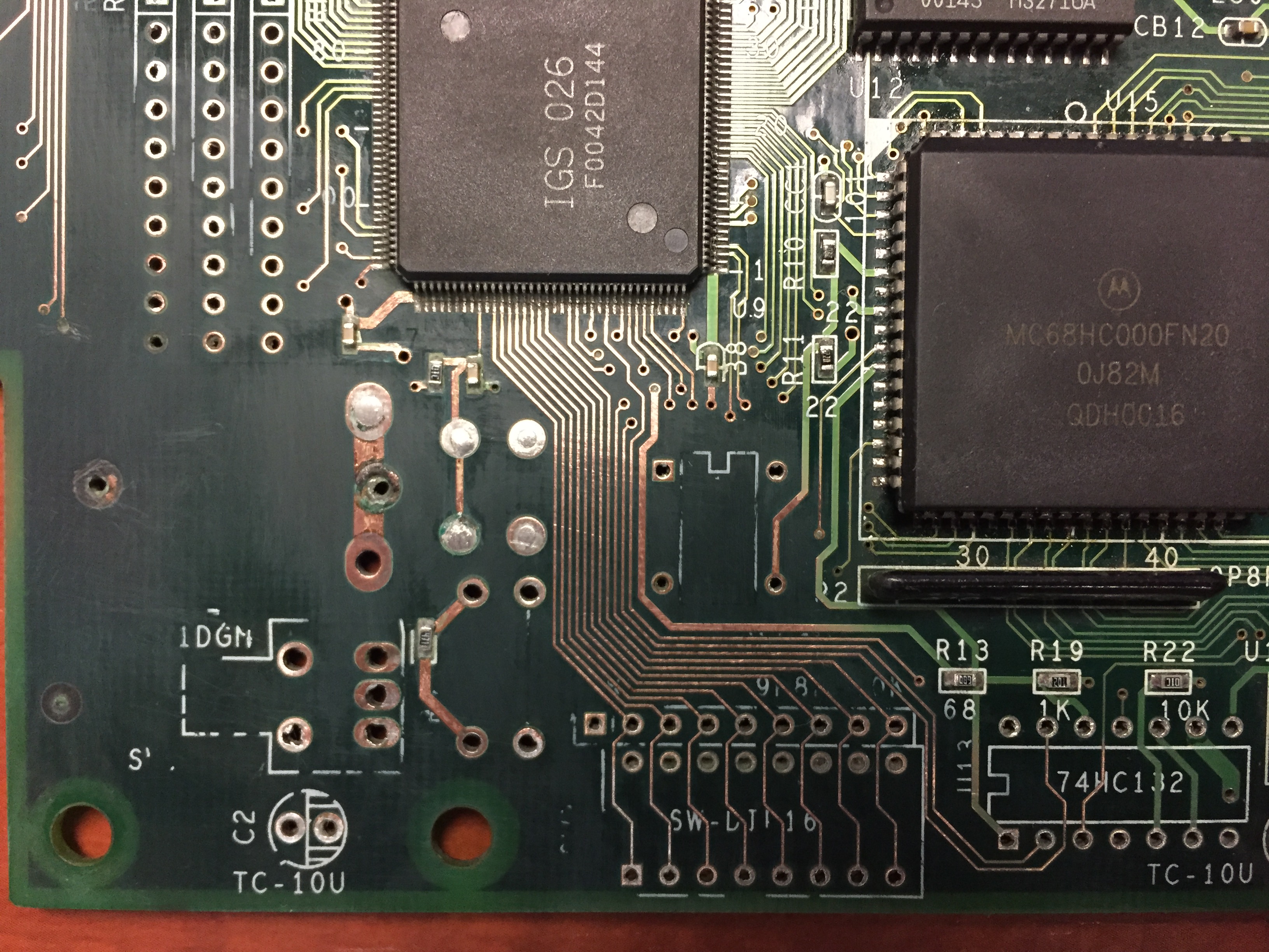 No encontré daño en la zona cercana a la batería, ni en las pistas que van del chip IGS 026 a los demás componentes, así que estoy pensando en desoldar dicho chip para ver debajo si hay alguna pista dañada.