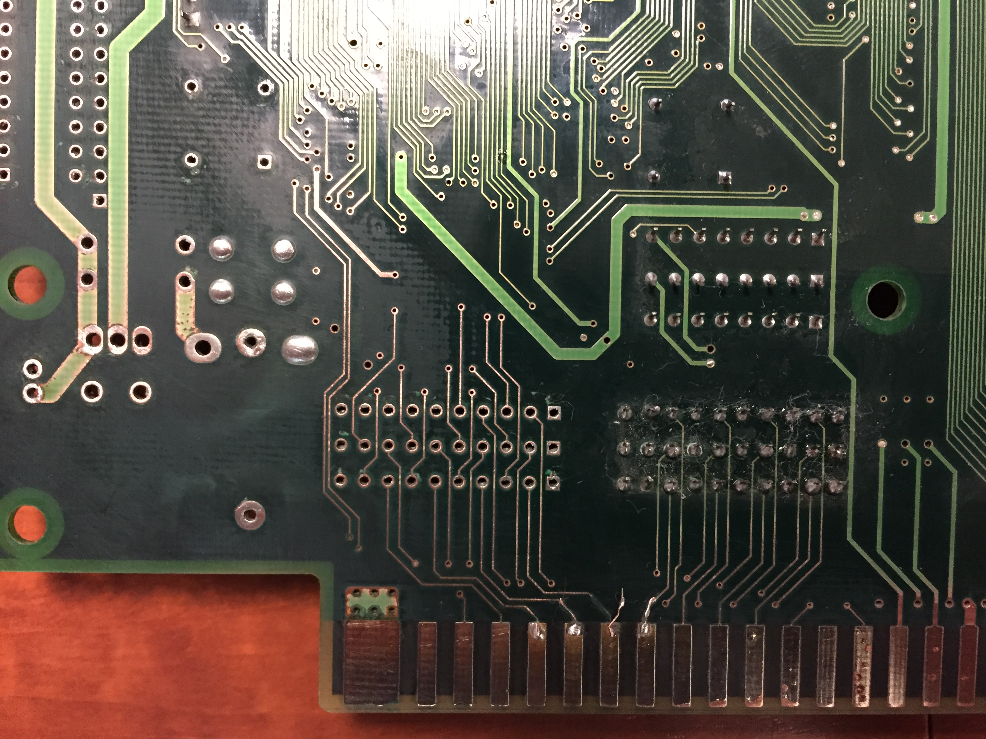 Quise utilizar una técnica que realizo Lukemorse para reparar pistas aplicando estaño con el cautín sobre la pcb, pero no tuve éxito así que mejor lo deje de intentar y solo me enfoqué en determinar si había pistas dañadas. Solo arregle las pistas que se les podía soldar un tramo de alambre de cobre.